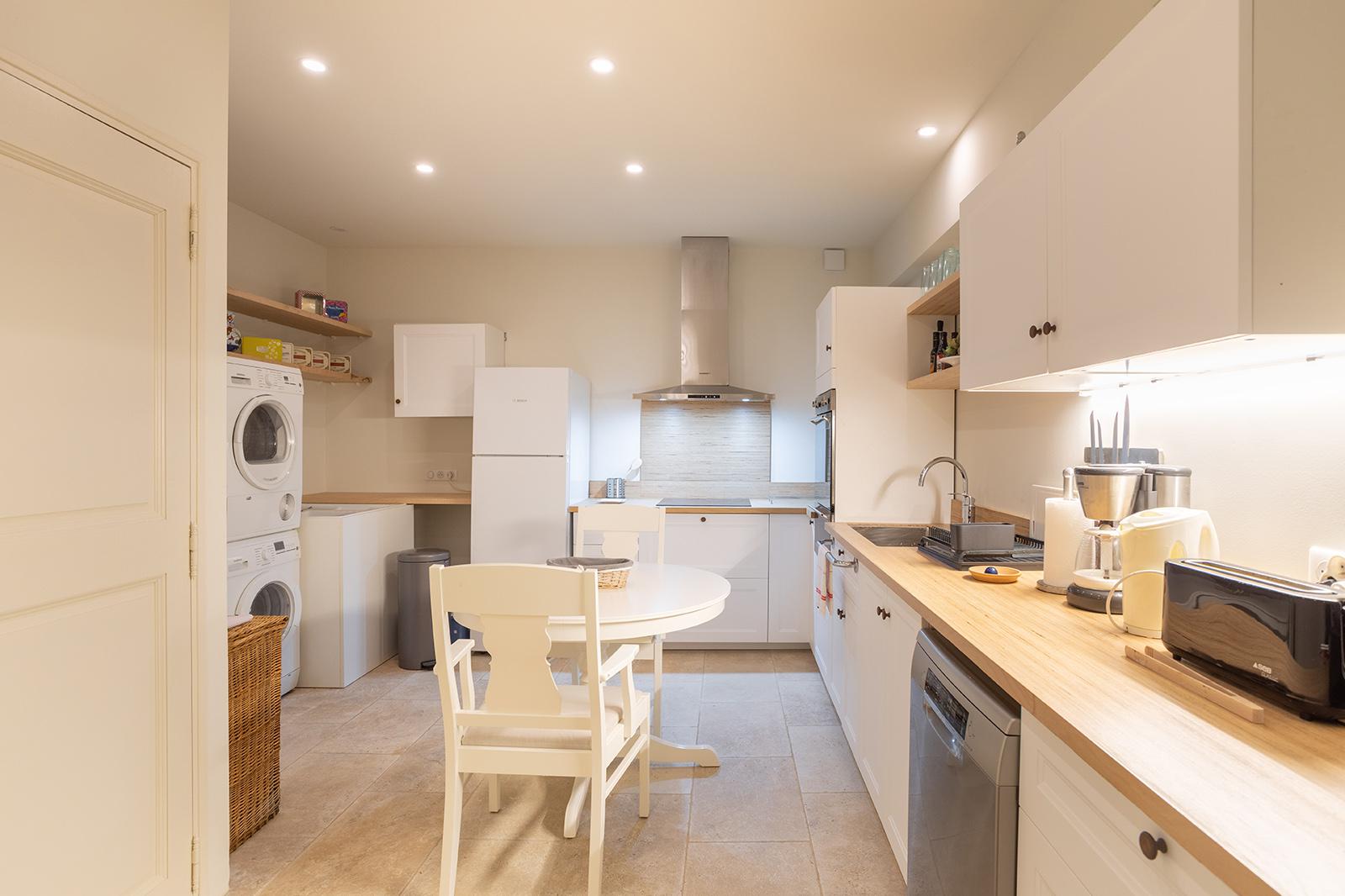 Kitchen with dishwasher, dryer, washing machine, toaster, induction hob, freezer, fridge