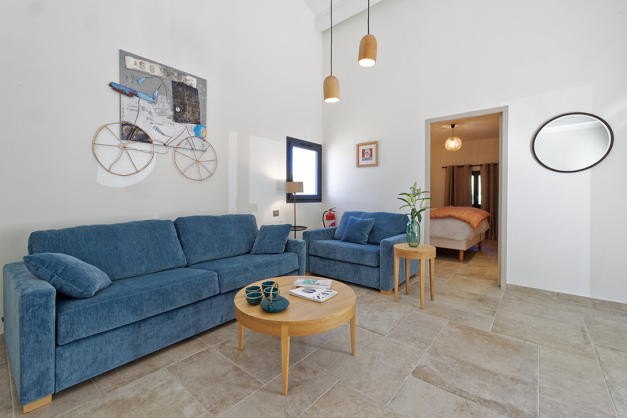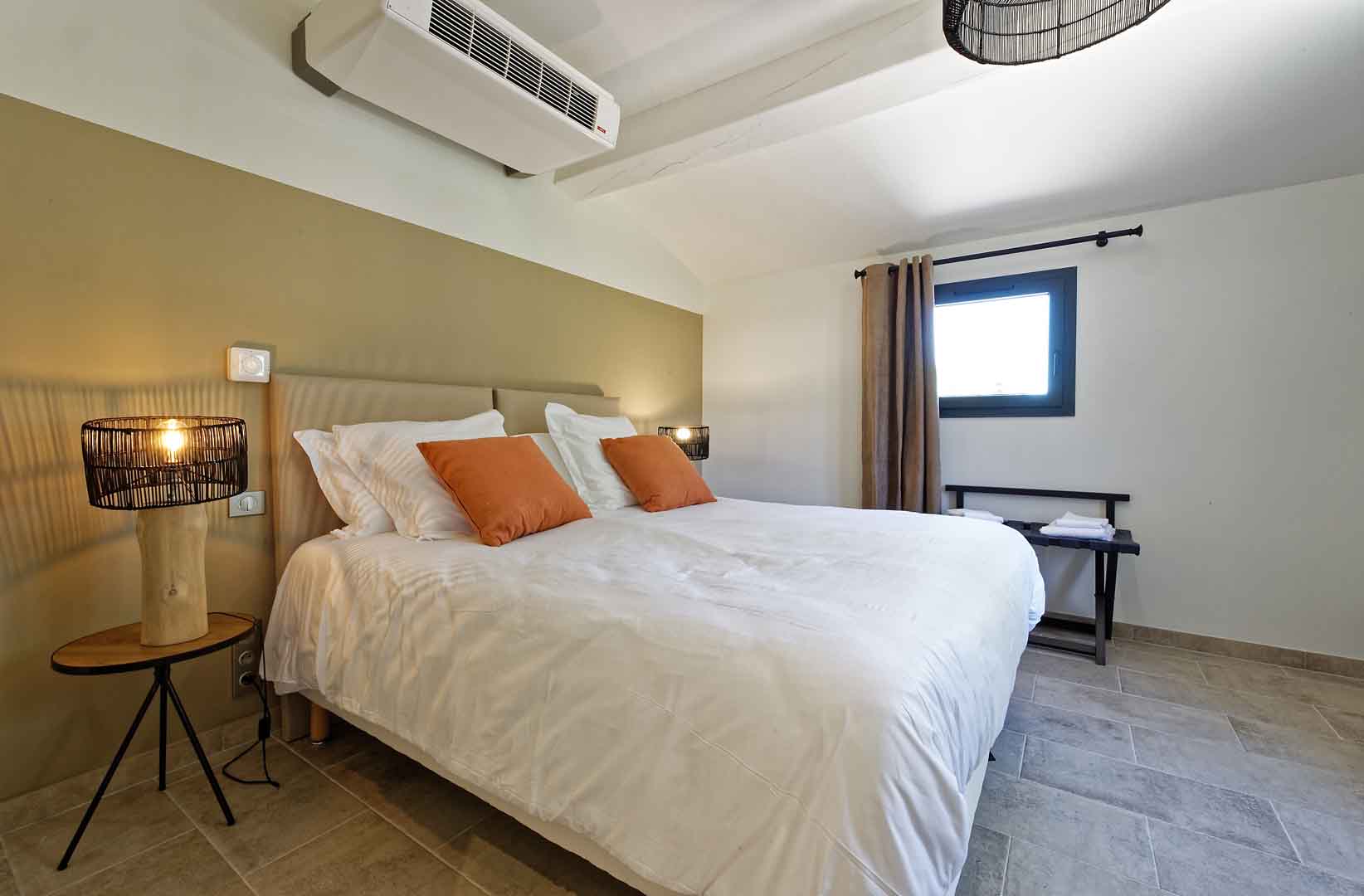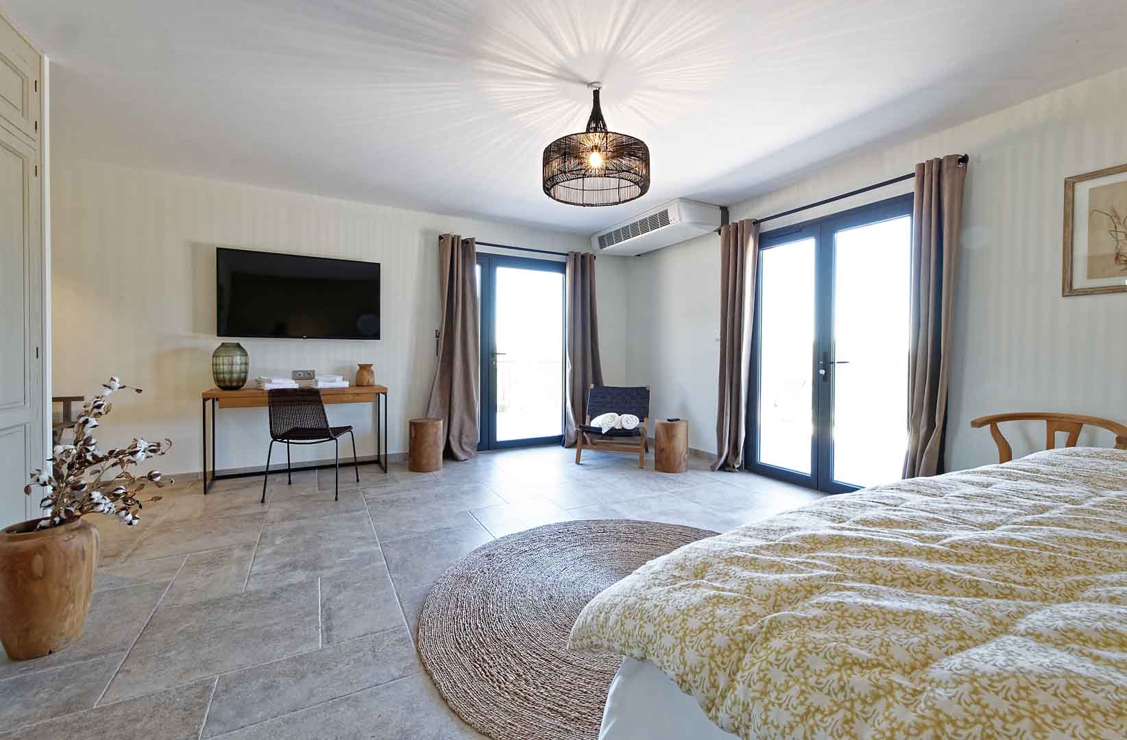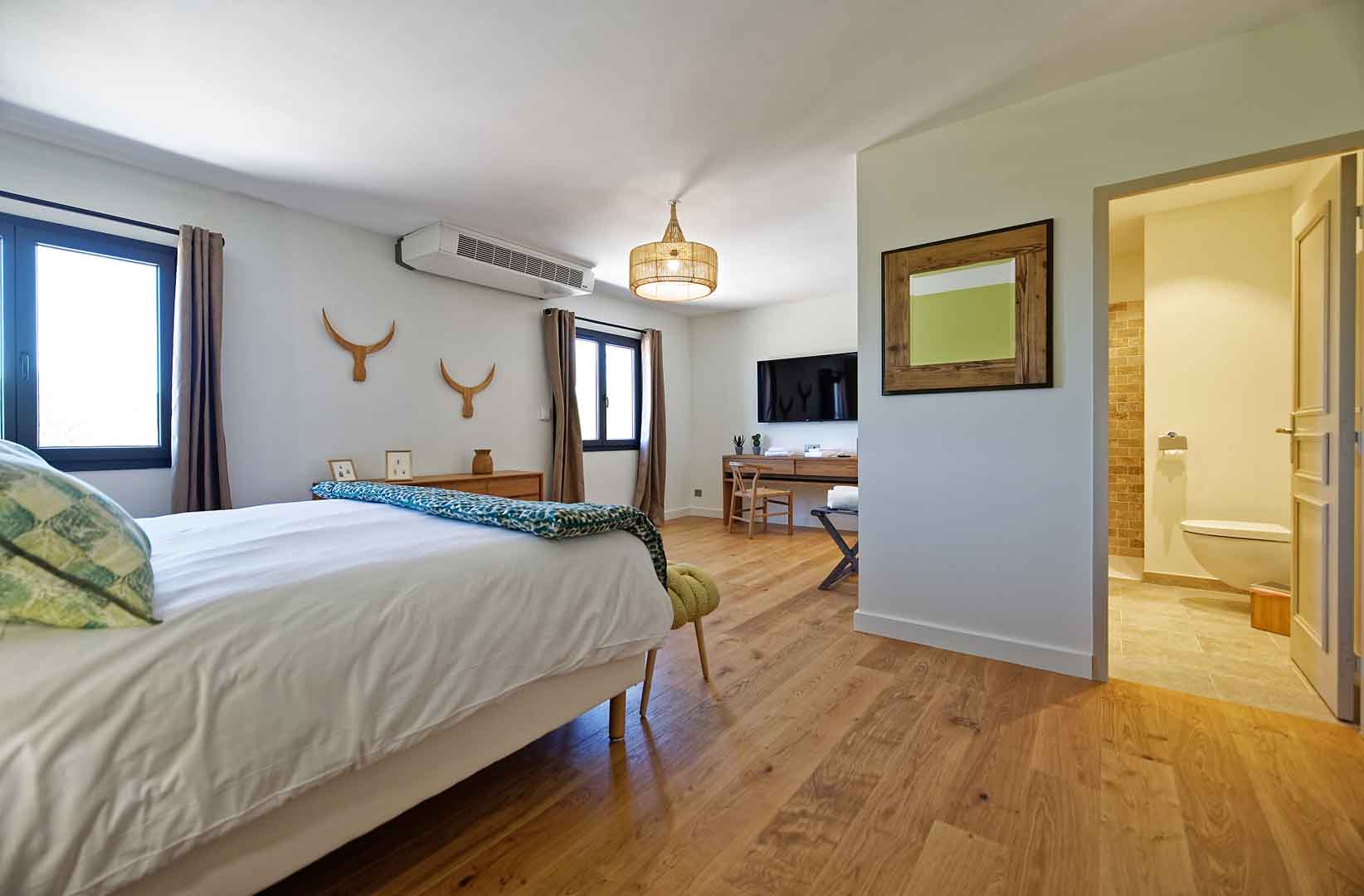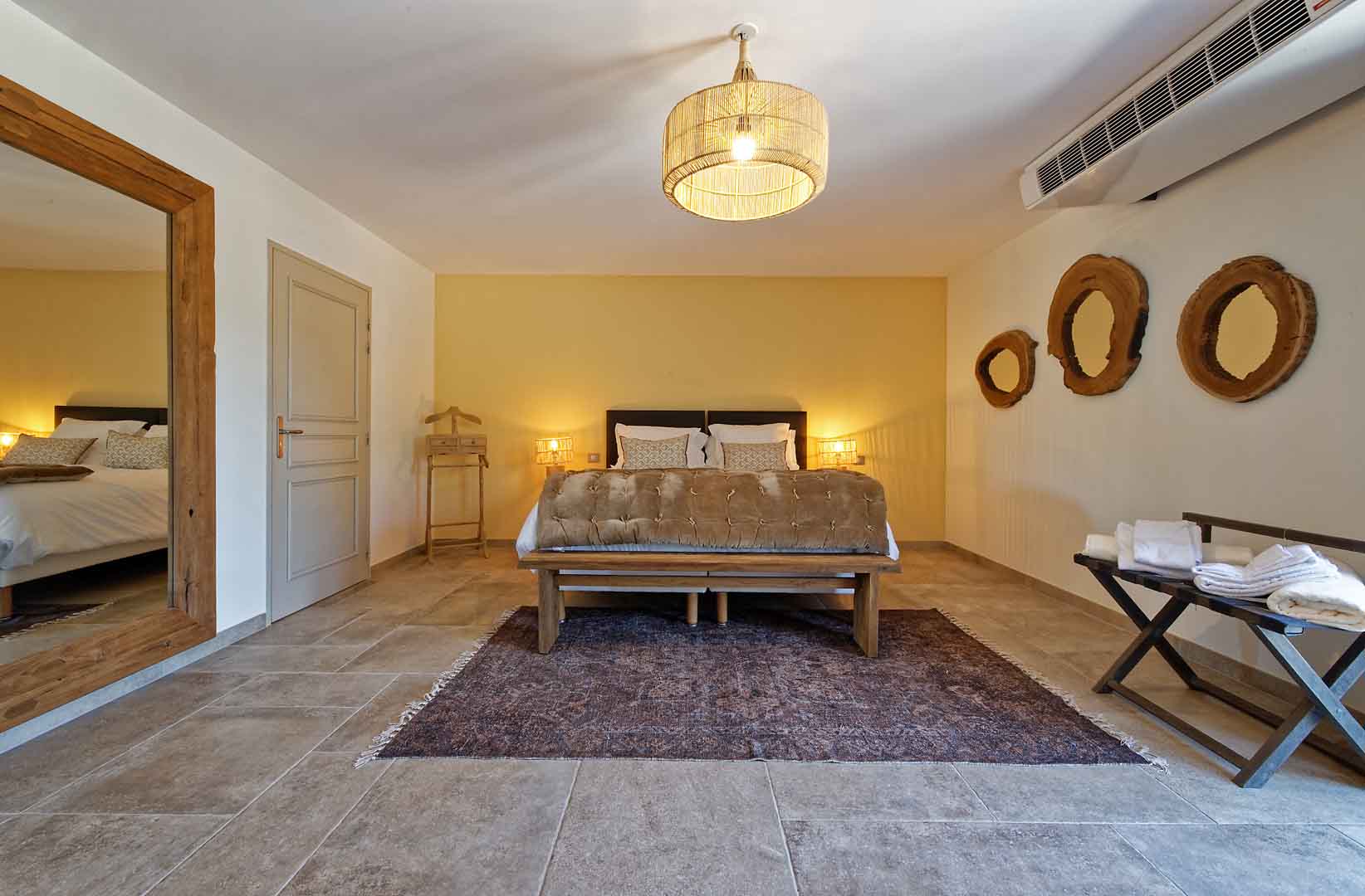 The inside of the three properties are brand new, entirely air-conditioned, and offer 11 large double bedroom in total, each with bathroom, and three nice living rooms with opened kitchens. Tailored woodwork, Provençal materials, Design furniture and hotel conveniences are there in all rooms, with all their own style.