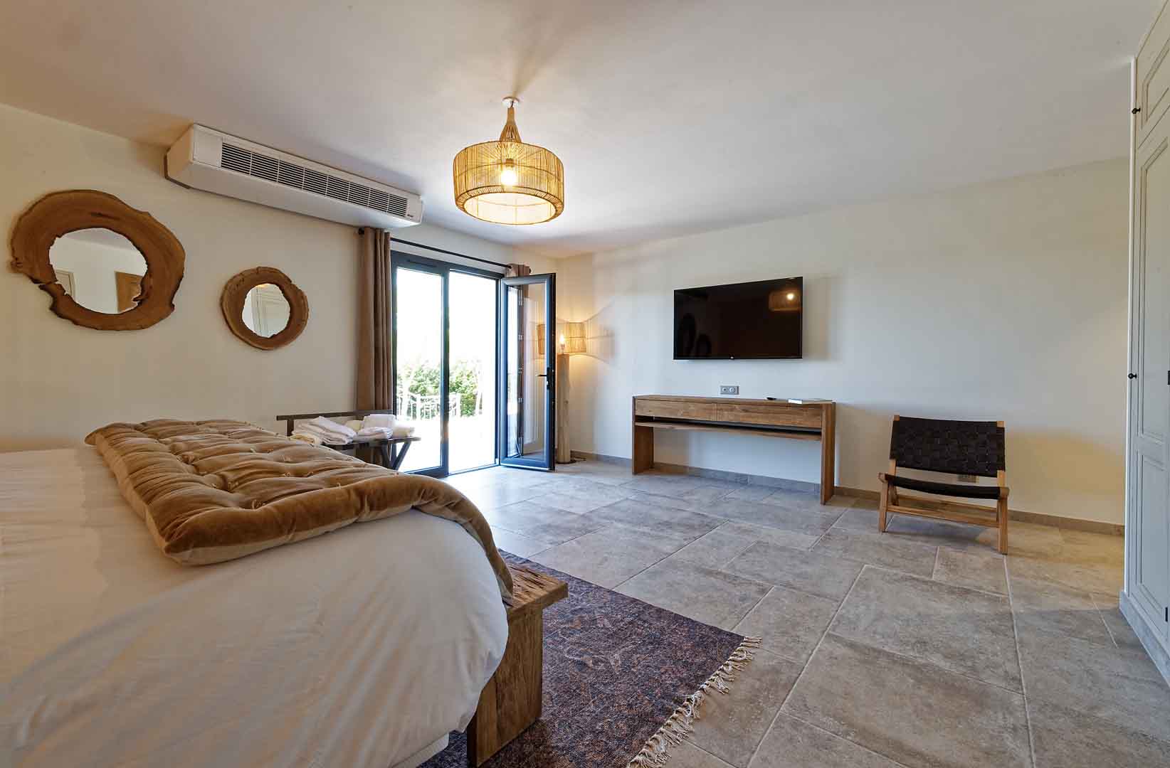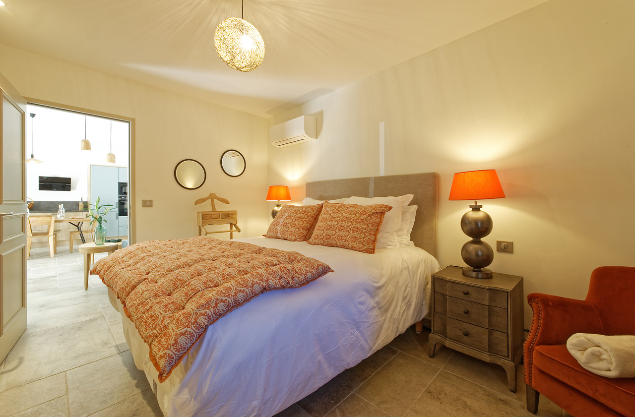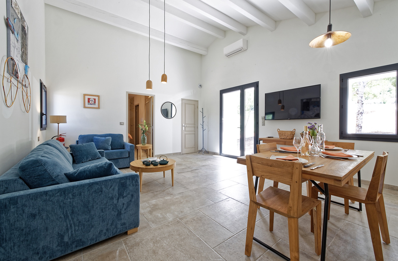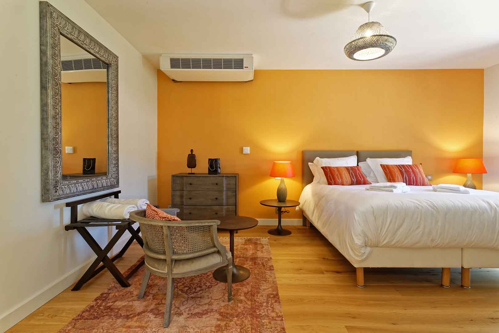 The inside of the three properties are brand new, entirely air-conditioned, and offer 11 large double bedroom in total, each with bathroom, and three nice living rooms with opened kitchens. Tailored woodwork, Provençal materials, Design furniture and hotel conveniences are there in all rooms, with all their own style.