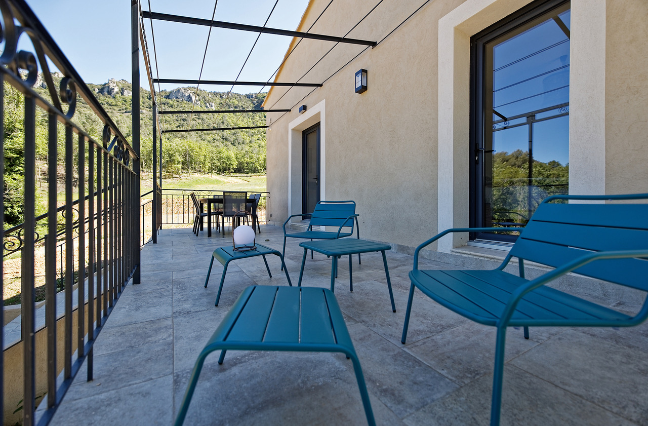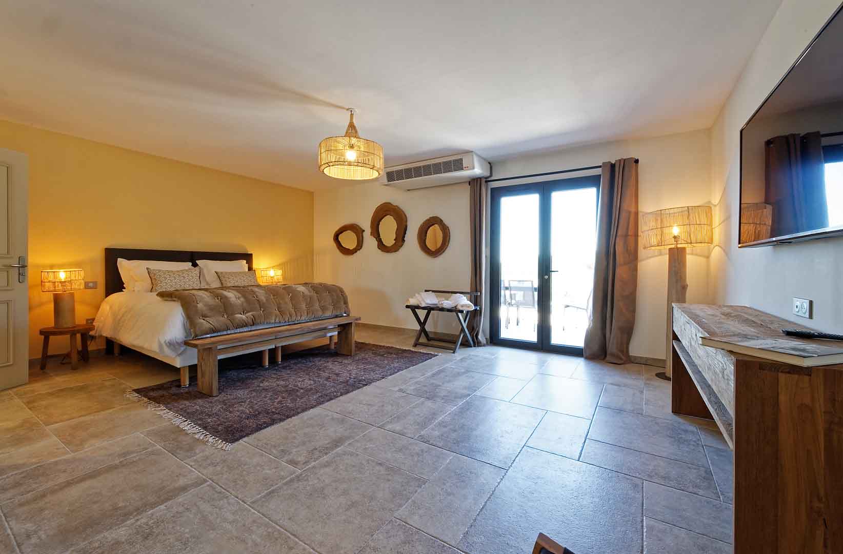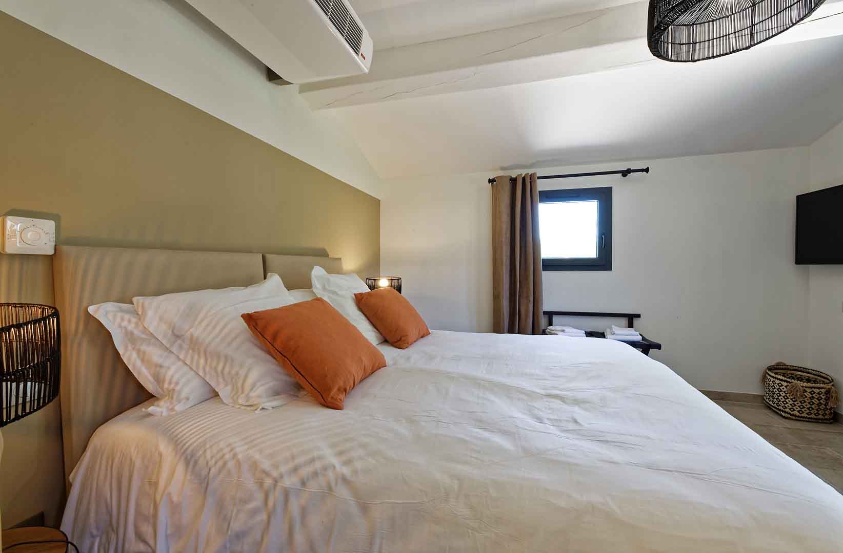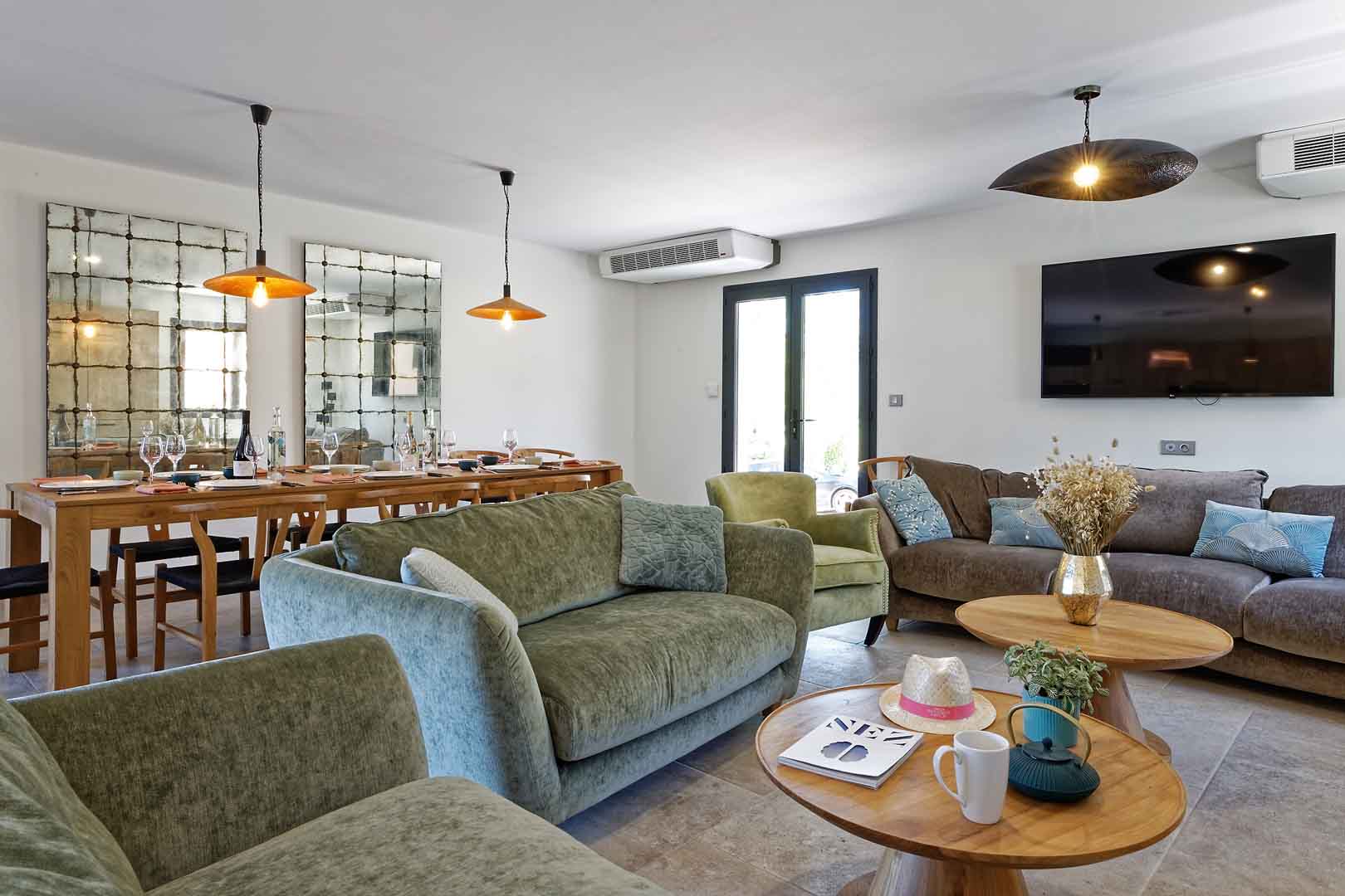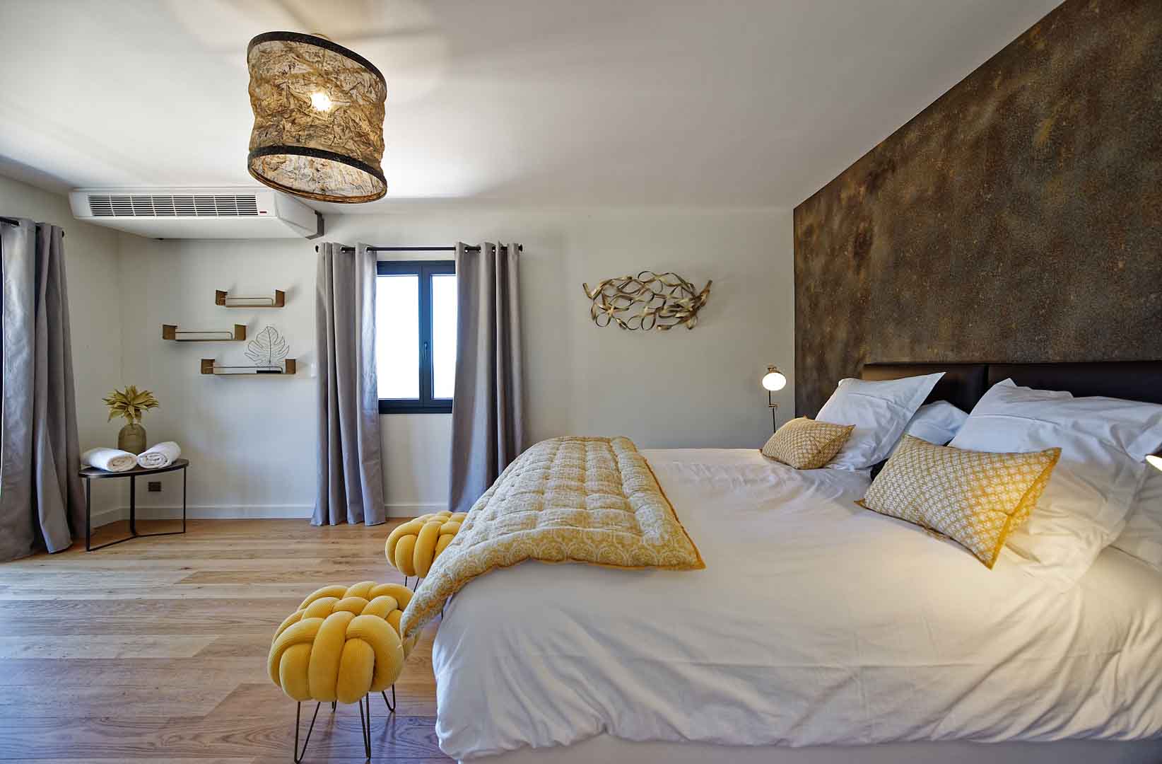 The inside of the three properties are brand new, entirely air-conditioned, and offer 11 large double bedroom in total, each with bathroom, and three nice living rooms with opened kitchens. Tailored woodwork, Provençal materials, Design furniture and hotel conveniences are there in all rooms, with all their own style.