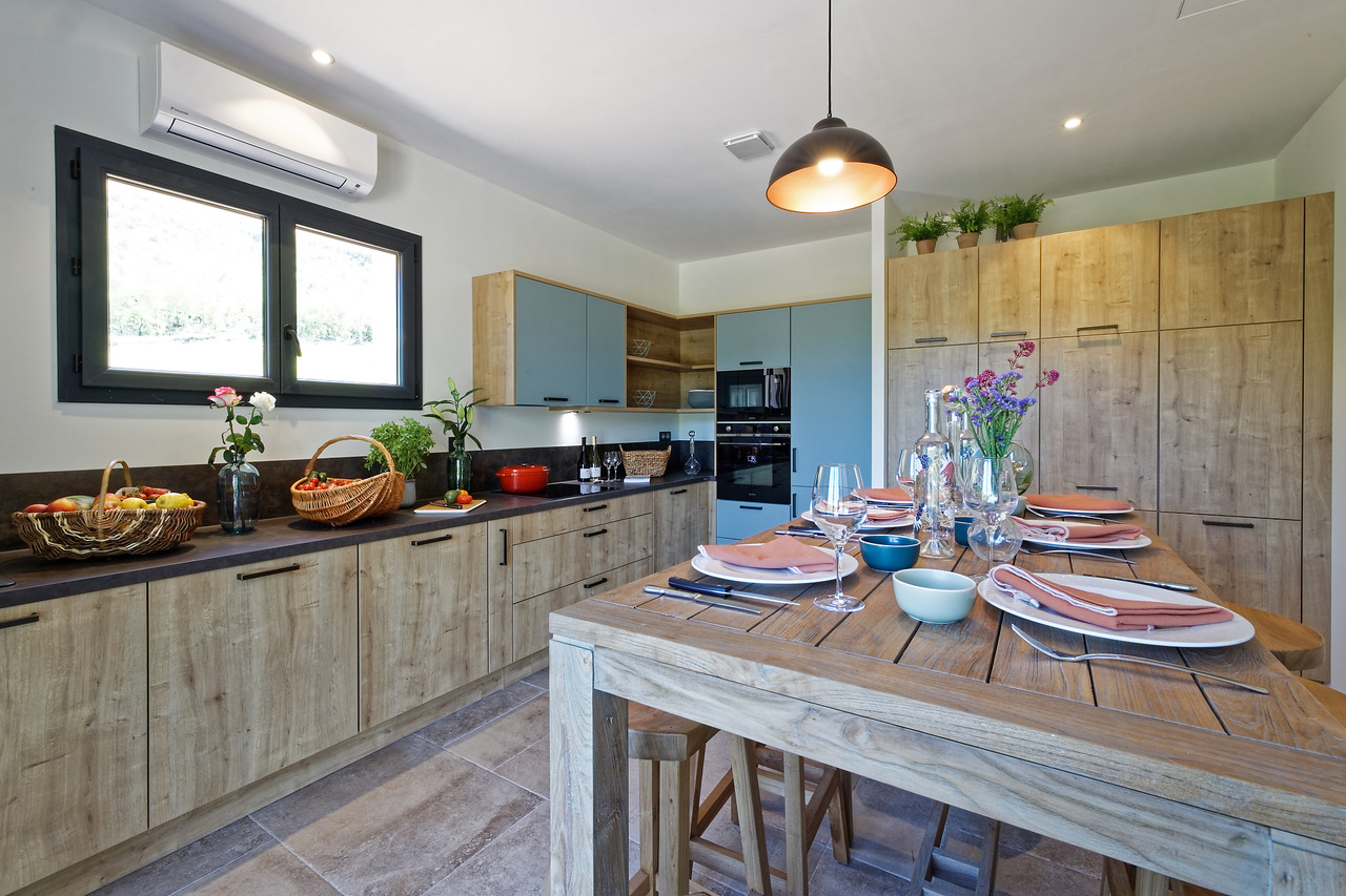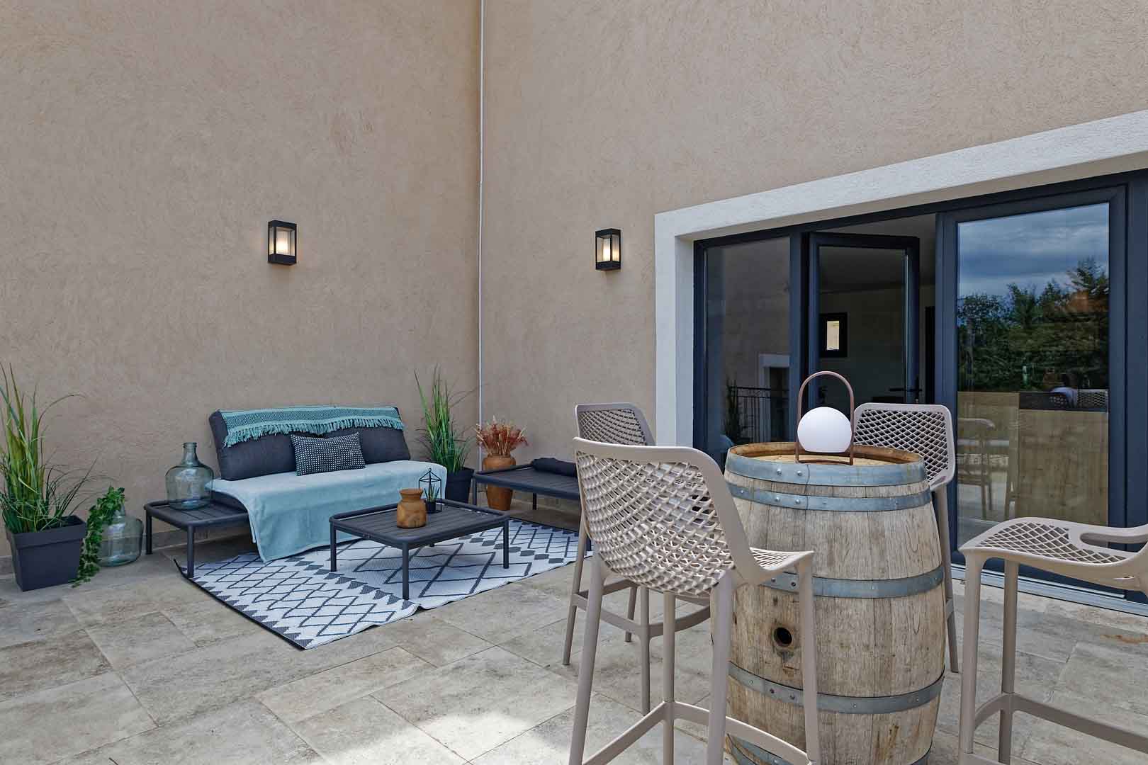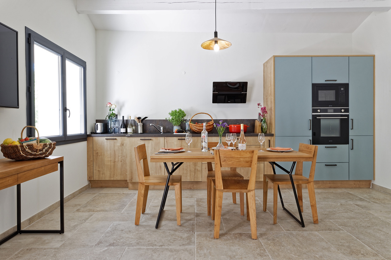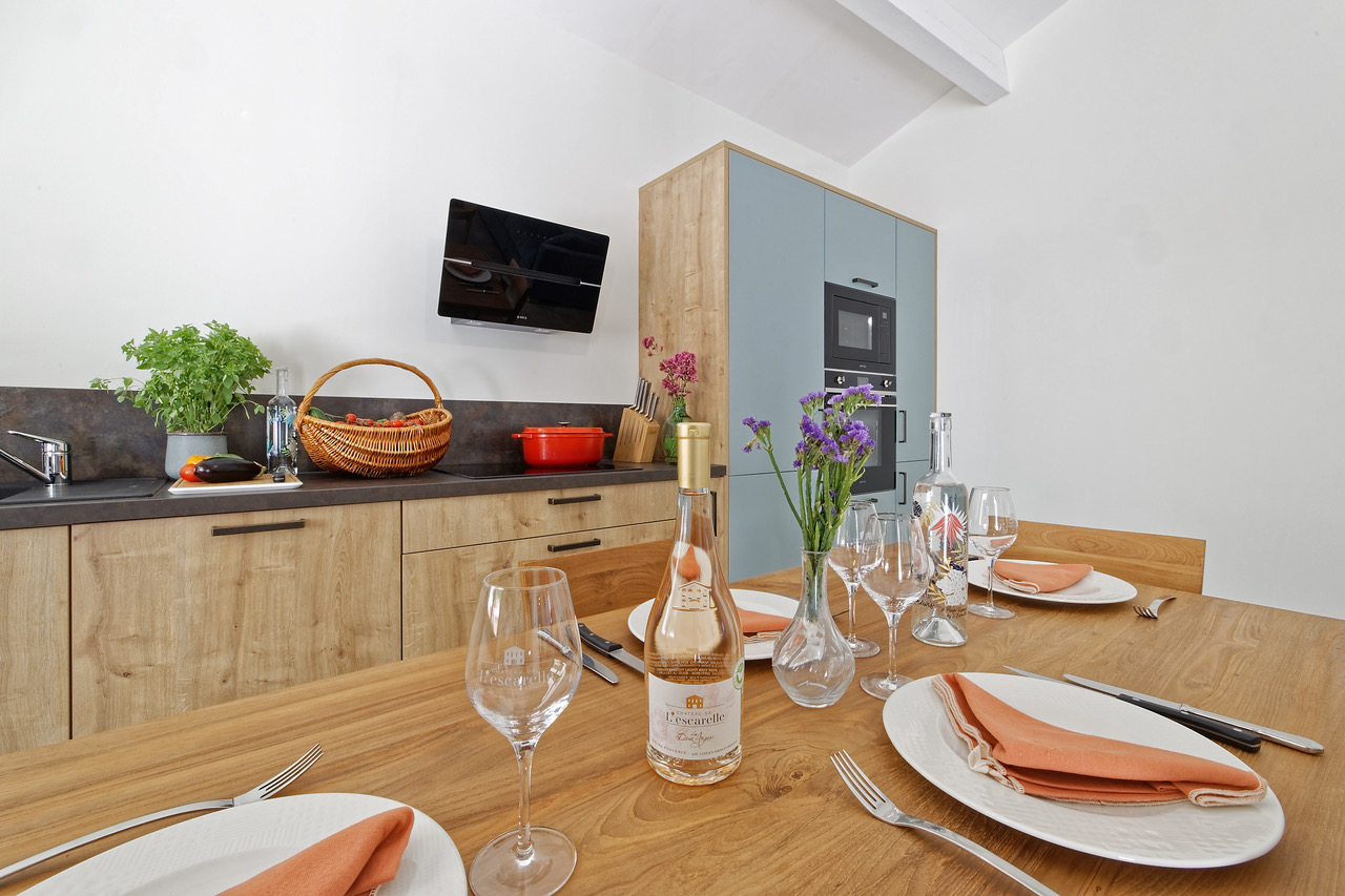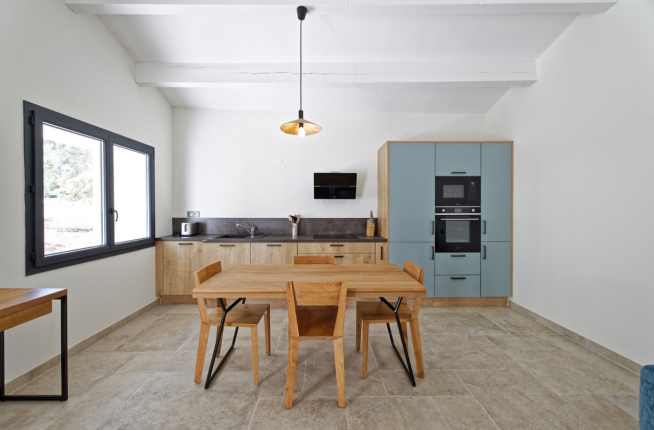 The inside of the three properties are brand new, entirely air-conditioned, and offer 11 large double bedroom in total, each with bathroom, and three nice living rooms with opened kitchens. Tailored woodwork, Provençal materials, Design furniture and hotel conveniences are there in all rooms, with all their own style.
