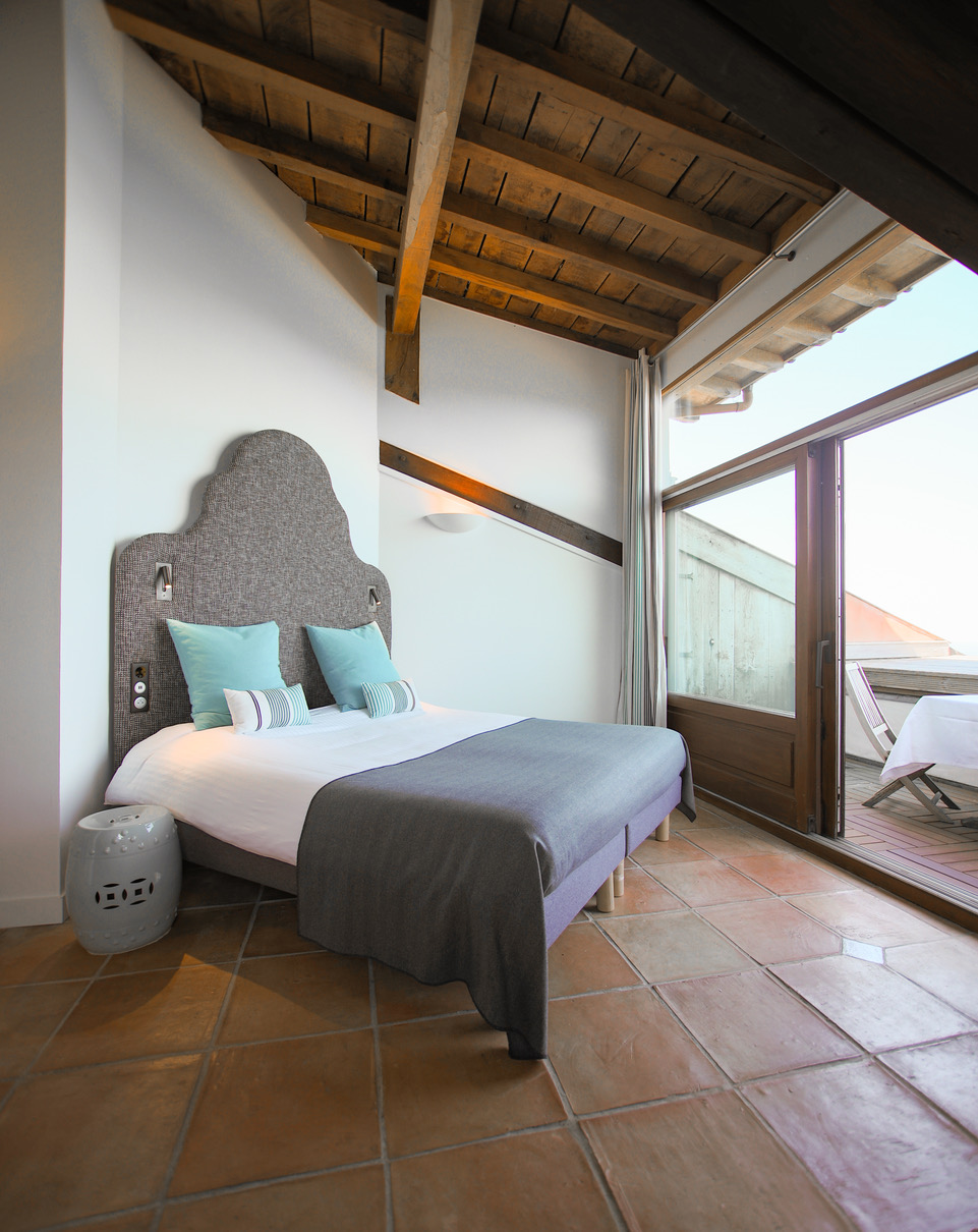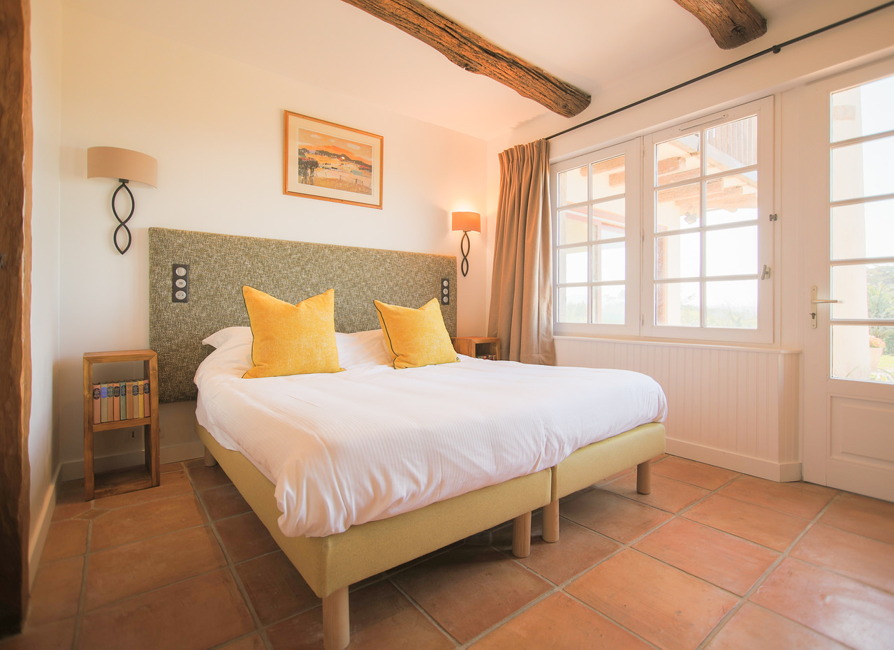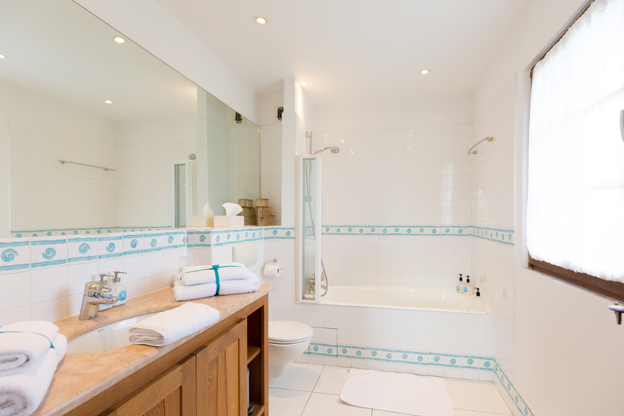 Twin bedroom with terrace access, single bed 90cm large and Ensuite bathroom with bath