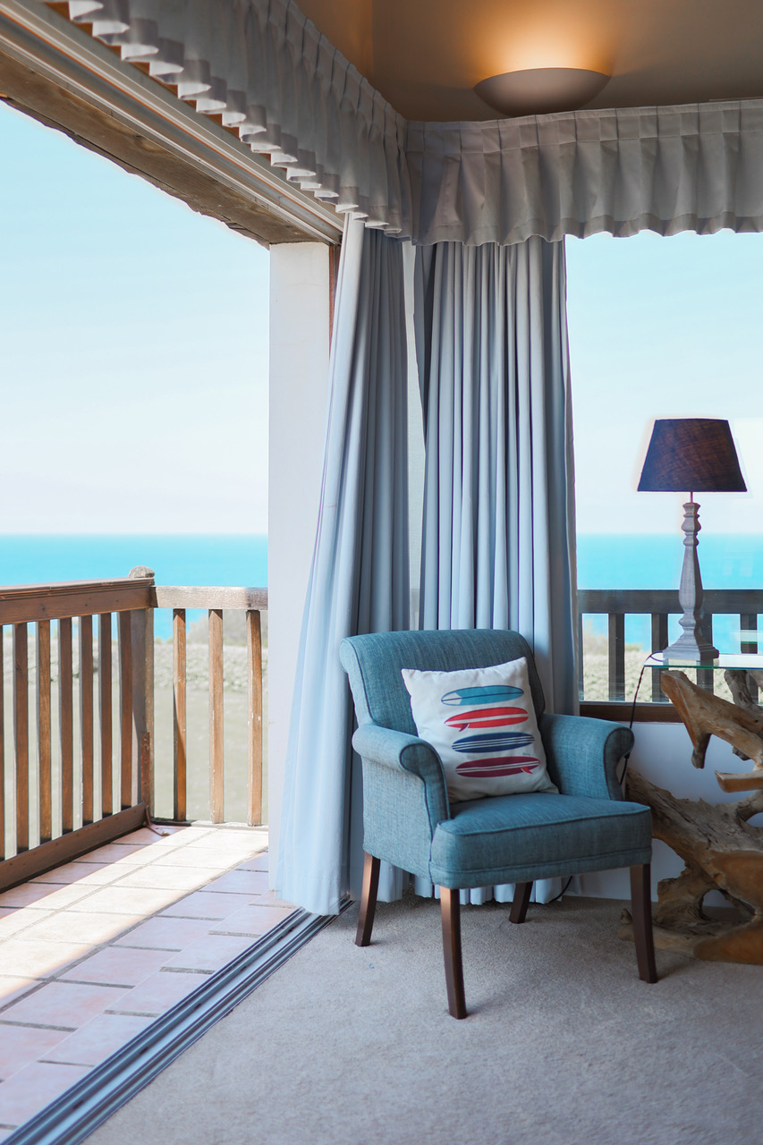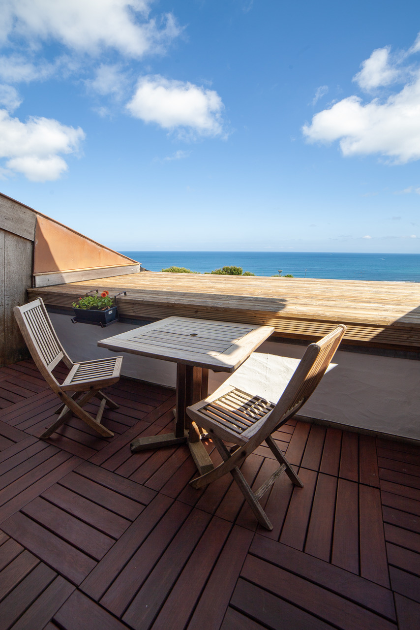 Double bedroom with sea view, queen-size bed and Ensuite bathroom with bath