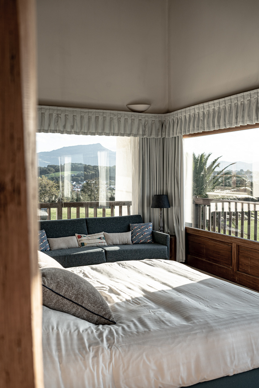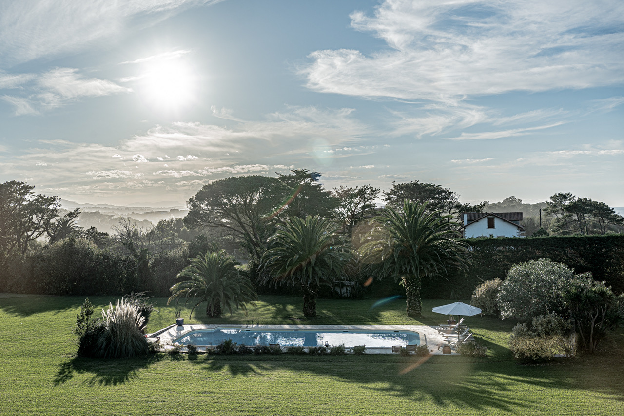 This splendid traditional basque villa offers a nice and spacious garden with both a sea view and a mountains view. In a private park, it can accomodate 16 people and you will love all its privileges such as: oustide pool, air-condtioning, continental breakfast, diners ... all details that will make you enjoy your stay in the area. Located at 2 minutes from the sea, you could also enjoy being at the beach or take a moment of relax nearby the heated sea water pool. Golfs and tennis in a 5 km area.
