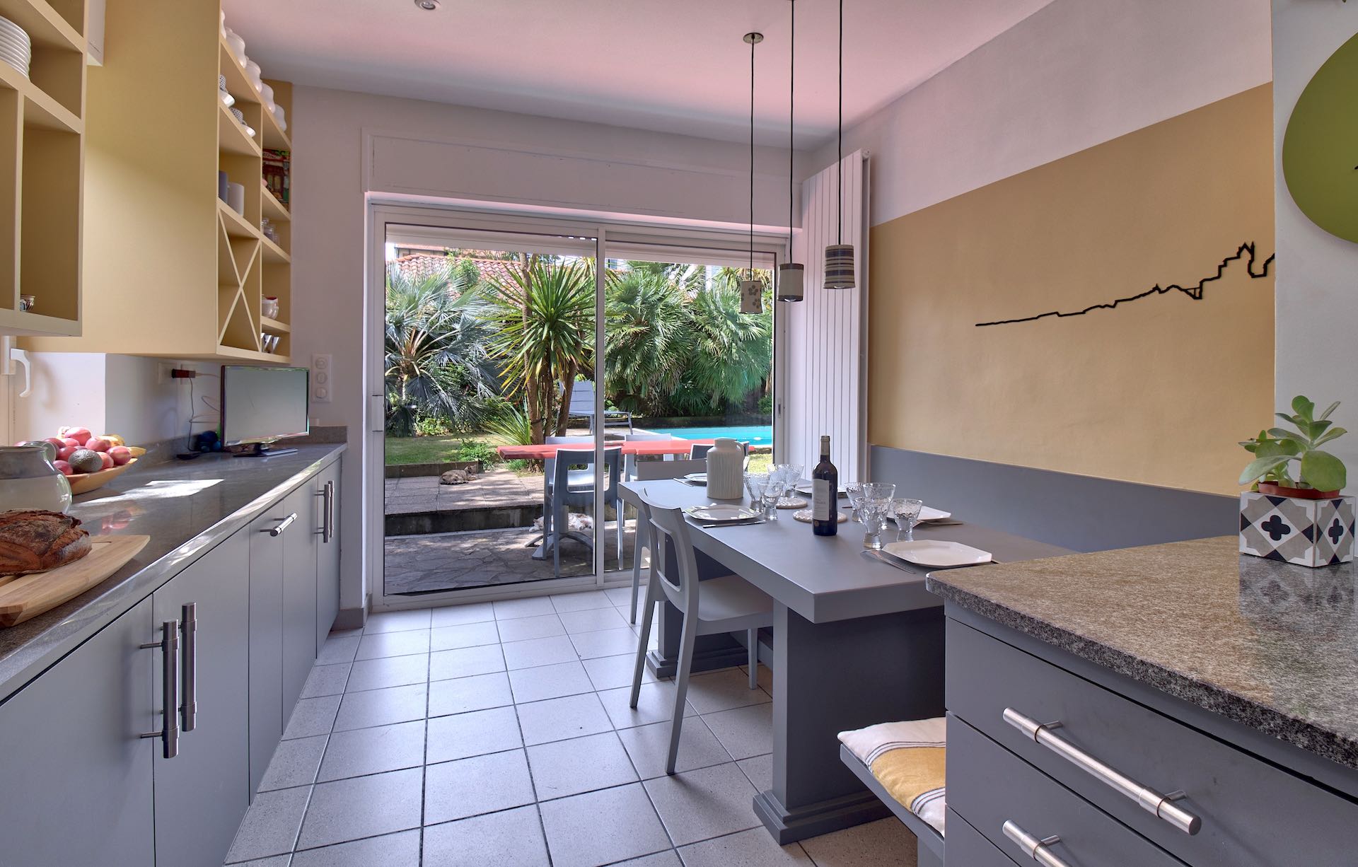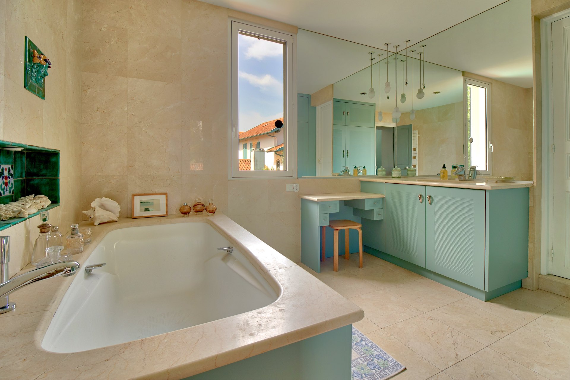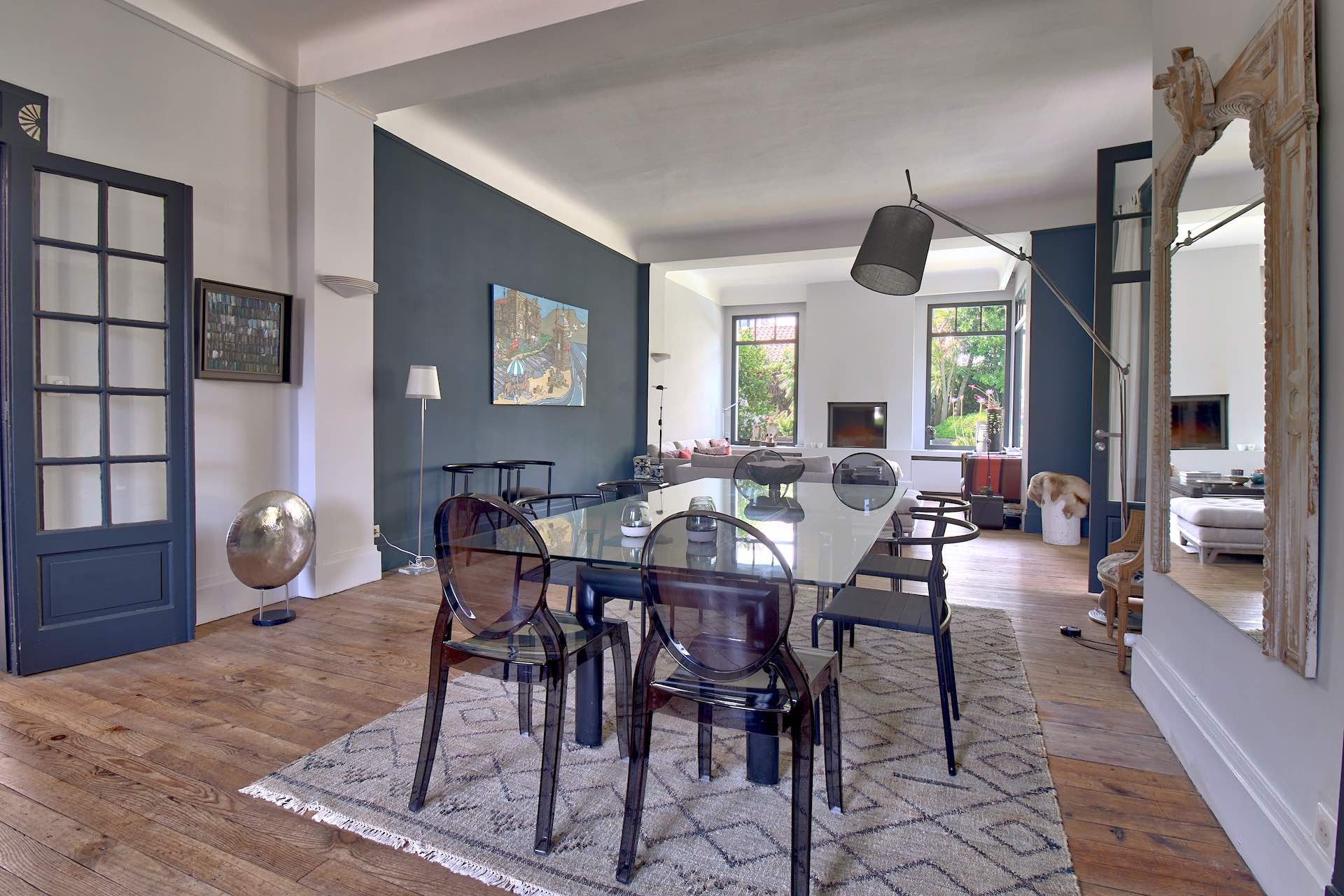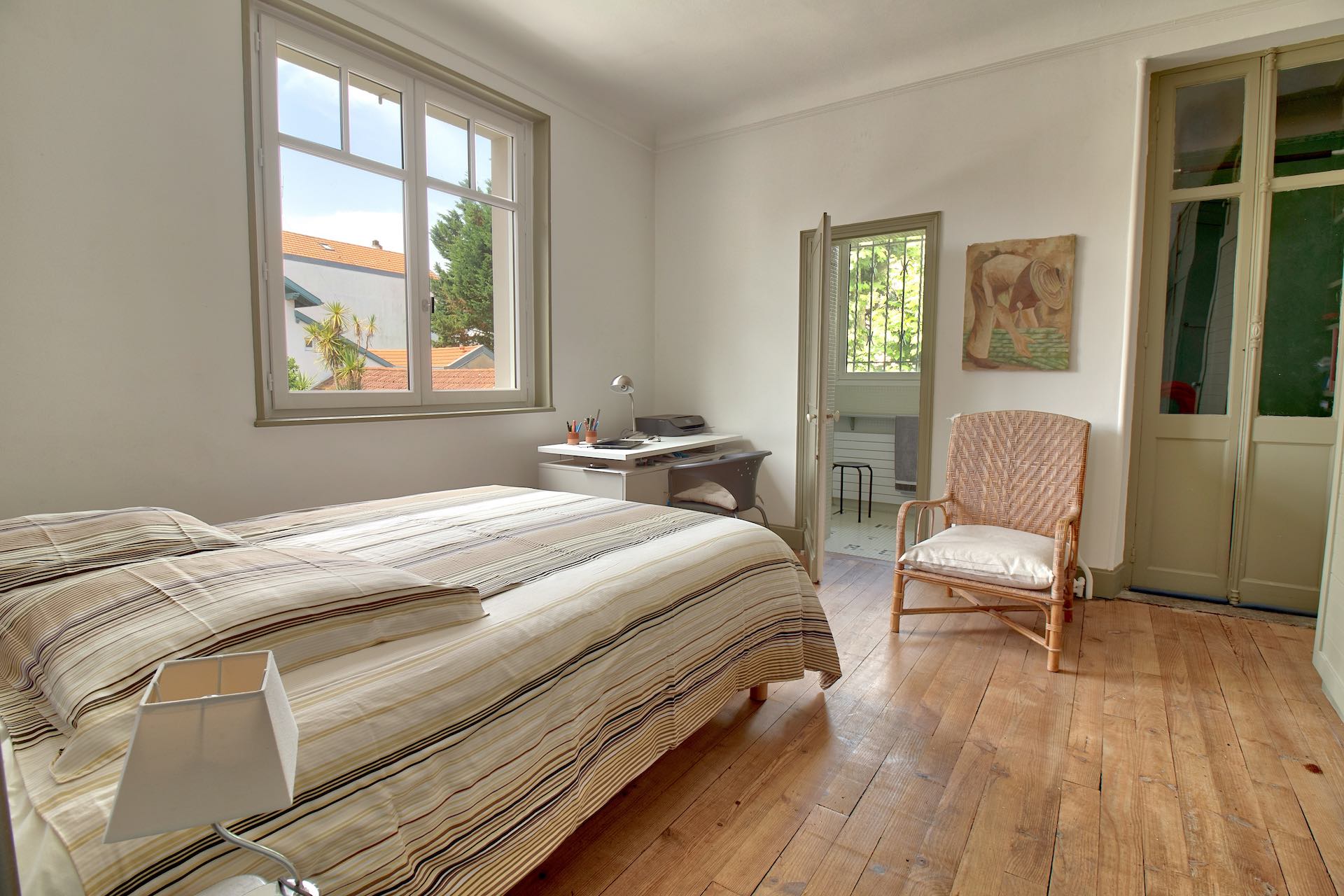 Beautiful old property with Basque architecture located in the center of Biarritz, 800 meters from the beaches and 100 meters from the shops. It has a pretty garden with a private heated swimming pool and its pool-house. A covered terrace is fitted out to take meals outside. The interiors are tastefully decorated in a bourgeois style combining noble and modern materials.