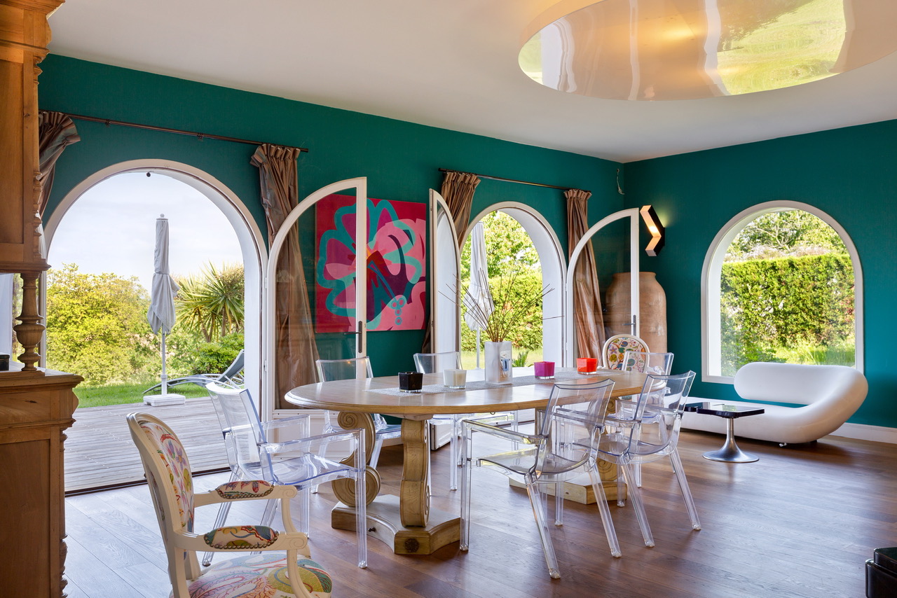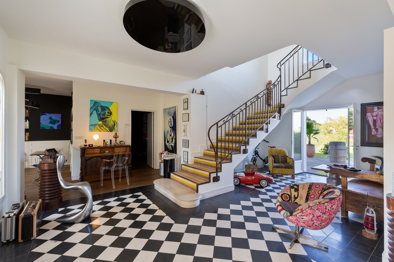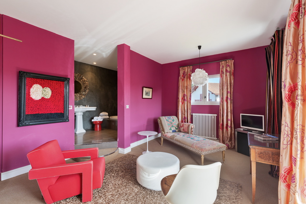 This beautiful villa is the result of a daring bias in decorating between contemporary design and 1950s architecture. From its typically Basque facade, nothing suggests that inside hides such a unique soul. The owner in relation with a great renowned Basque architect, wanted to tell the story of the house through this eclectic style: we imagine that many generations have lived there and each time left an element of their time, for write little by little a detailed summary of all the moments of life that this house has been able to shelter.