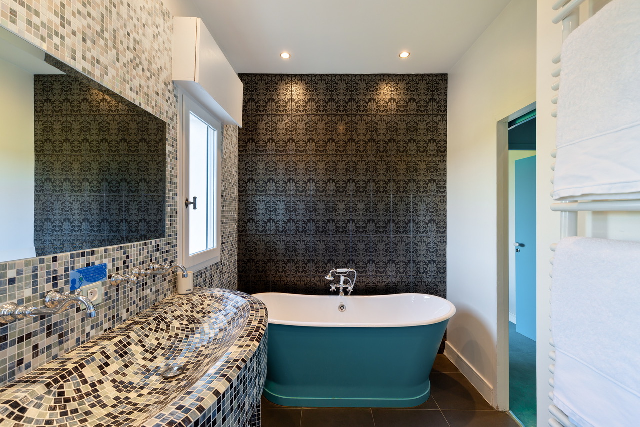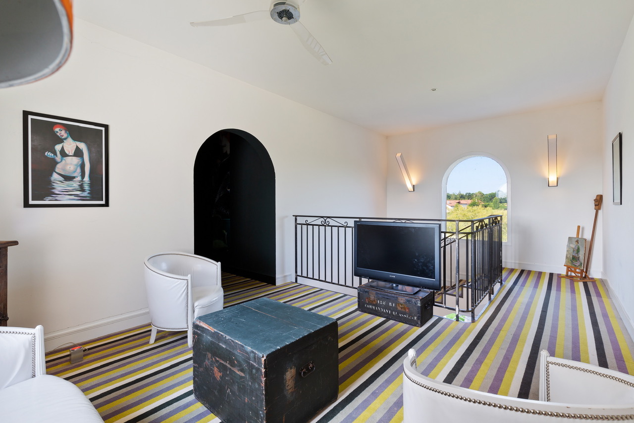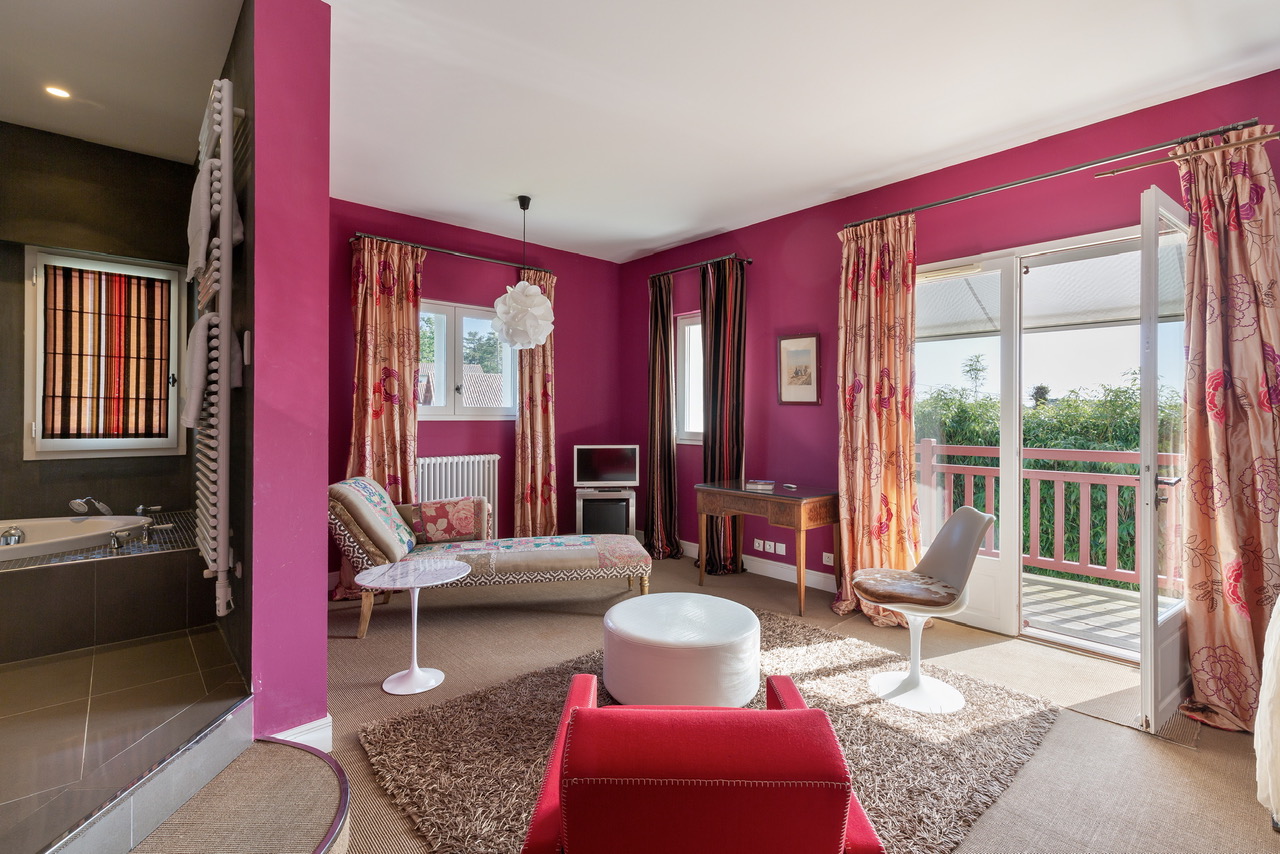 This beautiful villa is the result of a daring bias in decorating between contemporary design and 1950s architecture. From its typically Basque facade, nothing suggests that inside hides such a unique soul. The owner in relation with a great renowned Basque architect, wanted to tell the story of the house through this eclectic style: we imagine that many generations have lived there and each time left an element of their time, for write little by little a detailed summary of all the moments of life that this house has been able to shelter.
