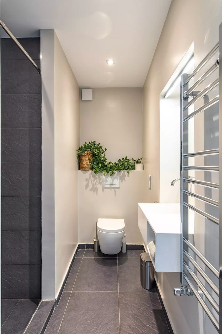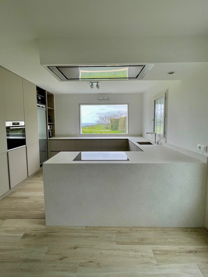 Open kitchen with washing machine, dishwasher, microwave oven, induction hob, electric oven, nespresso machine, fridge, ice making machine