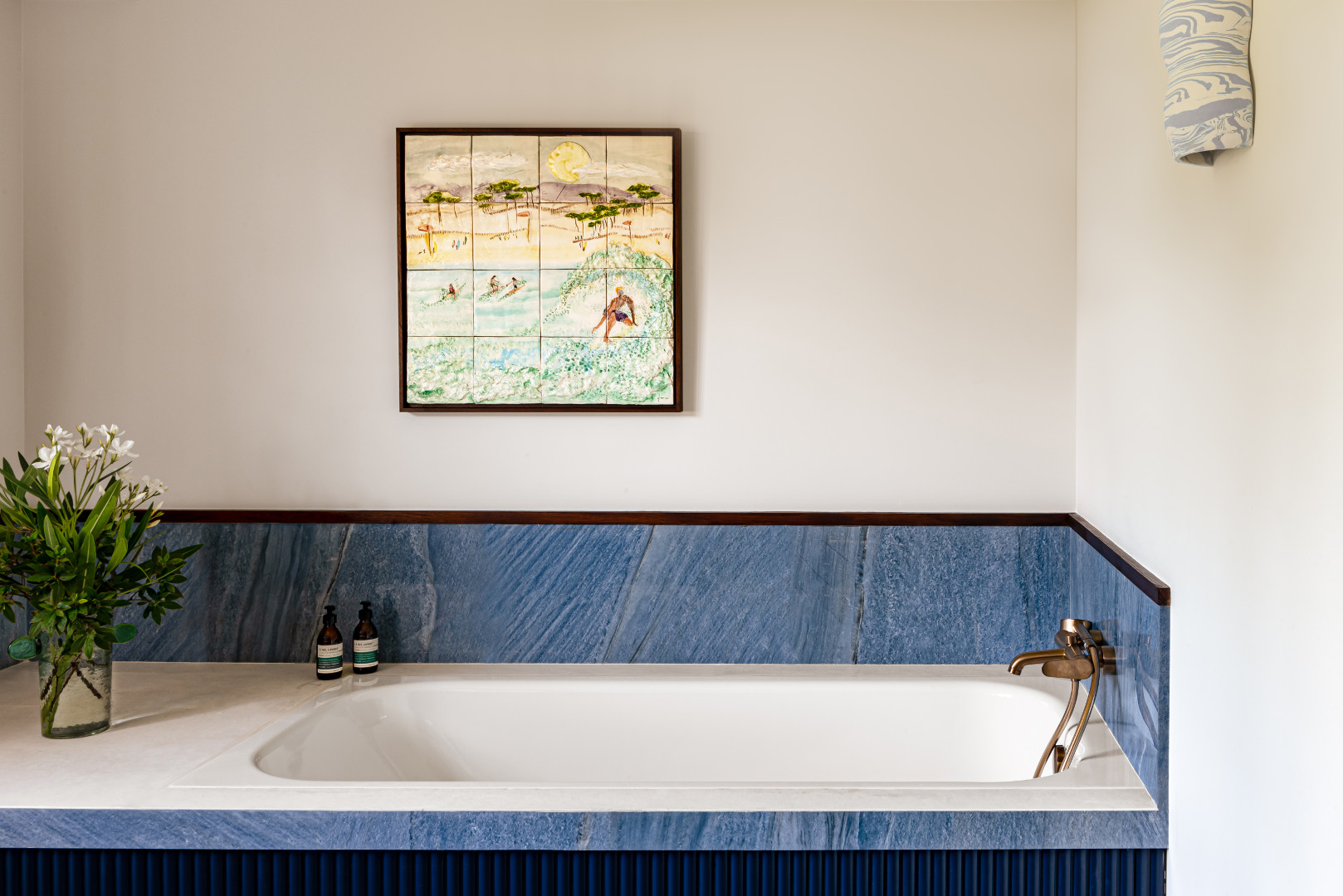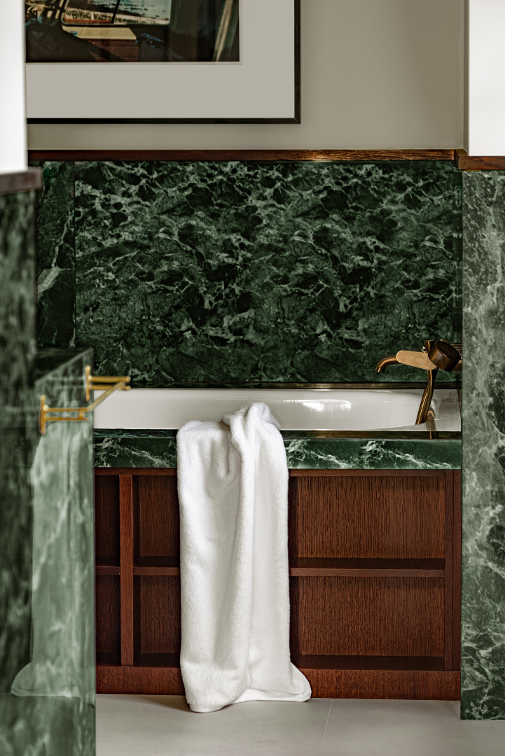 Double bedroom with double bed, walk-in closet, office corner, safe and Ensuite bathroom with bath