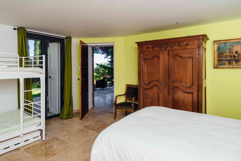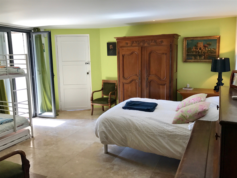 Double bedroom of 25 sqm, with 2 bunk beds with access from the game room or the terrace with single bed 90cm large, queen-size bed, south-facing and Ensuite bathroom with wc, shower, sink and Terrace of 20 sqm