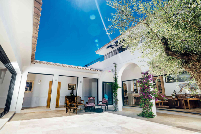 In this property, life with family or friends is quietly and serenely organized. You will each find your place in the sun, your reading corner, your leisure activities. Multiples and neat, outdoor spaces are one of the many wonders that these places offer. The patio is the aesthetic climax : in Andalusia, with an olive tree shining in the sun and its Bougainvilleas running along delicate arches.