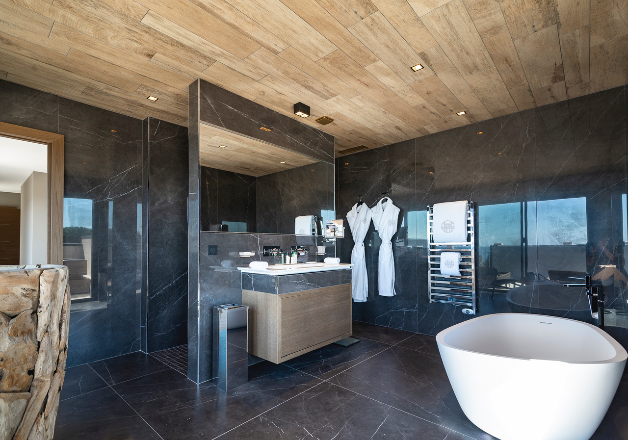 Each of the buildings benefits, in one place or another, from the sea view. The 5 bedrooms all have their own advantages. While in one you can enjoy a view of the infinity pool, in the others you can admire the sea view from the quivering jacuzzi or enjoy the furnished terrace facing a sumptuous landscape.