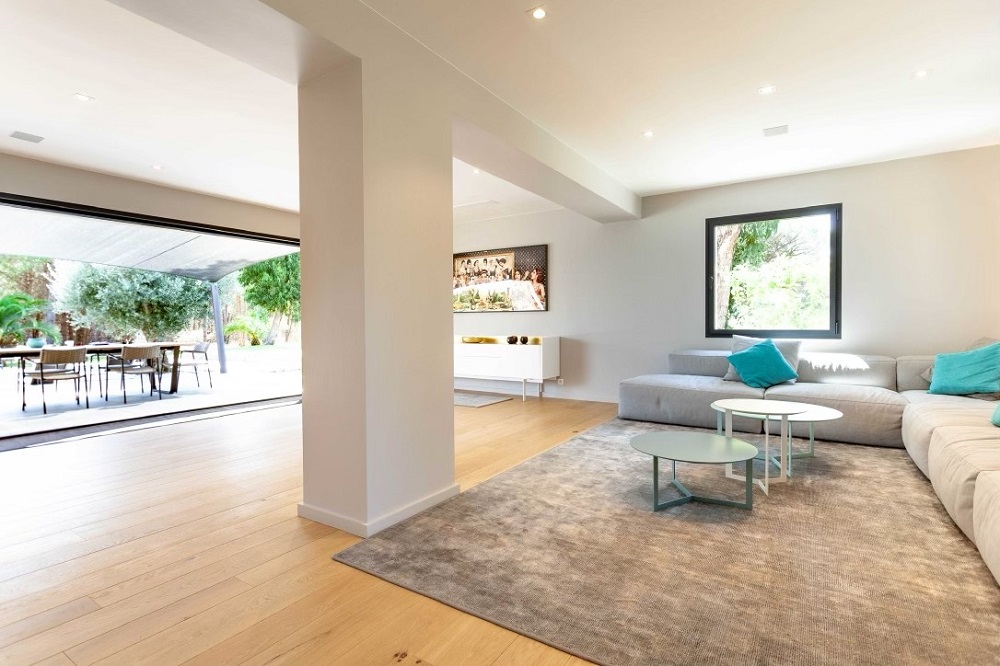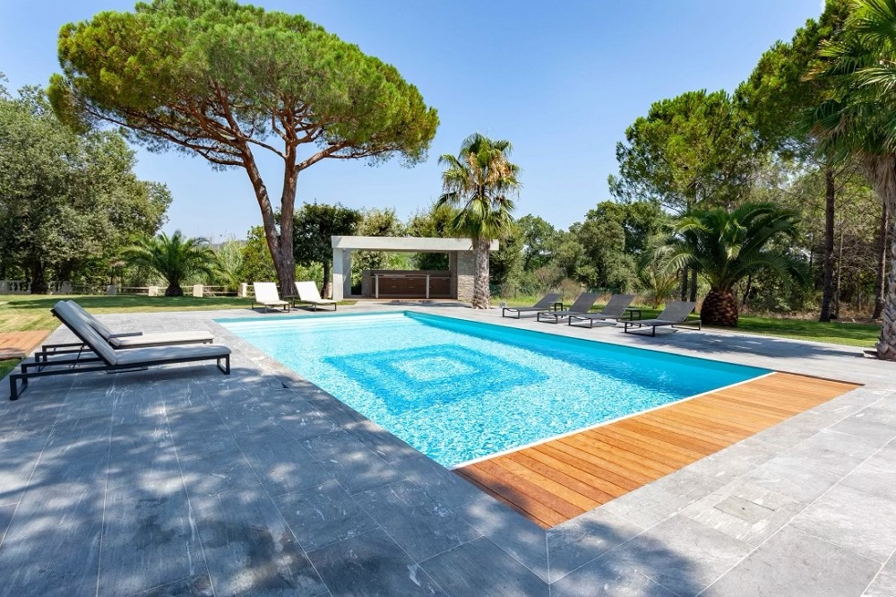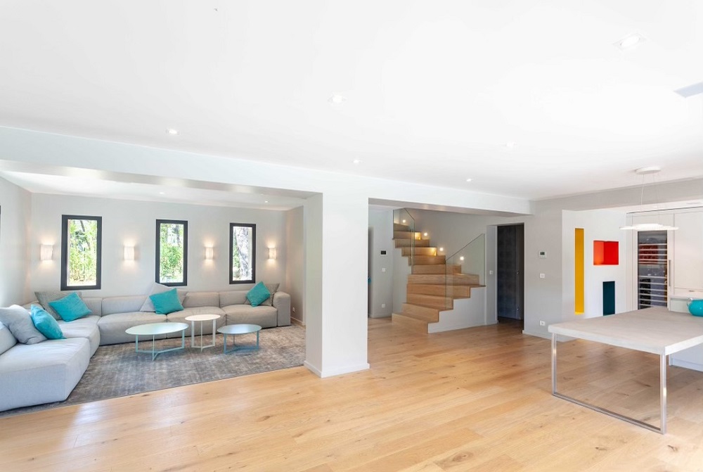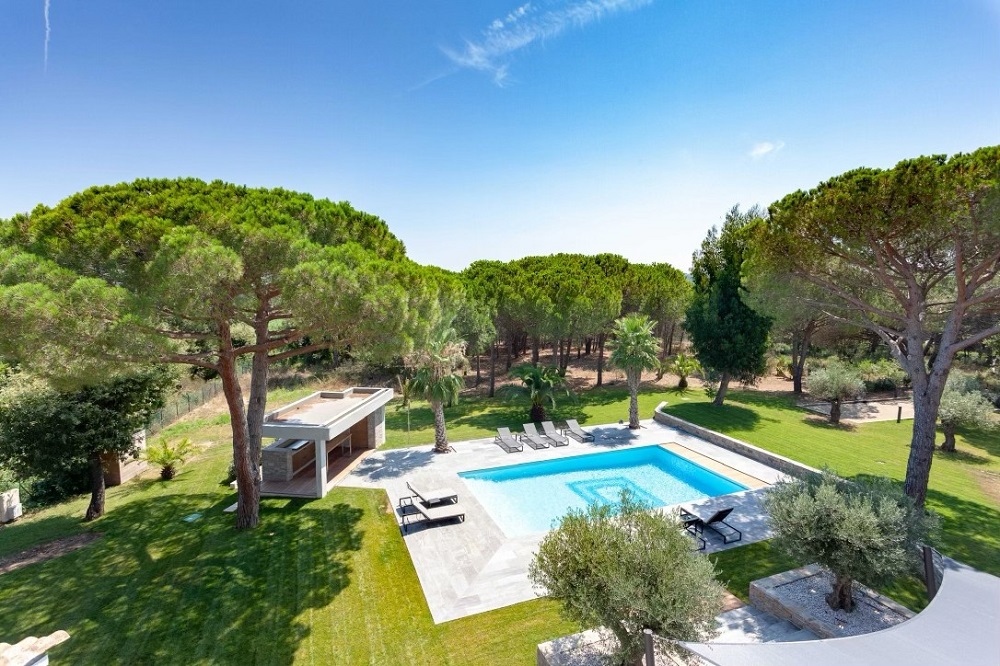 The villa is a contemporary property located near Saint-Tropez, ideal for those seeking a peaceful retreat in the countryside while being close to the entertainment, restaurants, and beach clubs of Pampelonne. Nestled among beautiful vineyards and Mediterranean umbrella pines, it is just two kilometers from the hilltop village of Ramatuelle.