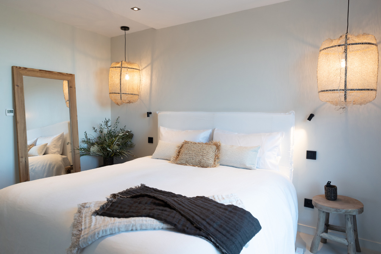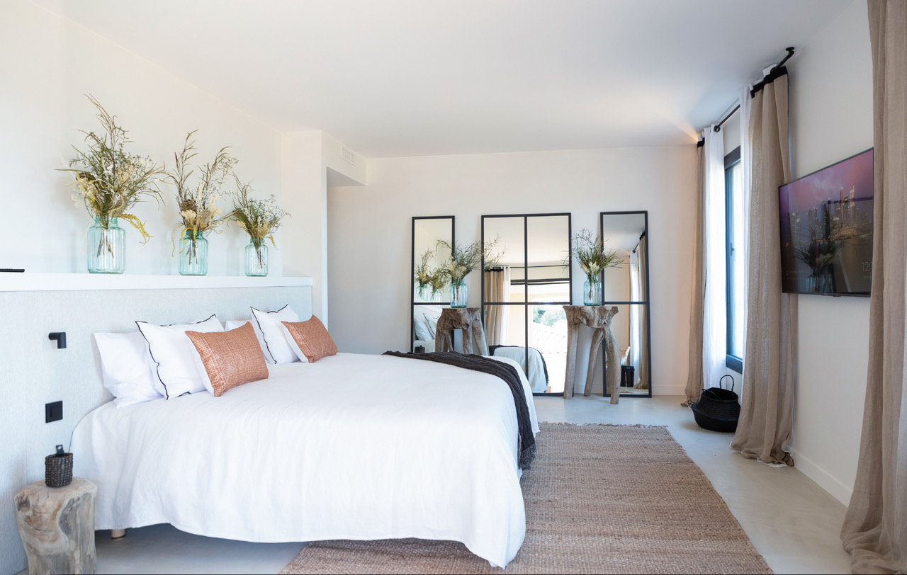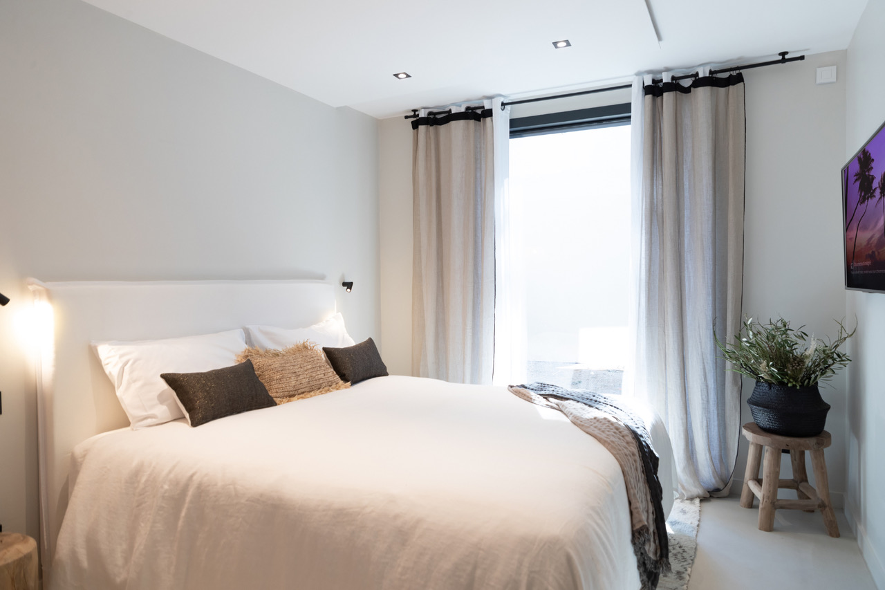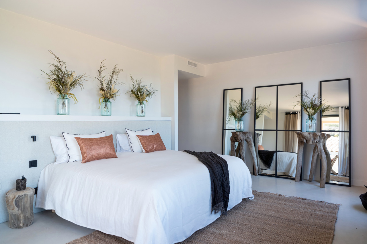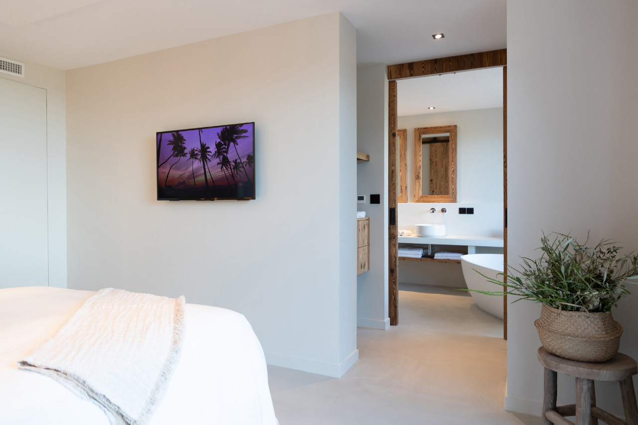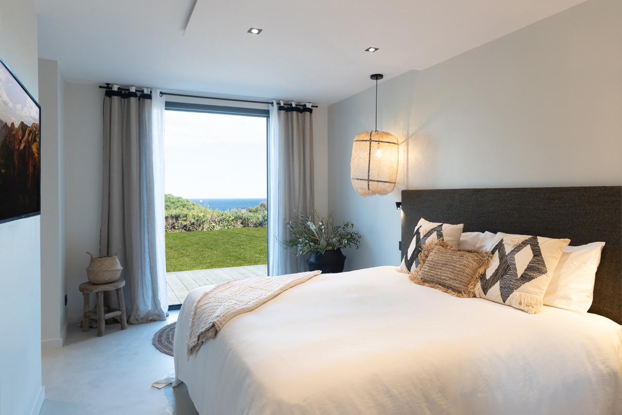 Master bedroom of 45 m2 with super king-size bed, sea view, walk-in closet and Ensuite bathroom with shower, bath, double sink and Toilets separate