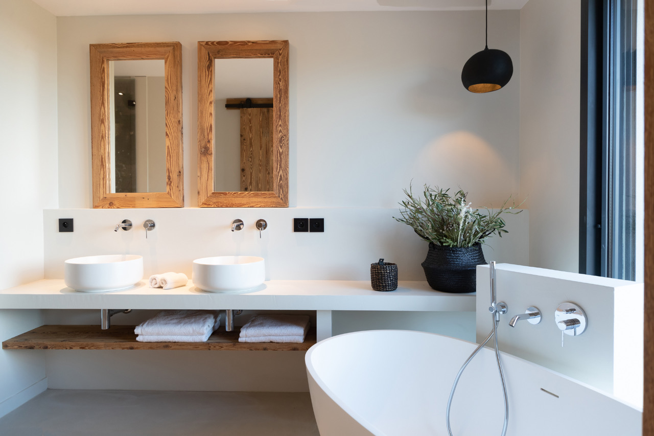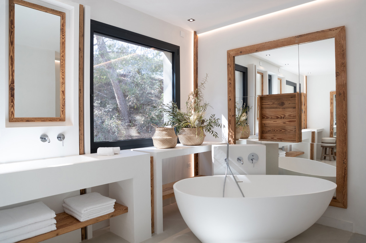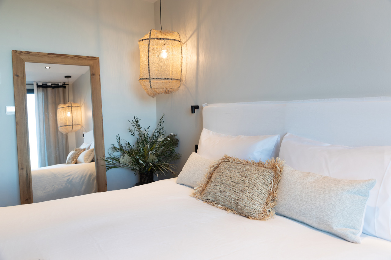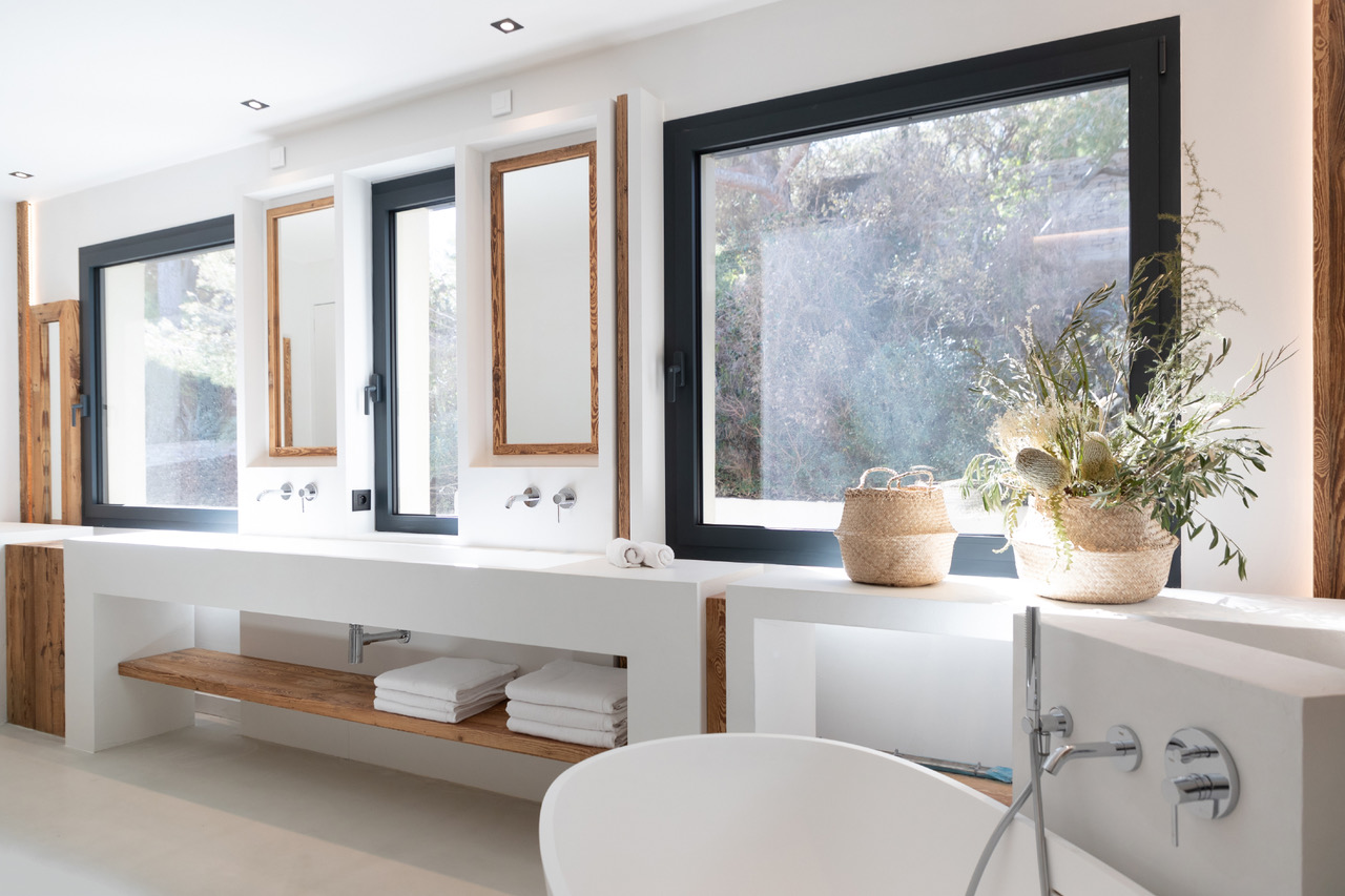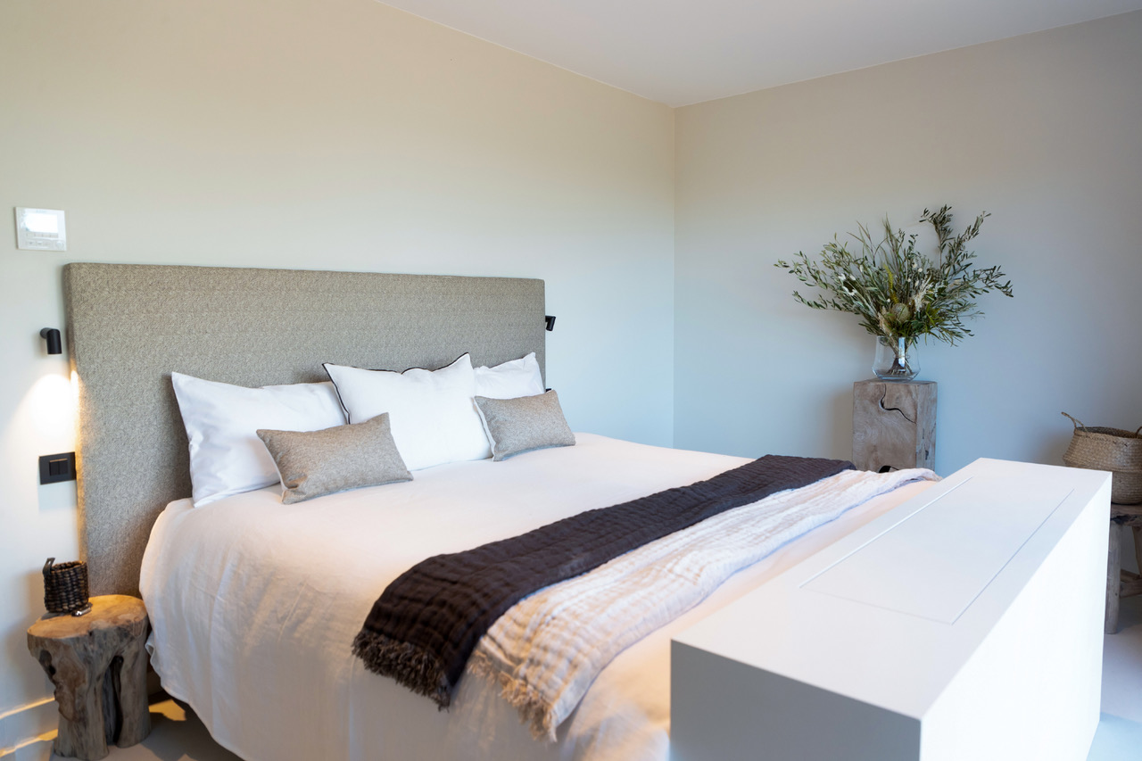 Master bedroom of 45 m2 with super king-size bed, sea view, walk-in closet and Ensuite bathroom with shower, bath, double sink and Toilets separate