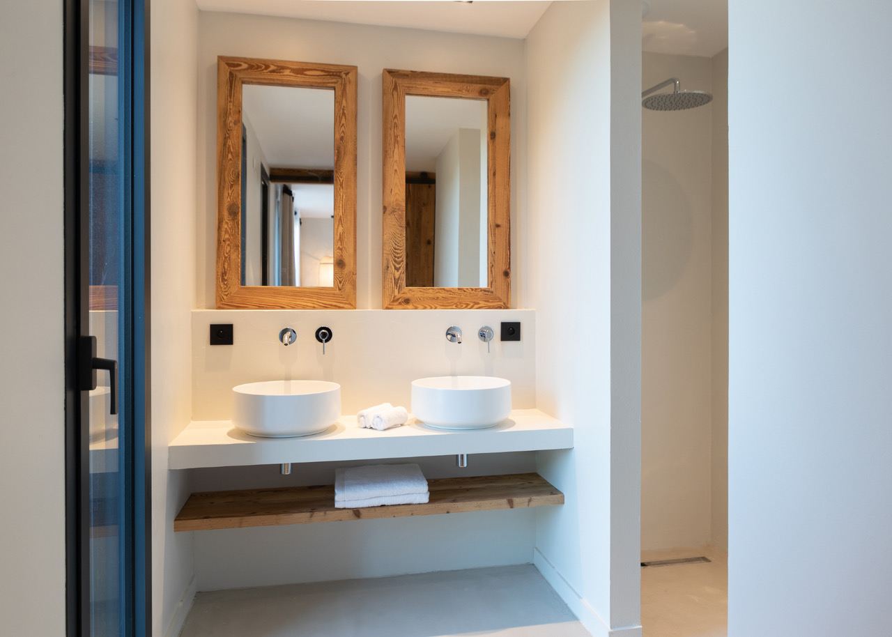Double bedroom with king-size bed and Ensuite bathroom with sink, wc, shower