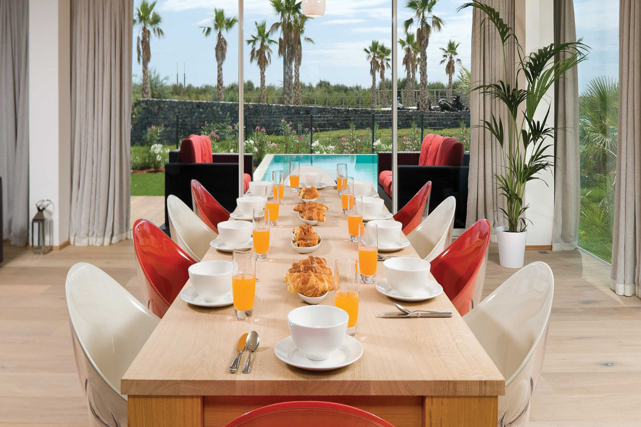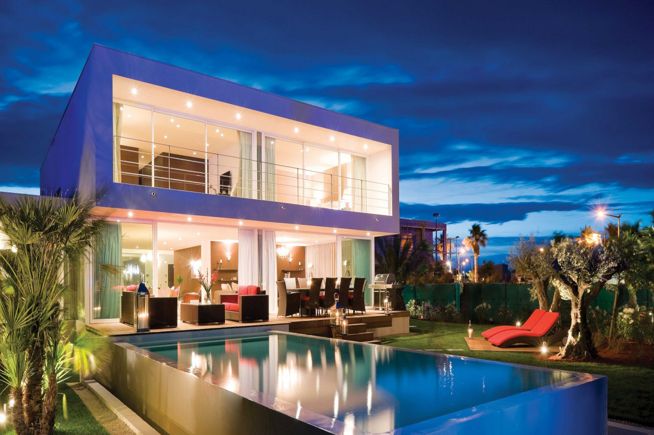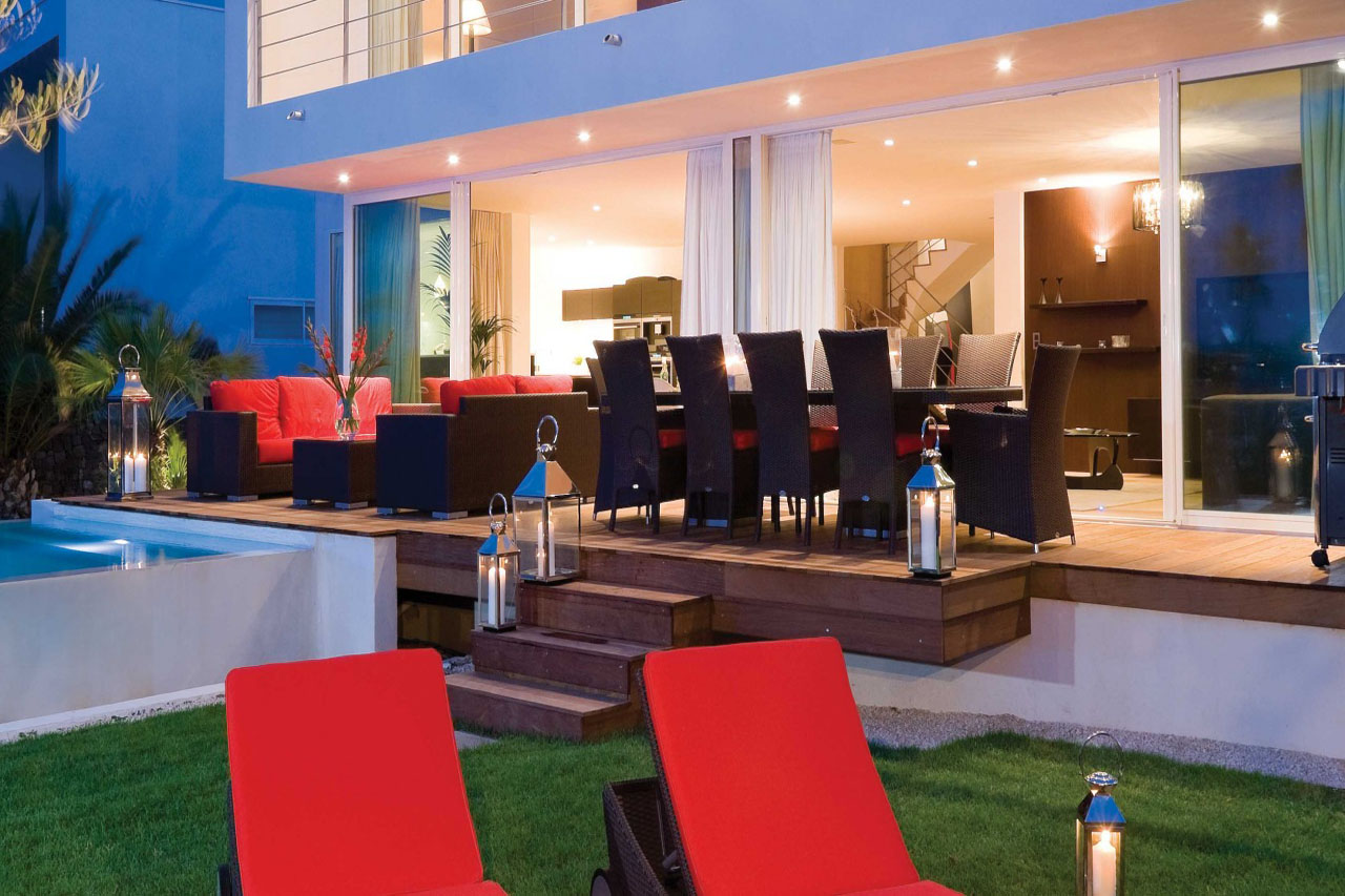 Here comes one of the villas we are the most proud of. The 400 sqm villa highlights include spectacular glass walled swimming pool, children’s game room, cinema room and sauna. The combination of traditional local stone, wood and glass provide for a spectacular entrance. The light and airy open plan living area offers stunning sea views. The fully equipped kitchen, dining area and comfortable lounge area is equipped with plasma television, DVD library and sound system. All bedrooms are suitable for double or twin occupancy and are equipped with plasma televisions, DVD players and Ipod docking stations. The luxurious en-suite bathrooms are brimming with L’Occitane products and fluffy bathrobes and towels for your comfort. Children and big kids can enjoy table tennis and table football and other activities in the basement games room. Relax in the sauna or watch your favourite movie in the cinema room, both situated in the basement. Staff or nanny accommodation is also available should you require.