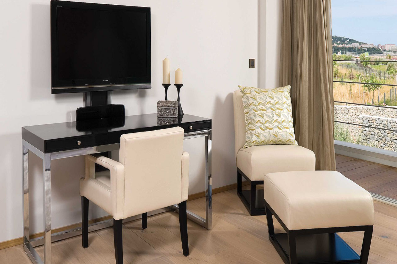 Twin bedroom can be made up as double with balcony, sea view, plasma tv, dvd player, ipod dock and Ensuite bathroom with shower, wc