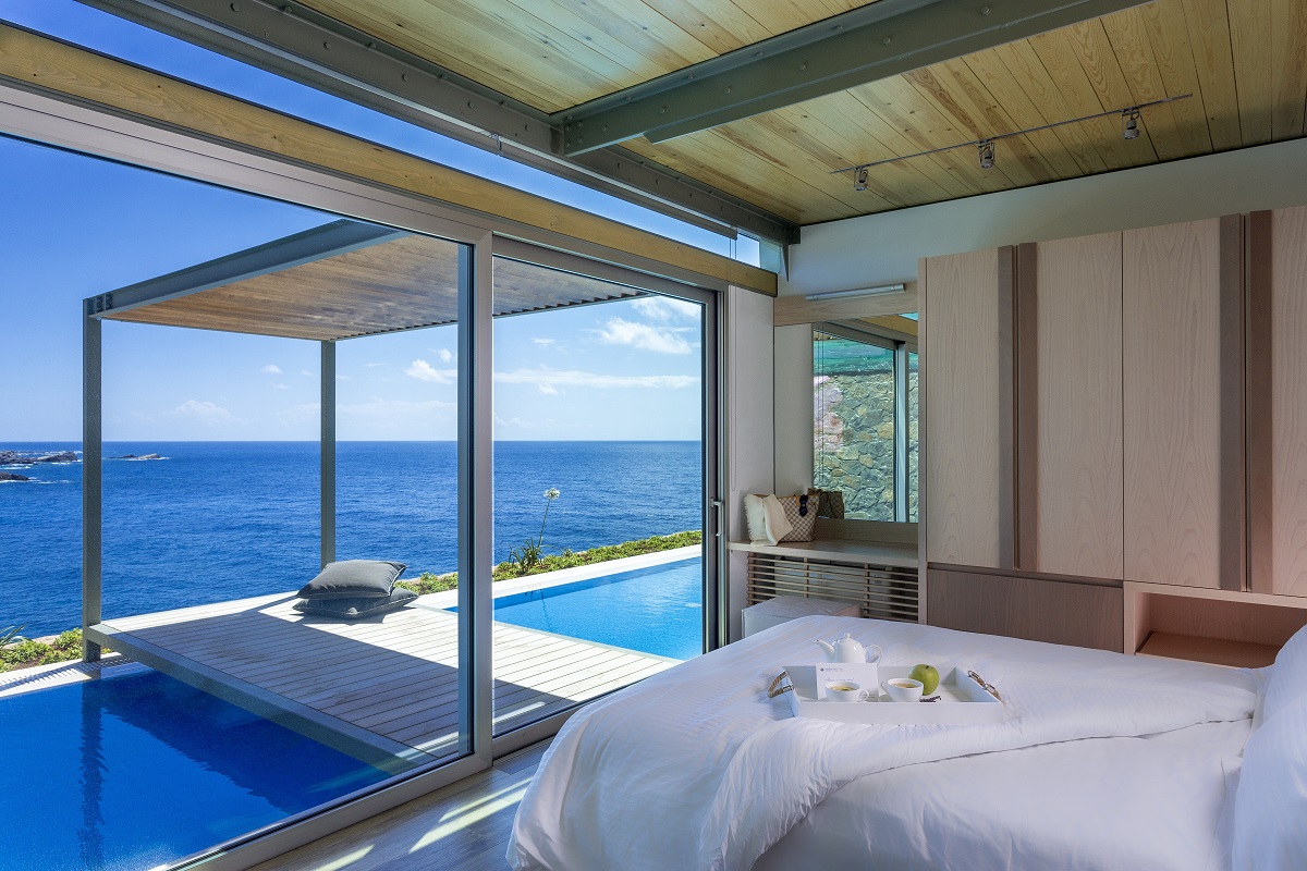 Wooden floors, minimalist furnishings, glass walls and rock elements make the guests concentrate the endless views that surround them.