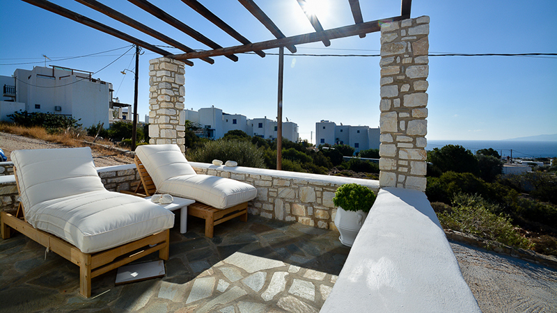 The house is situated in the village of Aspro Xorio (the "White Village") and has magnificent sea views over to Ios, Sikinos and Foligandros. The town of Drios, with a supermarket and many tavernas is only 2 kms away. The popular fishing town of Piso Livadi, with its superb restaurants, Greek tavernas and bars is only approx 10 kms away.