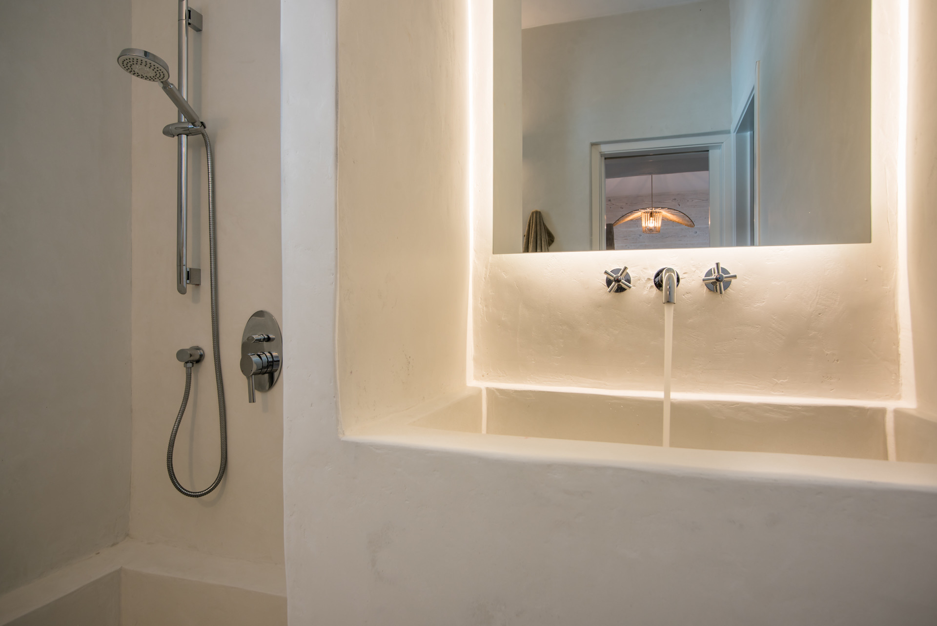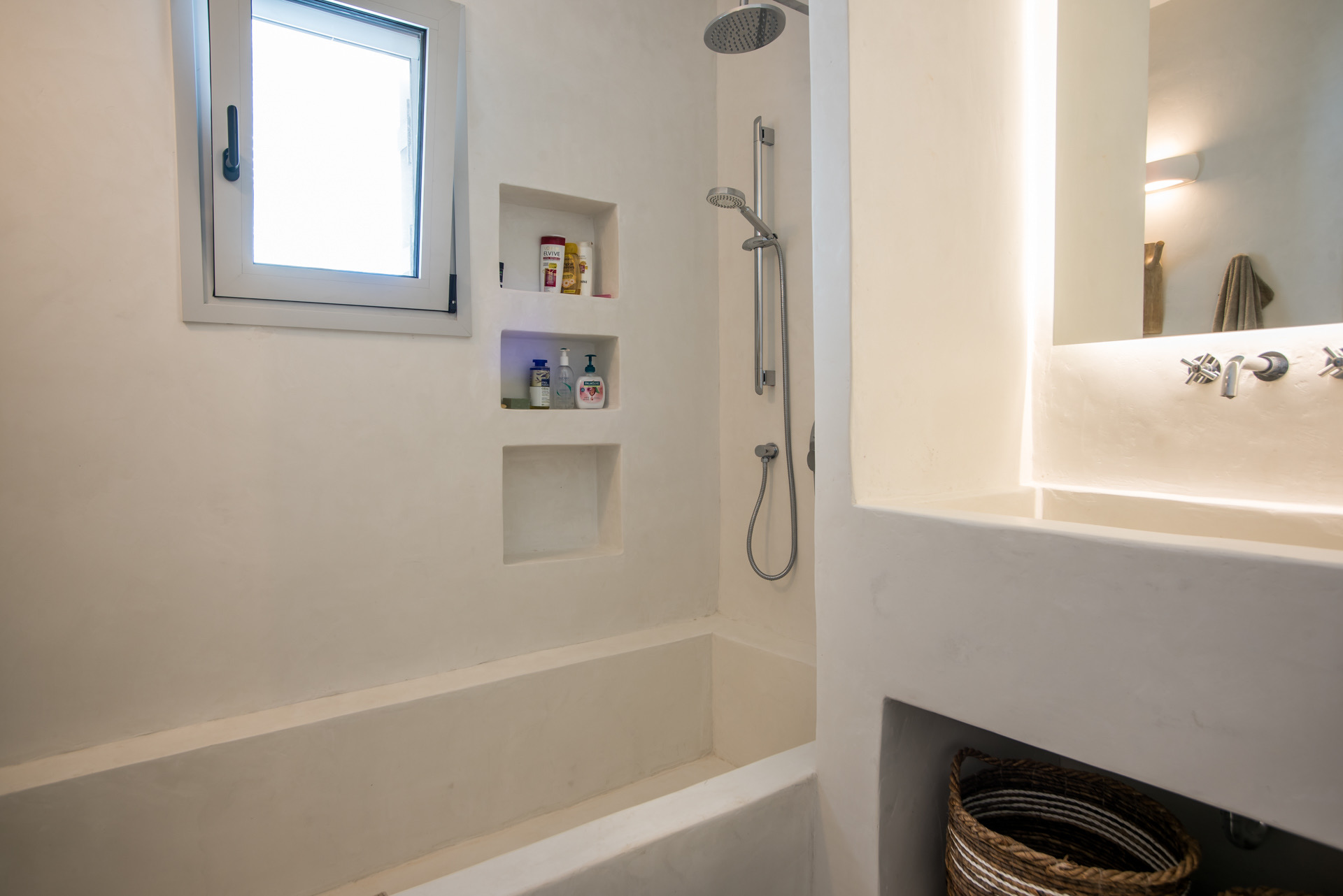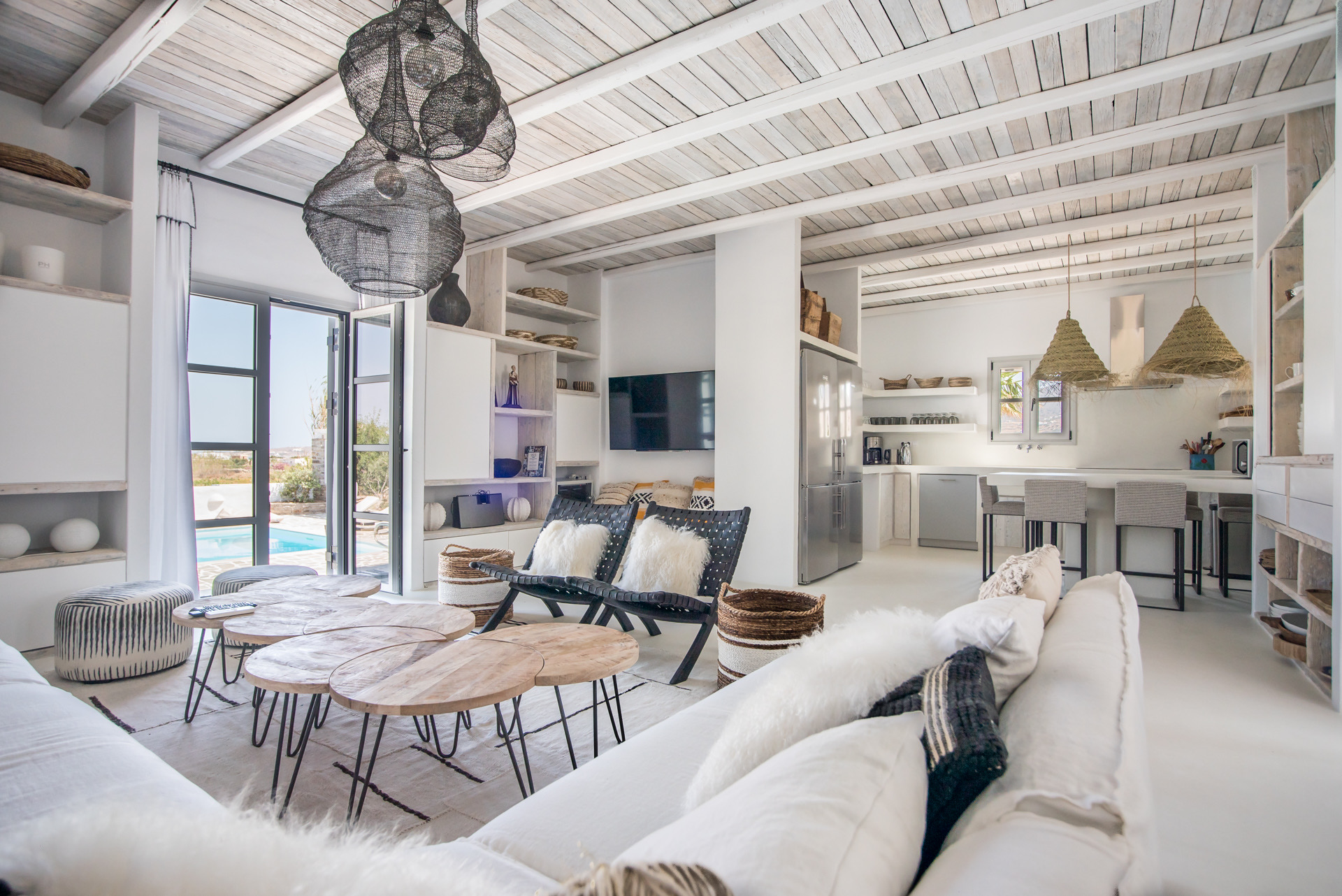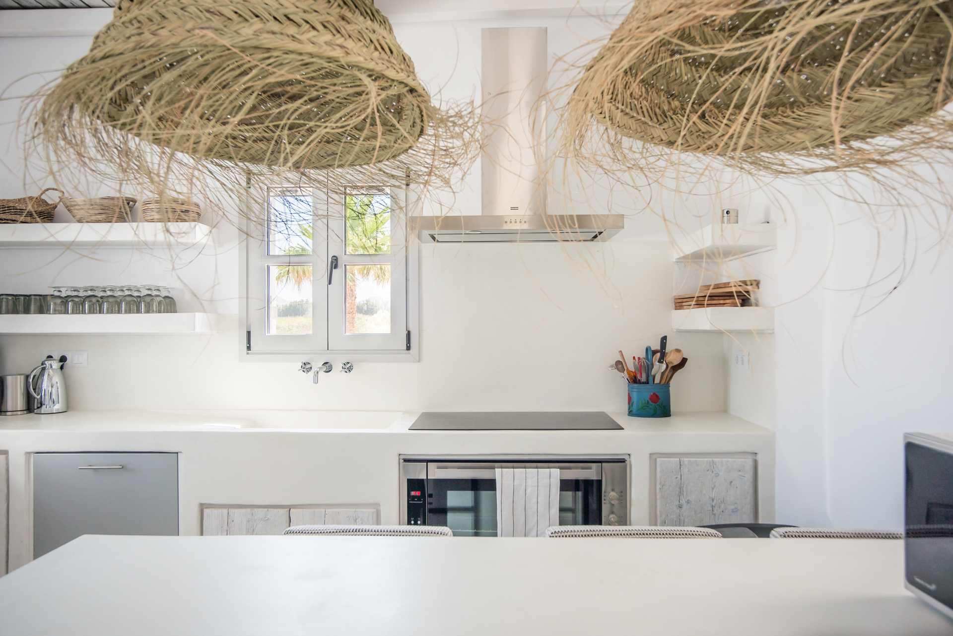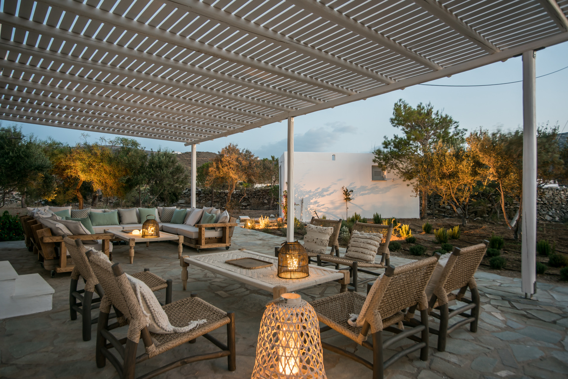 The interiors have been designed and furnished with great taste in white and brown tones, noble and refined materials. Small touches of wood and wicker bring this traditional and rustic chic side of the Cyclades. All the inviting and warm rooms have private bathrooms.