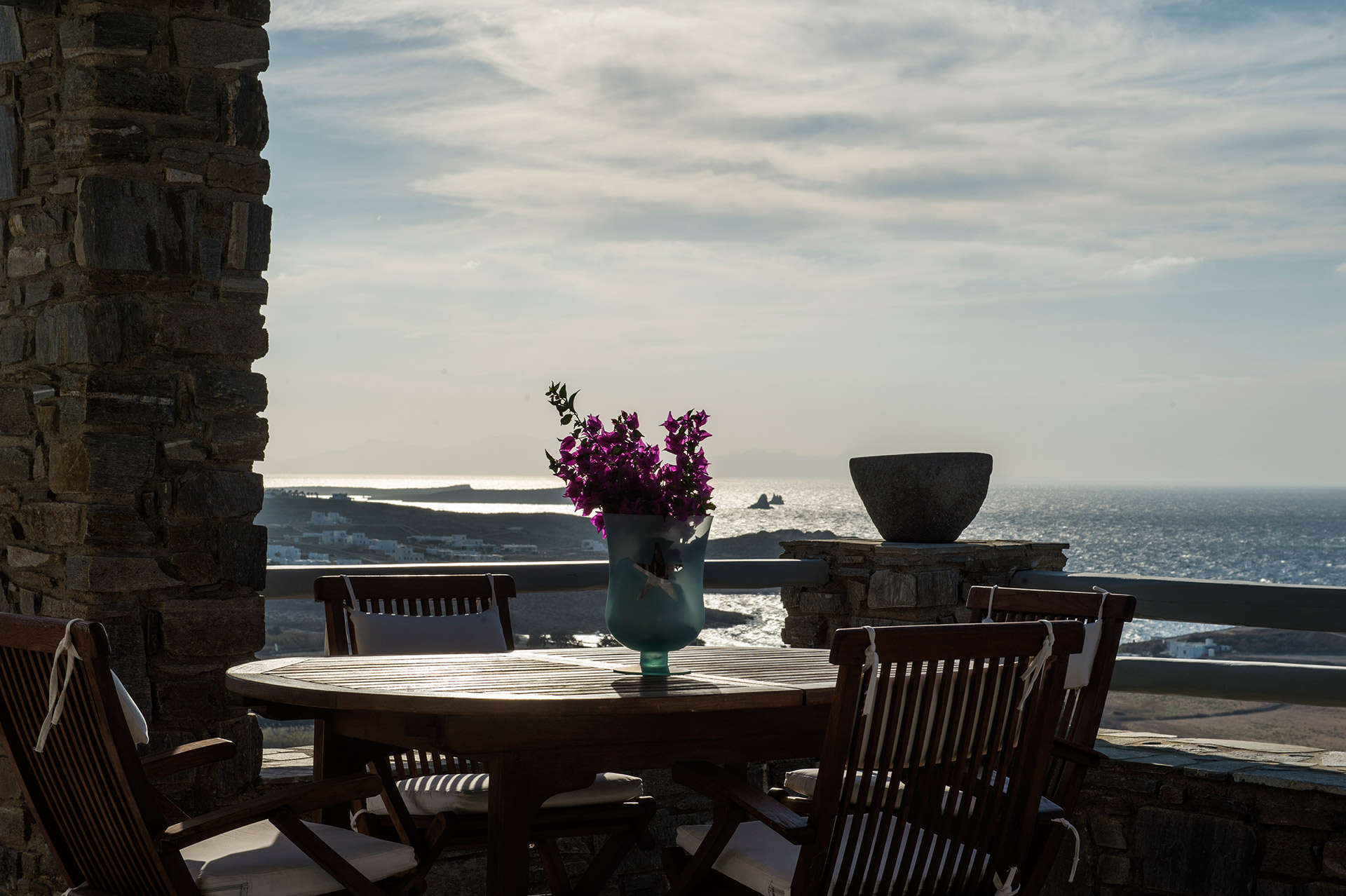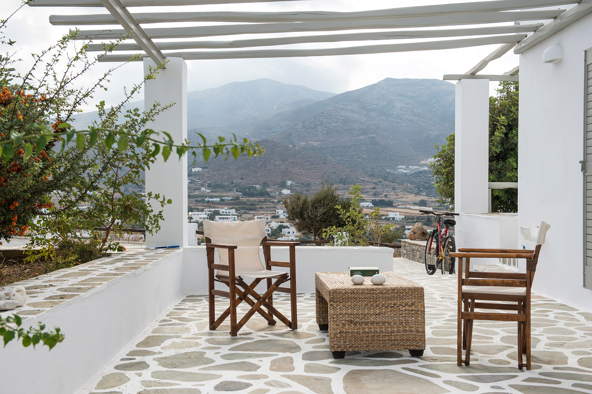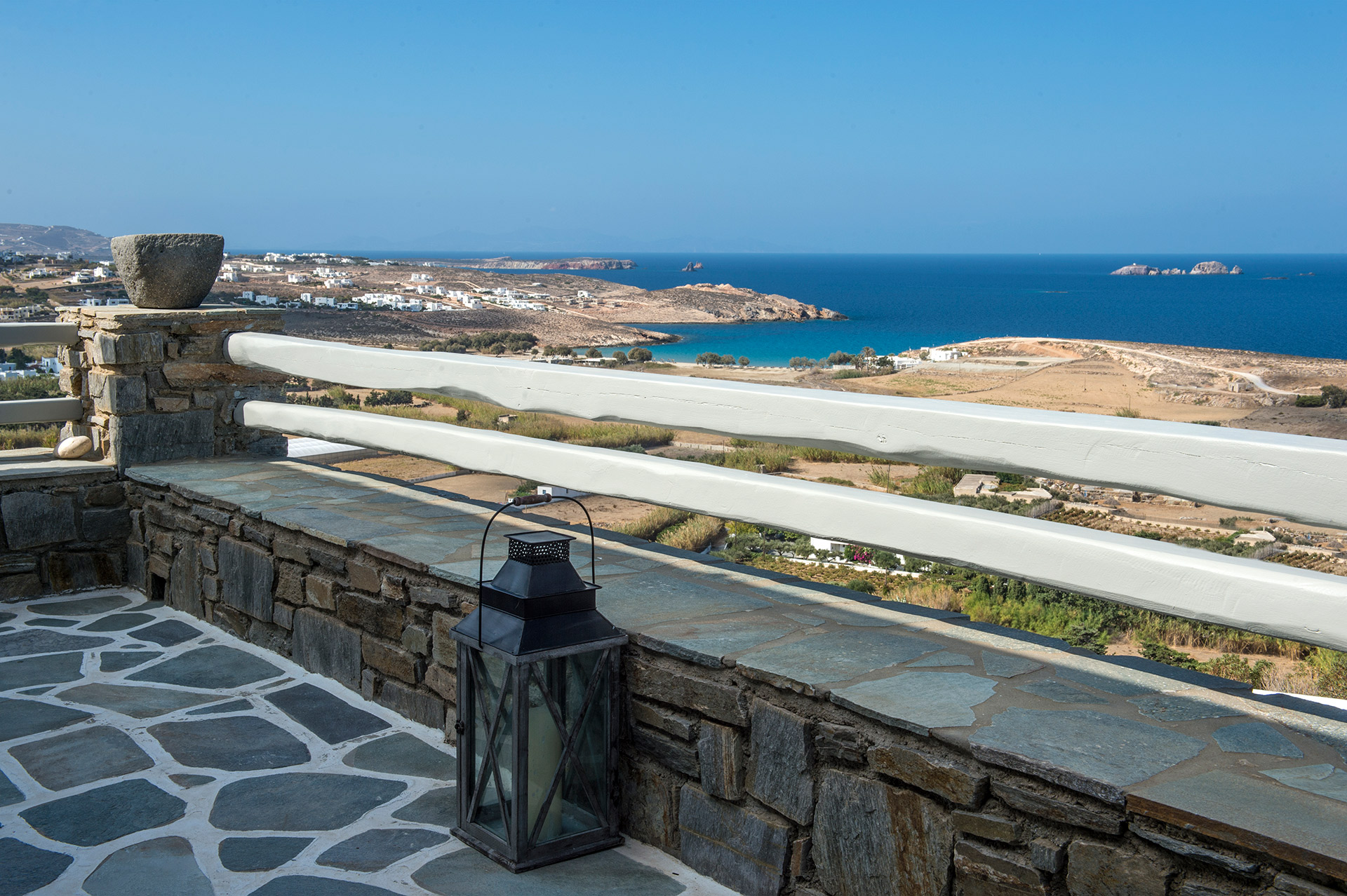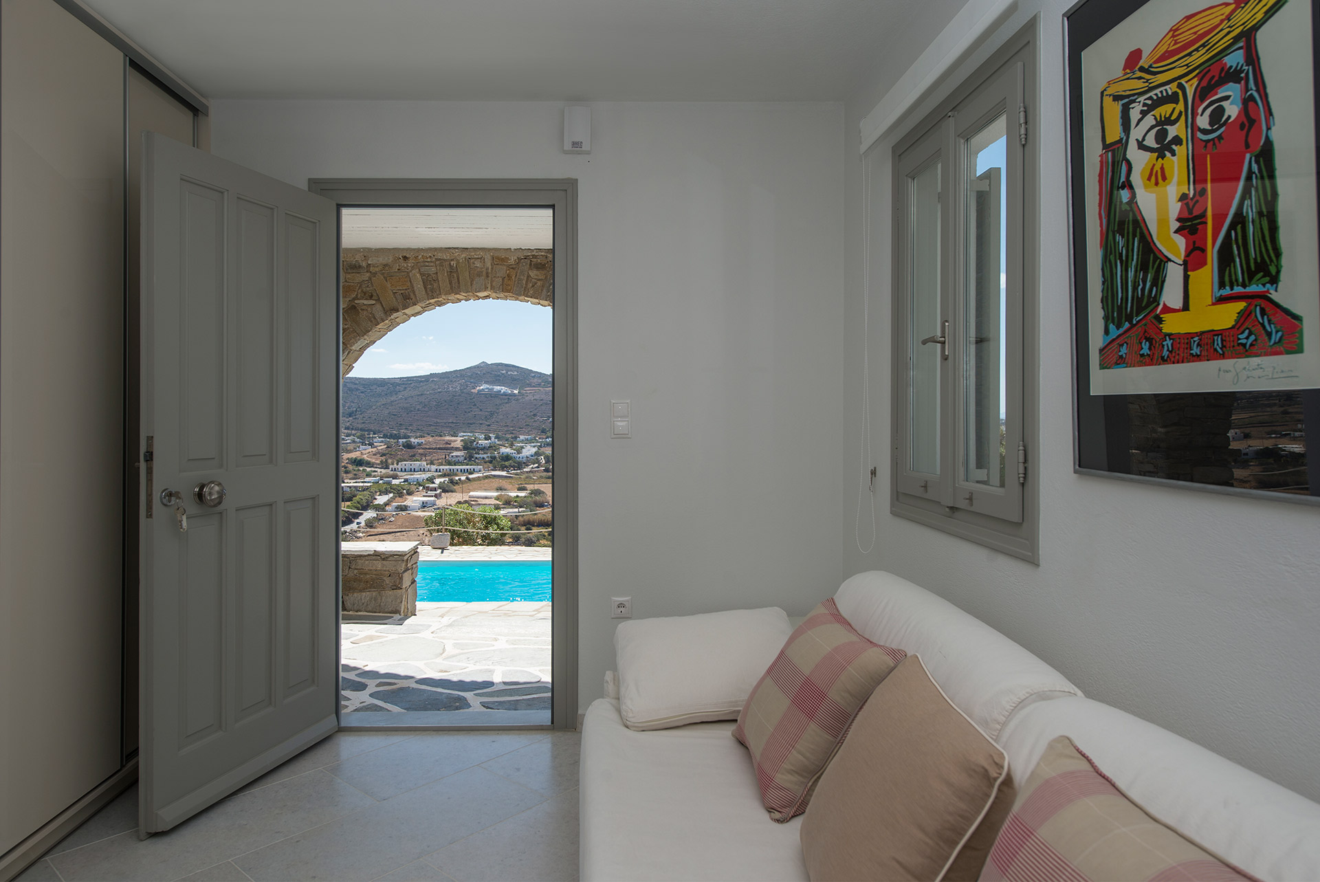 The villa has a superb view over the bay of Parikia and the countryside at the back of the house which can be admired from the outdoor terraces arranged for relaxation or for meals. You will just have to go down the hill to the beach which is only 1 km from the villa.
