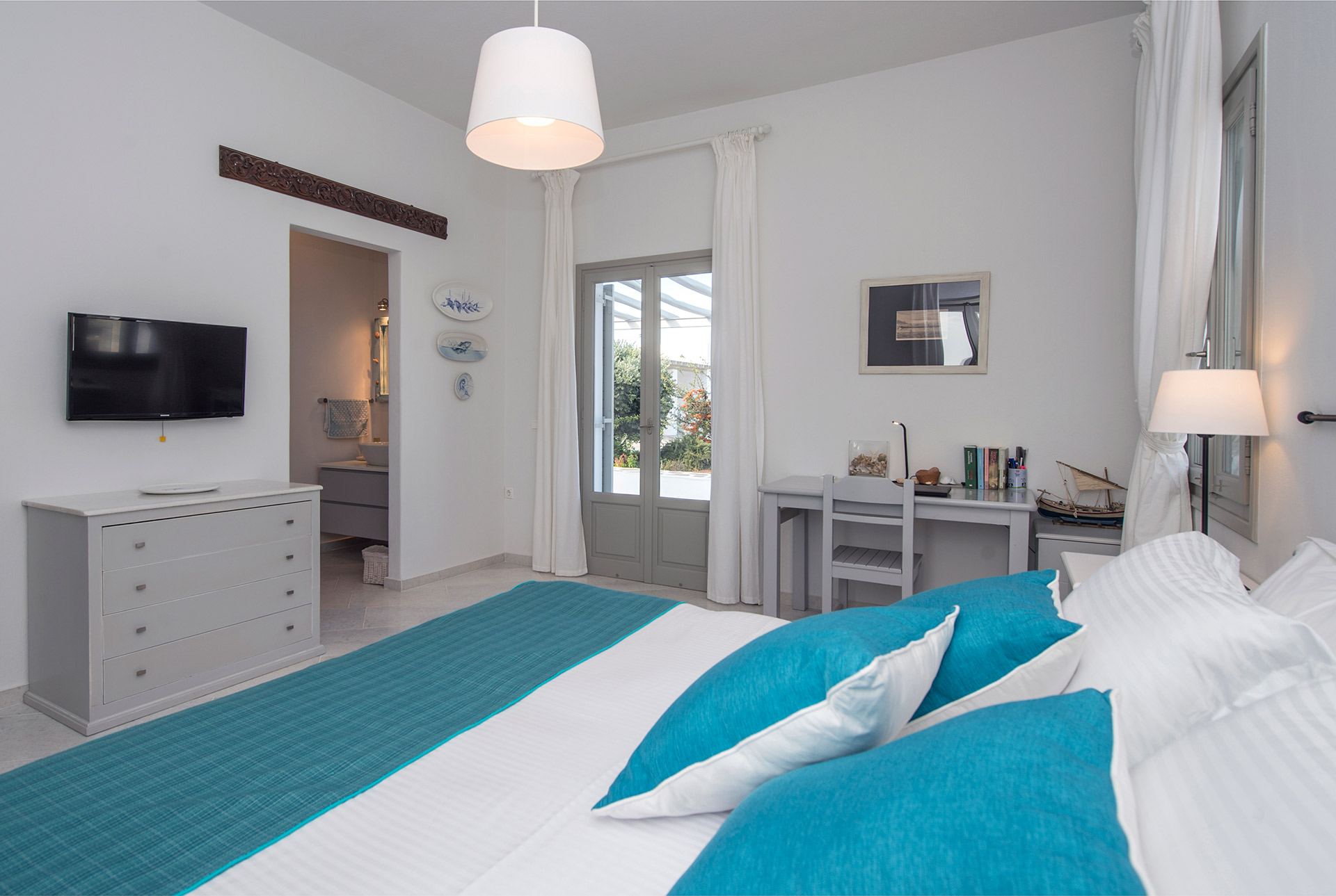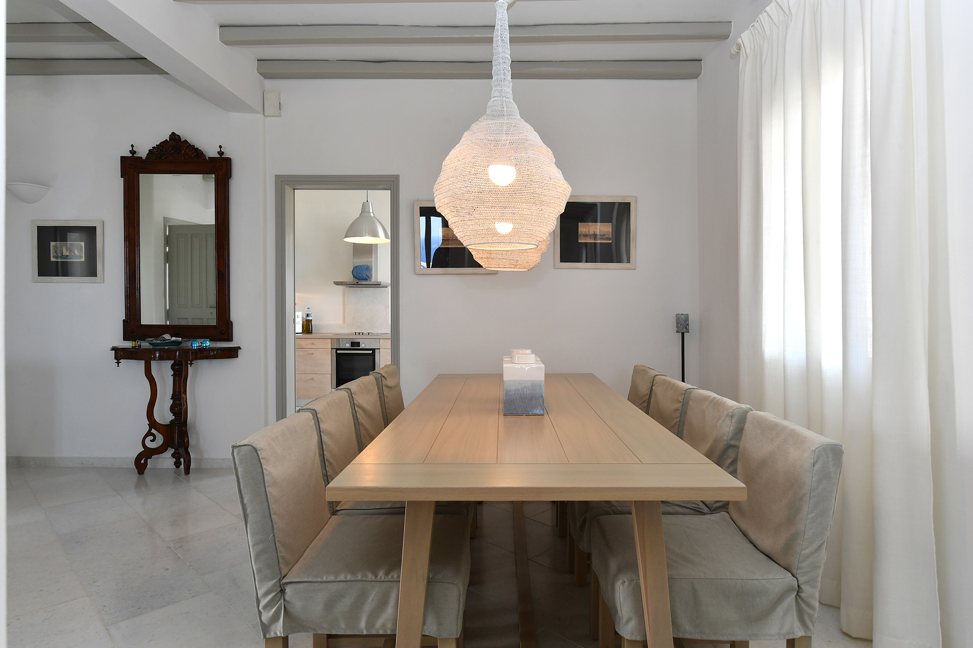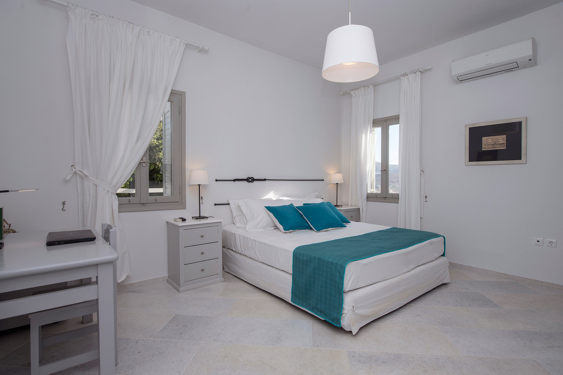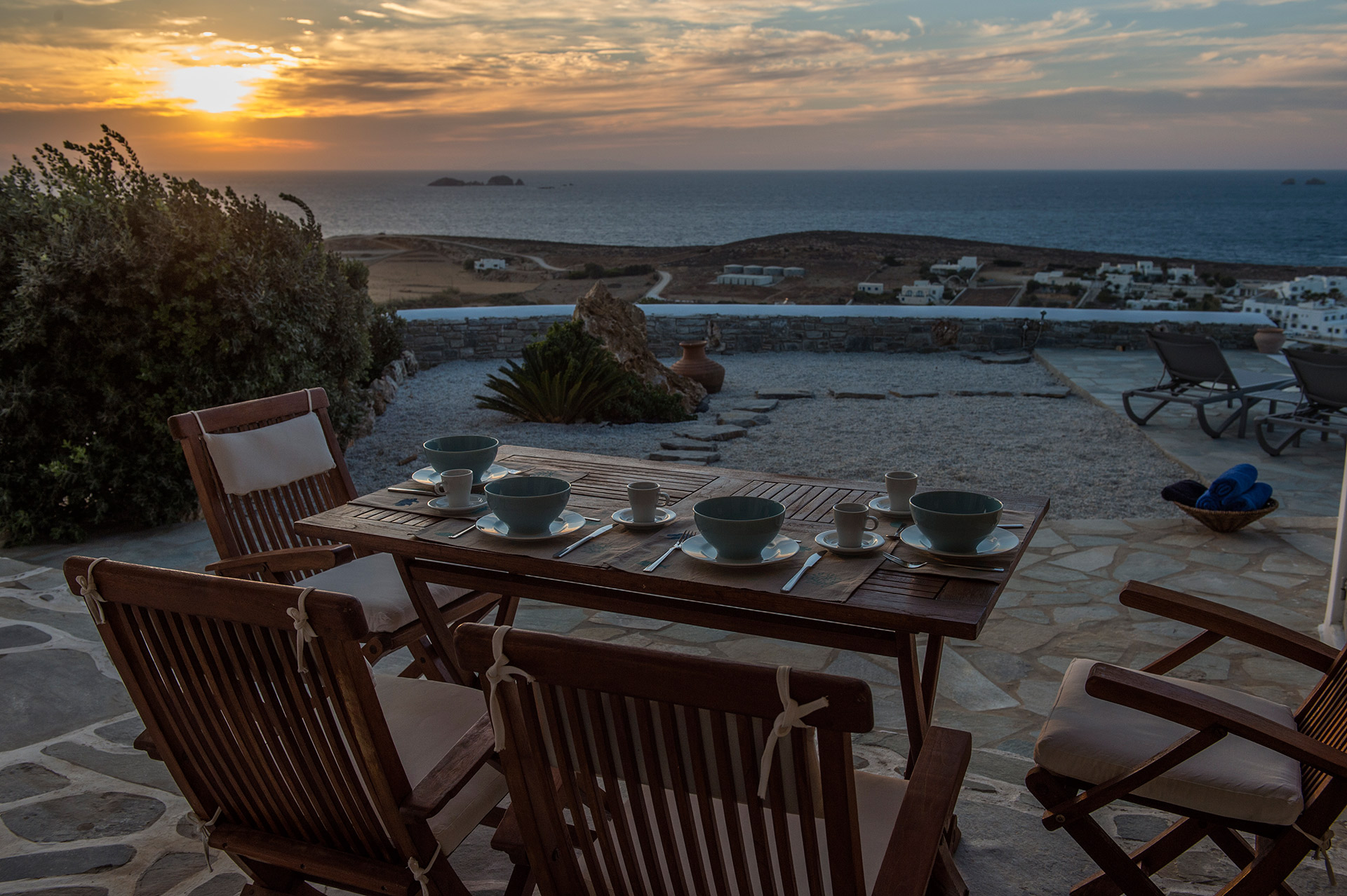 The villa has a superb view over the bay of Parikia and the countryside at the back of the house which can be admired from the outdoor terraces arranged for relaxation or for meals. You will just have to go down the hill to the beach which is only 1 km from the villa.