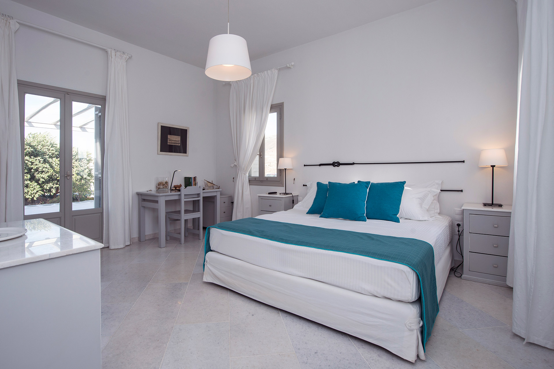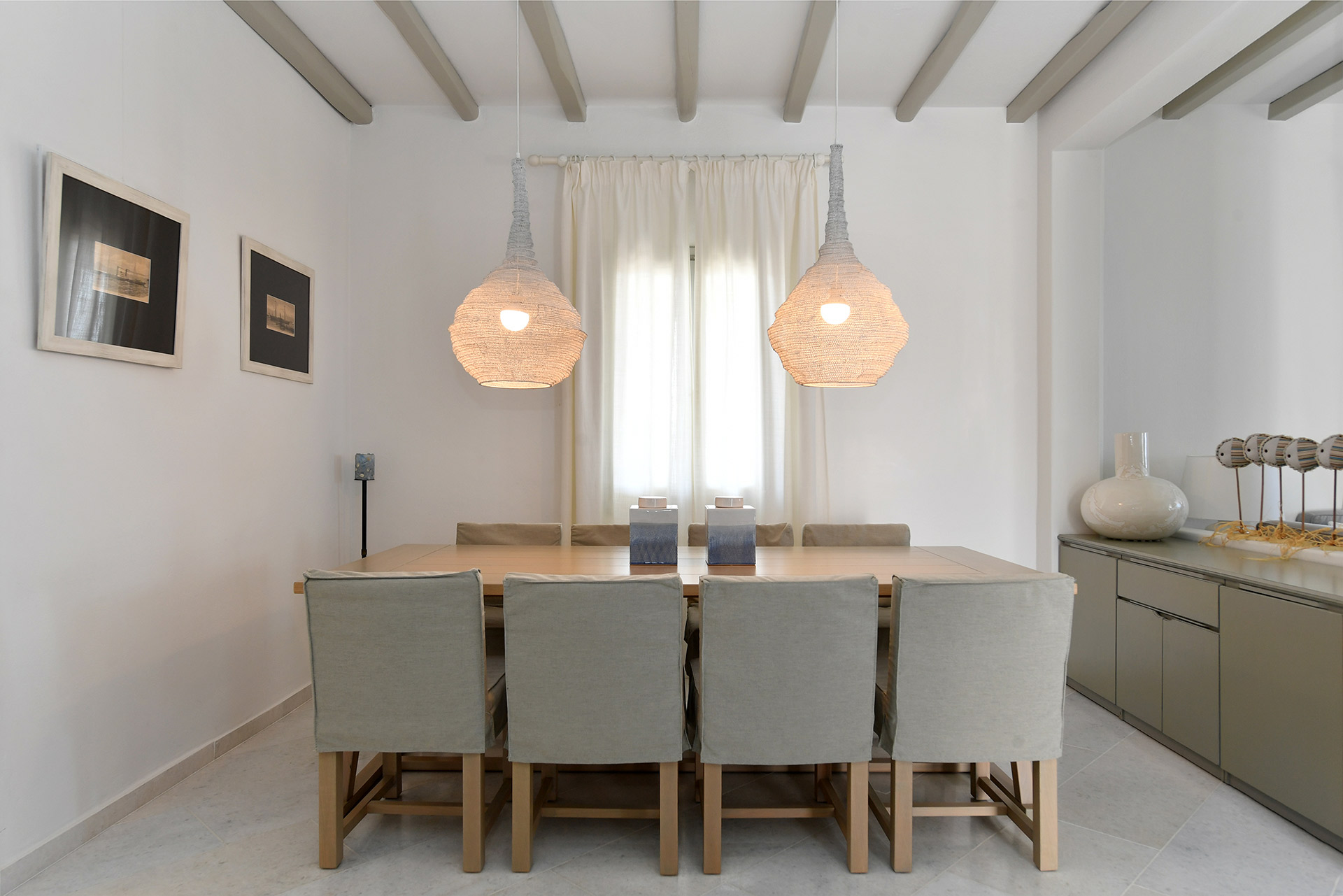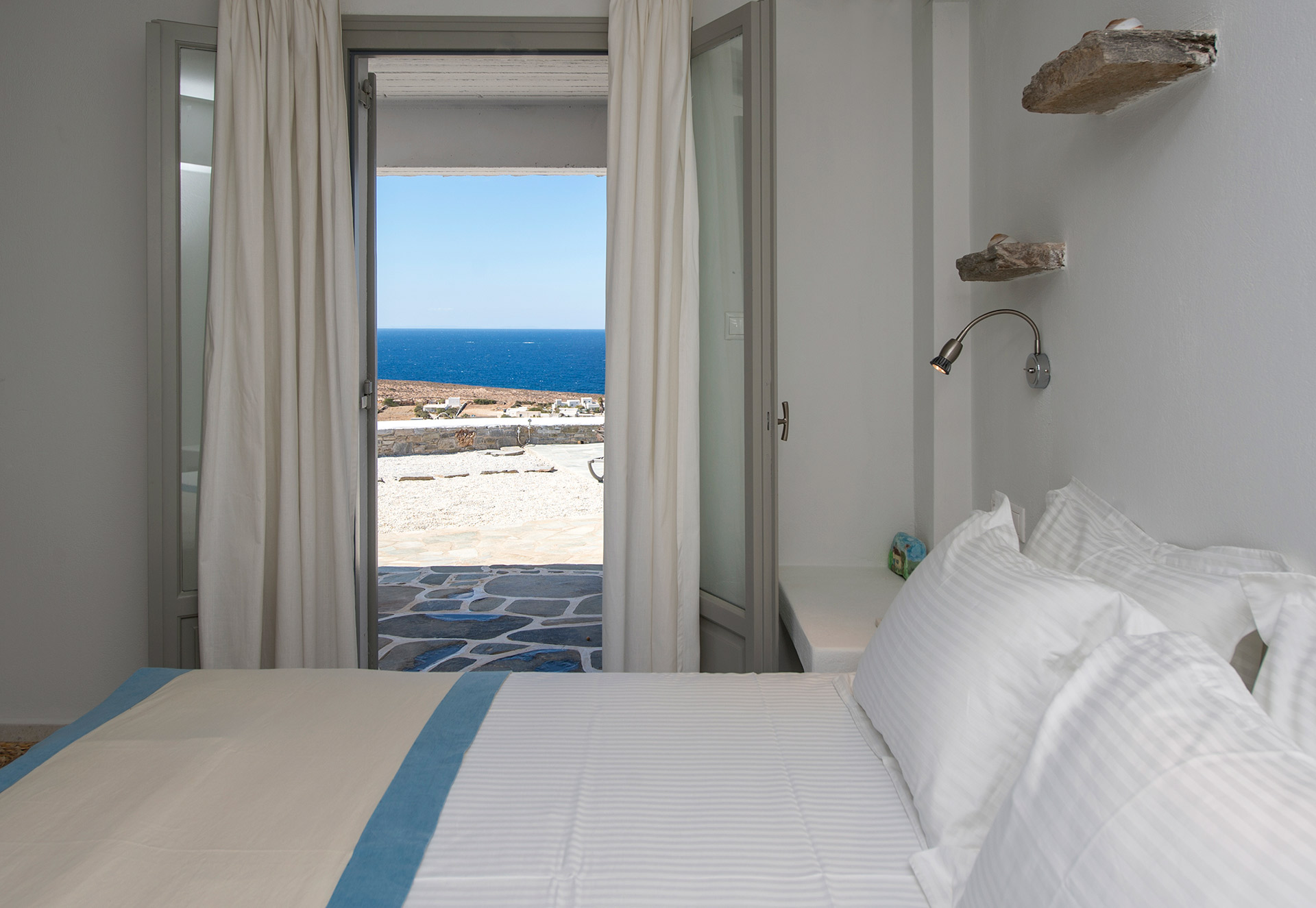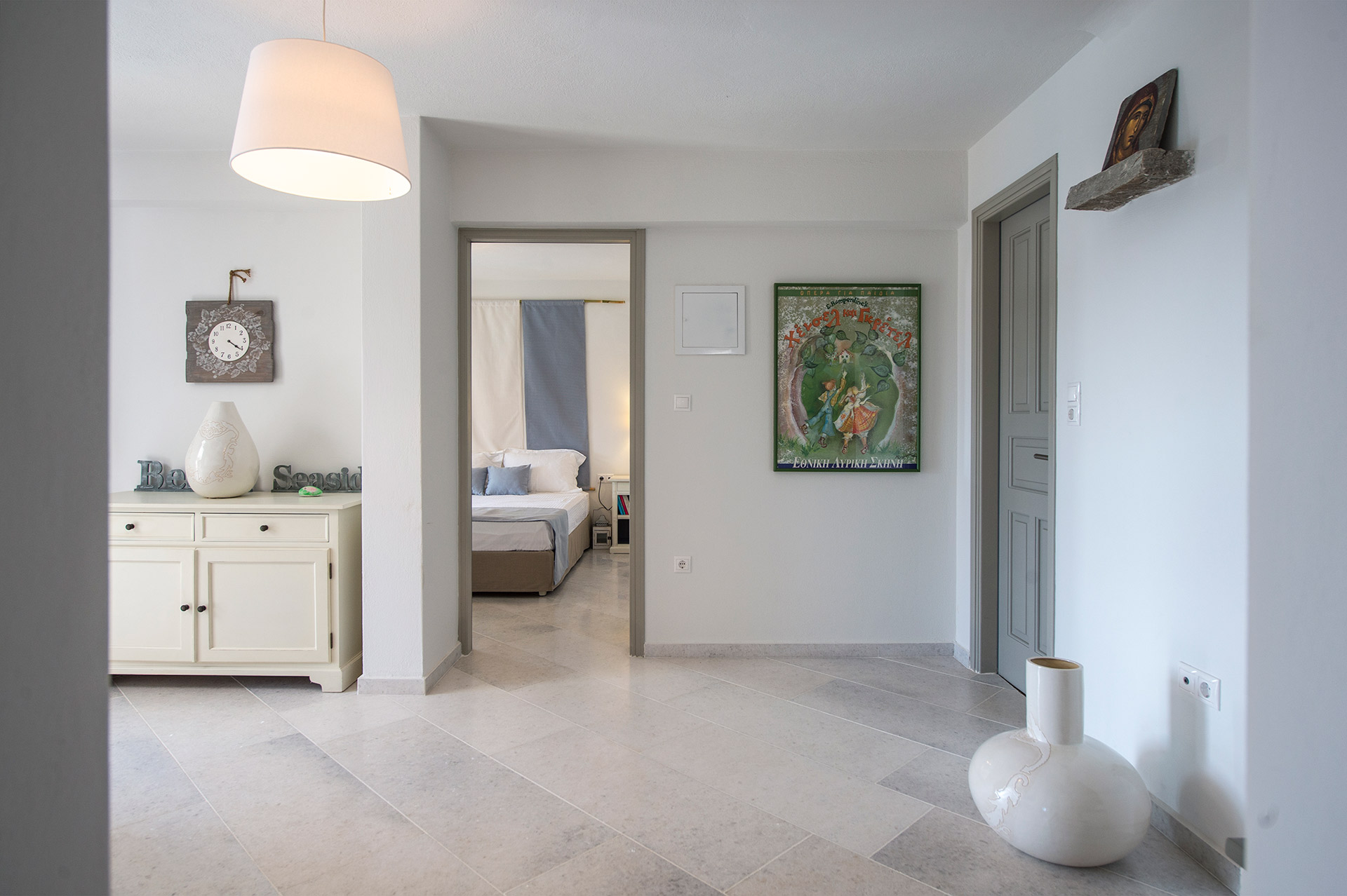 The villa has a superb view over the bay of Parikia and the countryside at the back of the house which can be admired from the outdoor terraces arranged for relaxation or for meals. You will just have to go down the hill to the beach which is only 1 km from the villa.
