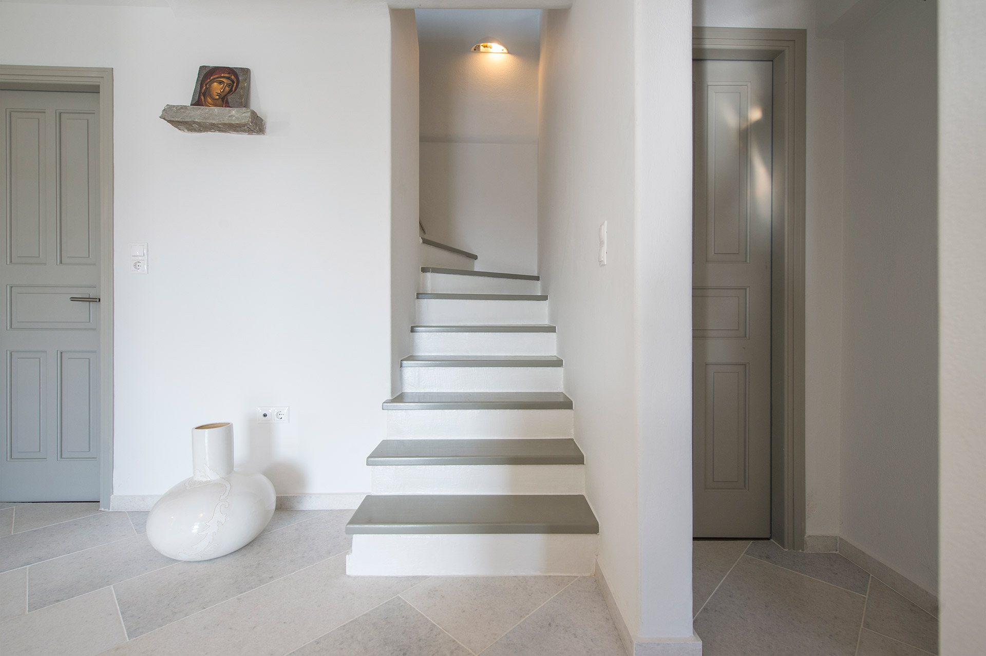 It has a 330 m2 furnished terrace ideal for eating out and enjoying the magnificent views of the Aegean Sea, Parikia Bay and the beautiful sunsets. The villa has a beautiful swimming pool (size 11 m x 5 m) accessible by 5 steps and 380m2 of private spaces around the pool to enjoy moments of relaxation.