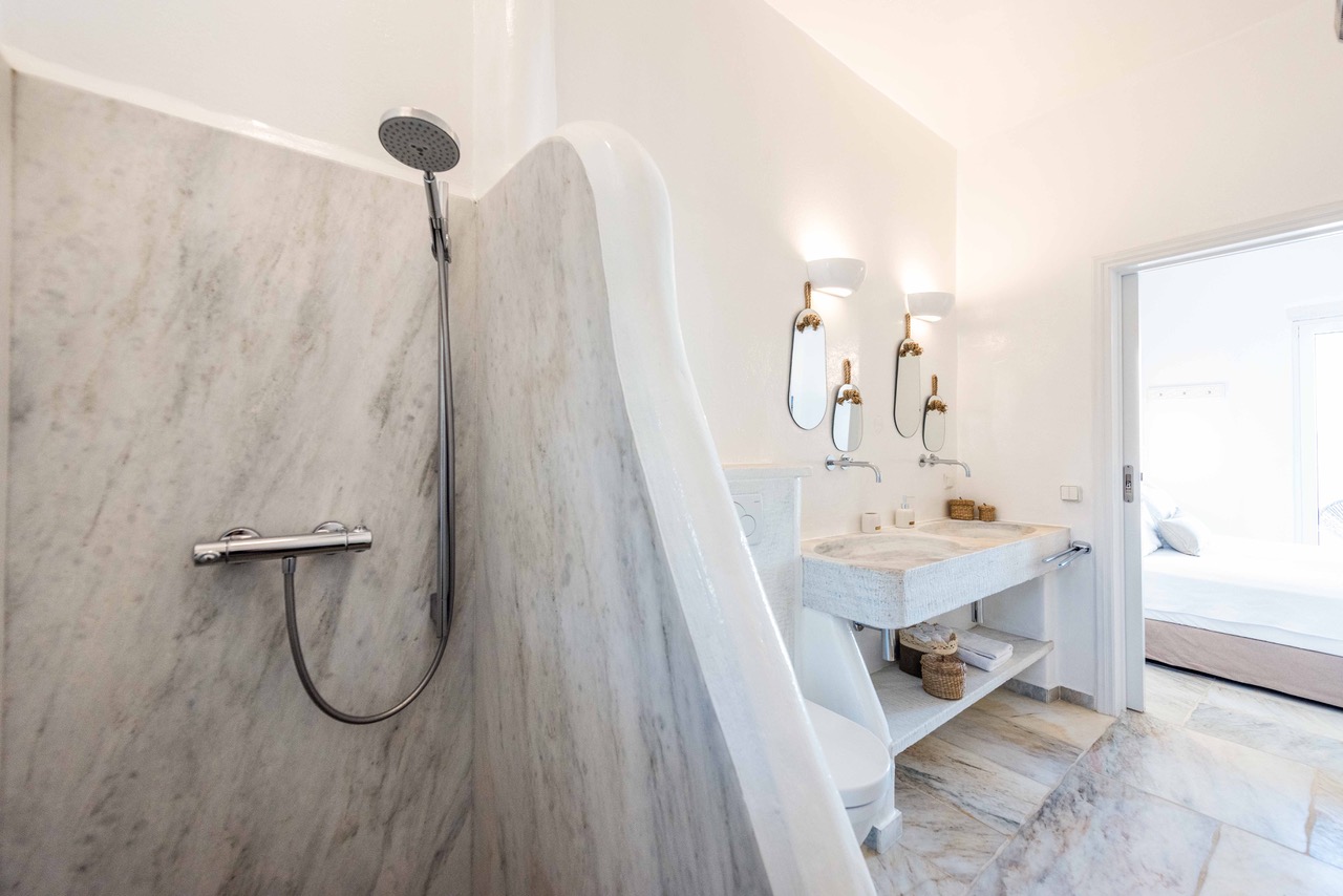 Large and beautiful villa offering impressive views of the sea and the islands of Mykonos, Syros and Paros. Property nestled in a peaceful environment from which you can enjoy all the charm and beauty of the island. It will be the perfect place to host your summer dinners with the Aegean Sea in the background. After a refreshing dip in the beautiful infinity pool (4m x 8m), you can go to taste the delicious dishes of the region. Indeed, Tinos is rich in local products and its cuisine is very different from the other islands of the Cyclades.You will have the opportunity to taste for example the custarsd-filled pastry called "galaktomboureko" or even dishes composed of artichokes of a very high-quality which make the island feel really proud.