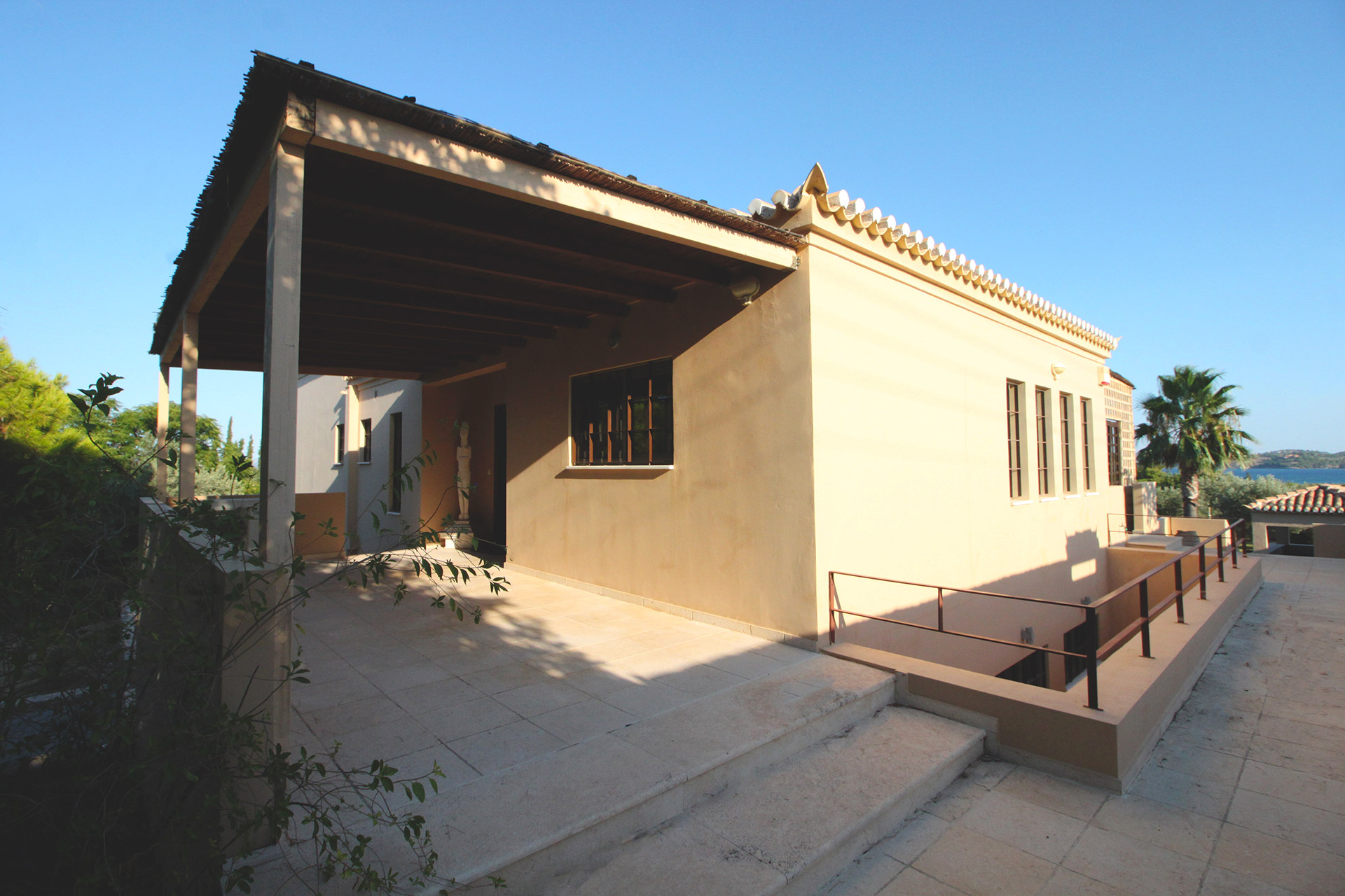 On the hillside, on a ground of 7000 sqm and approx 200 meters from a sand beach ,this beautiful villa is located on one of the nicest Peloponnes prestigious sea coasts, nearby Porto Heli.