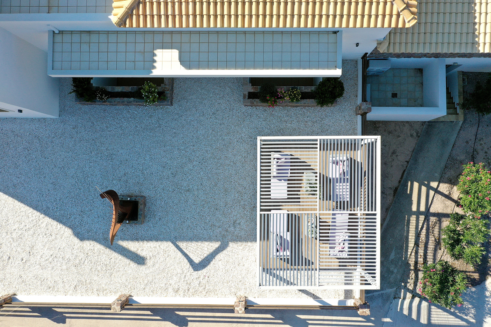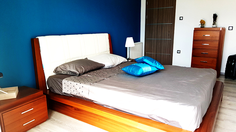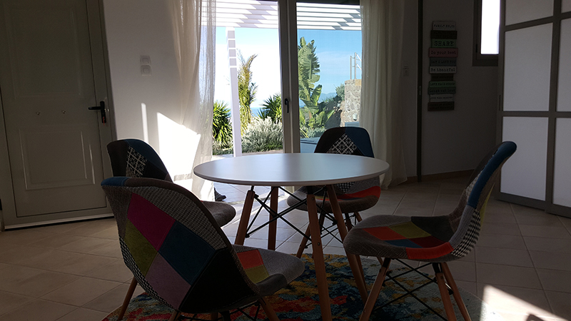 Double bedroom with sea view. Separate entrance. Large terrace with sunbeds and pergola. and Ensuite bathroom