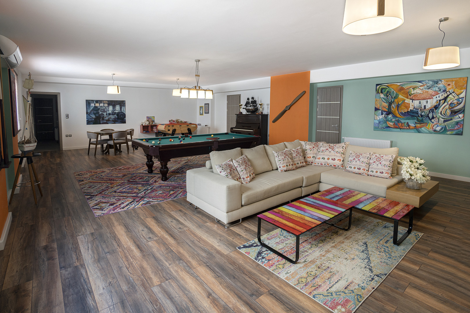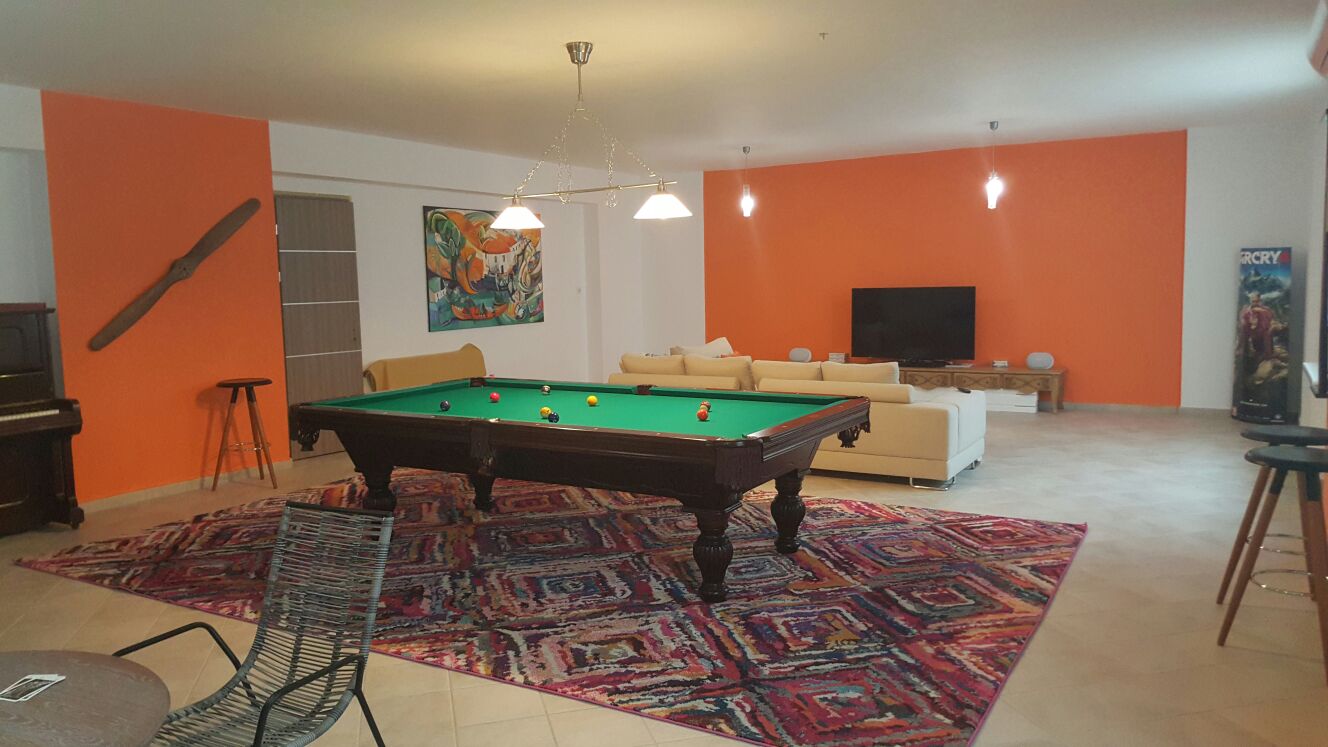 Play Room with pool table, table football, television, games console