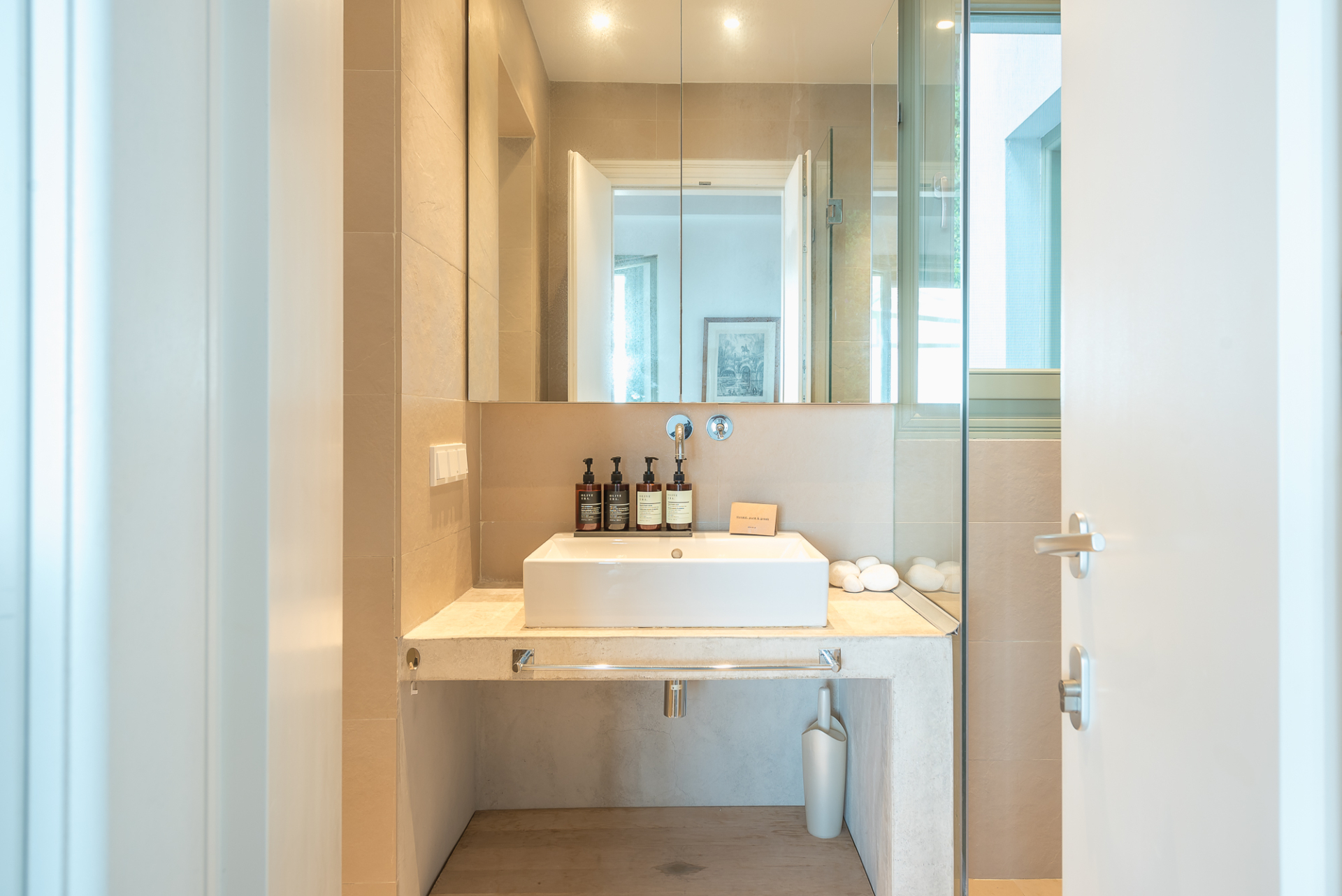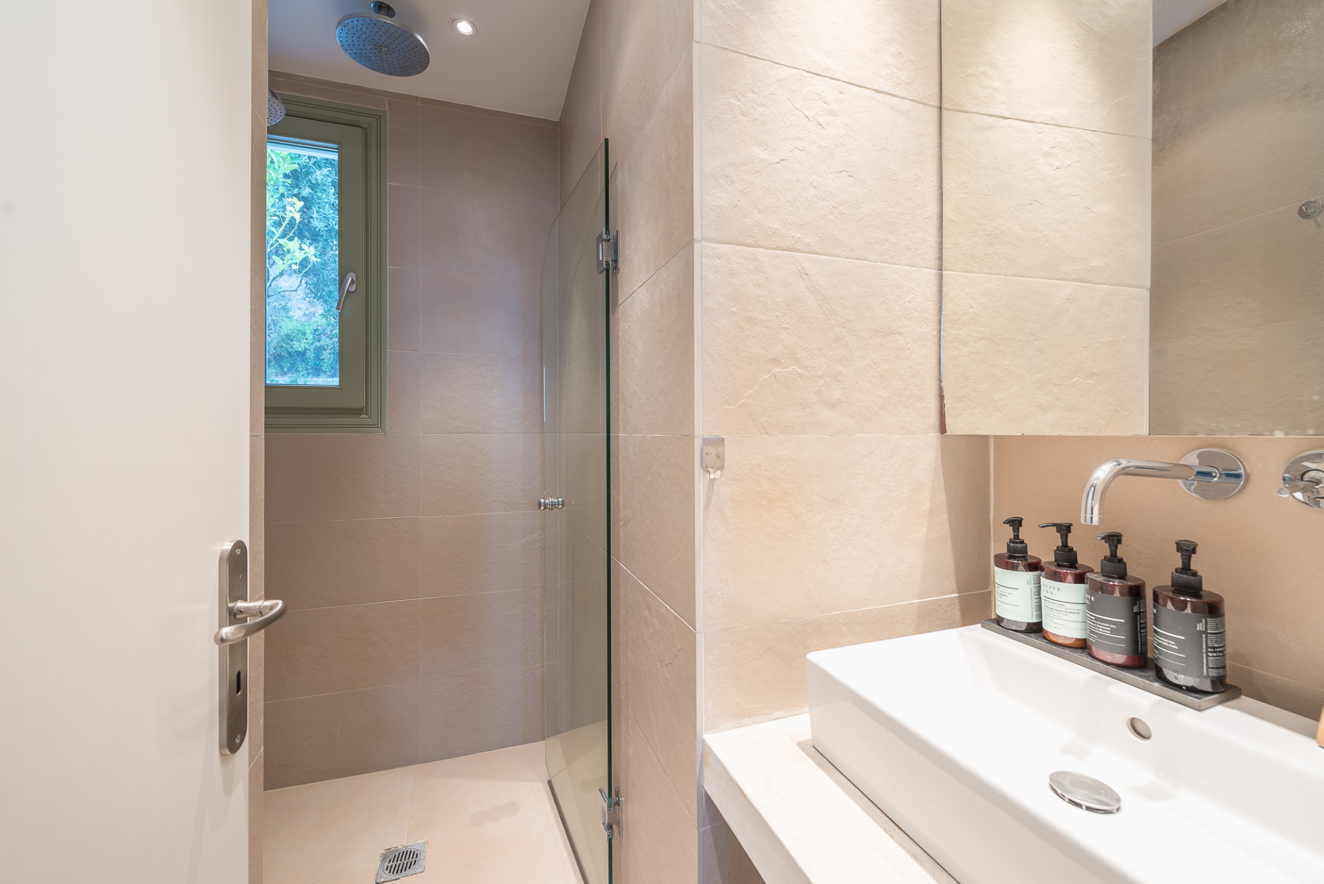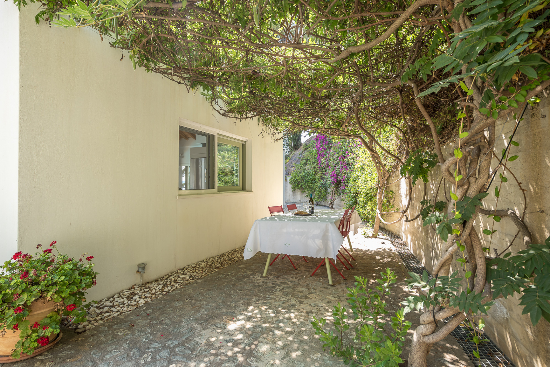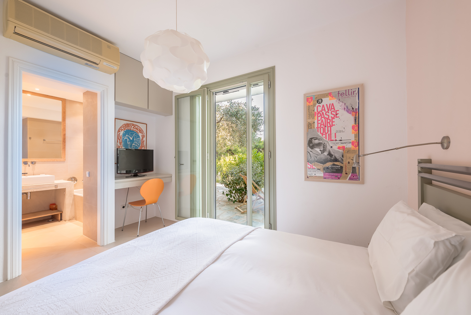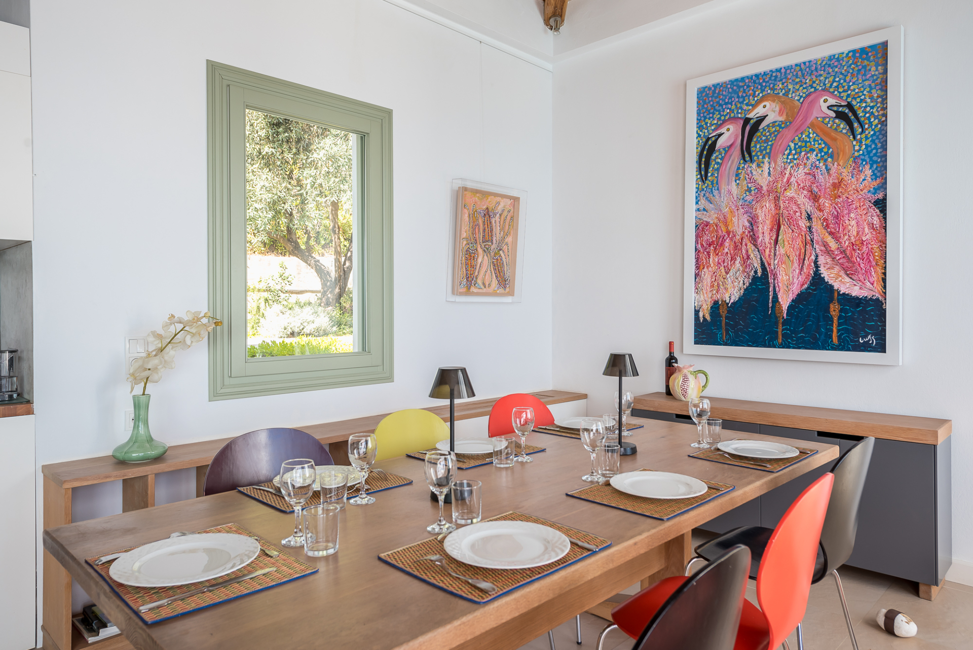 Built in 2012, this nice property is located within an extraordinary natural environment, in the heart of a park of 15000m2. The property has almost a private access to the little cove of Mourtia only reachable by boat. This little cove is here under the infinity swimming pool at 30 meter from the sea.