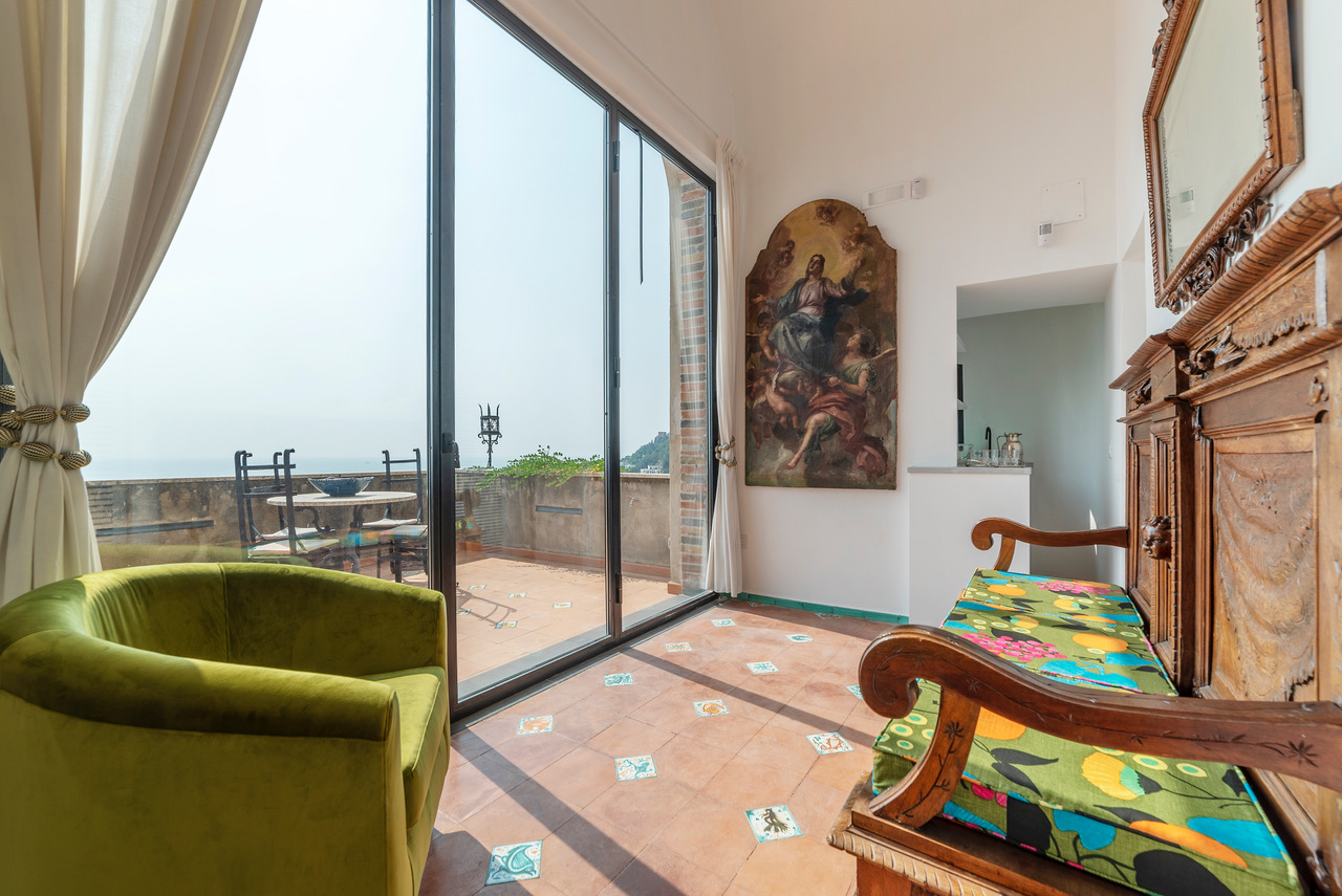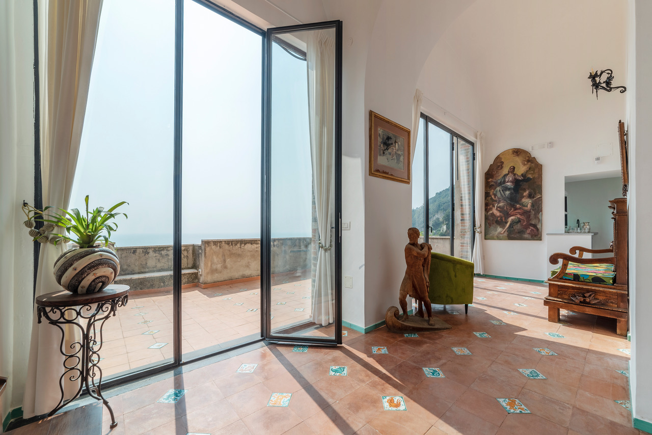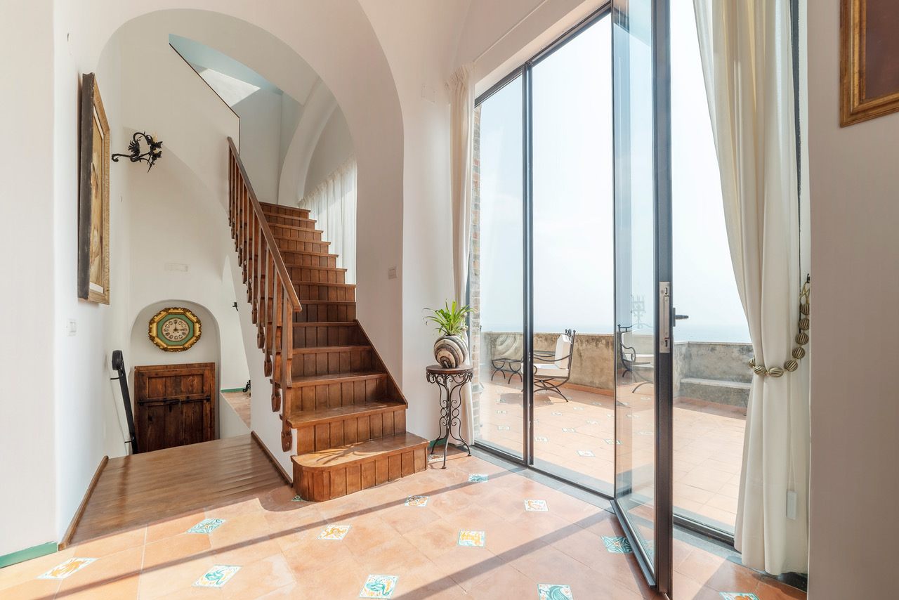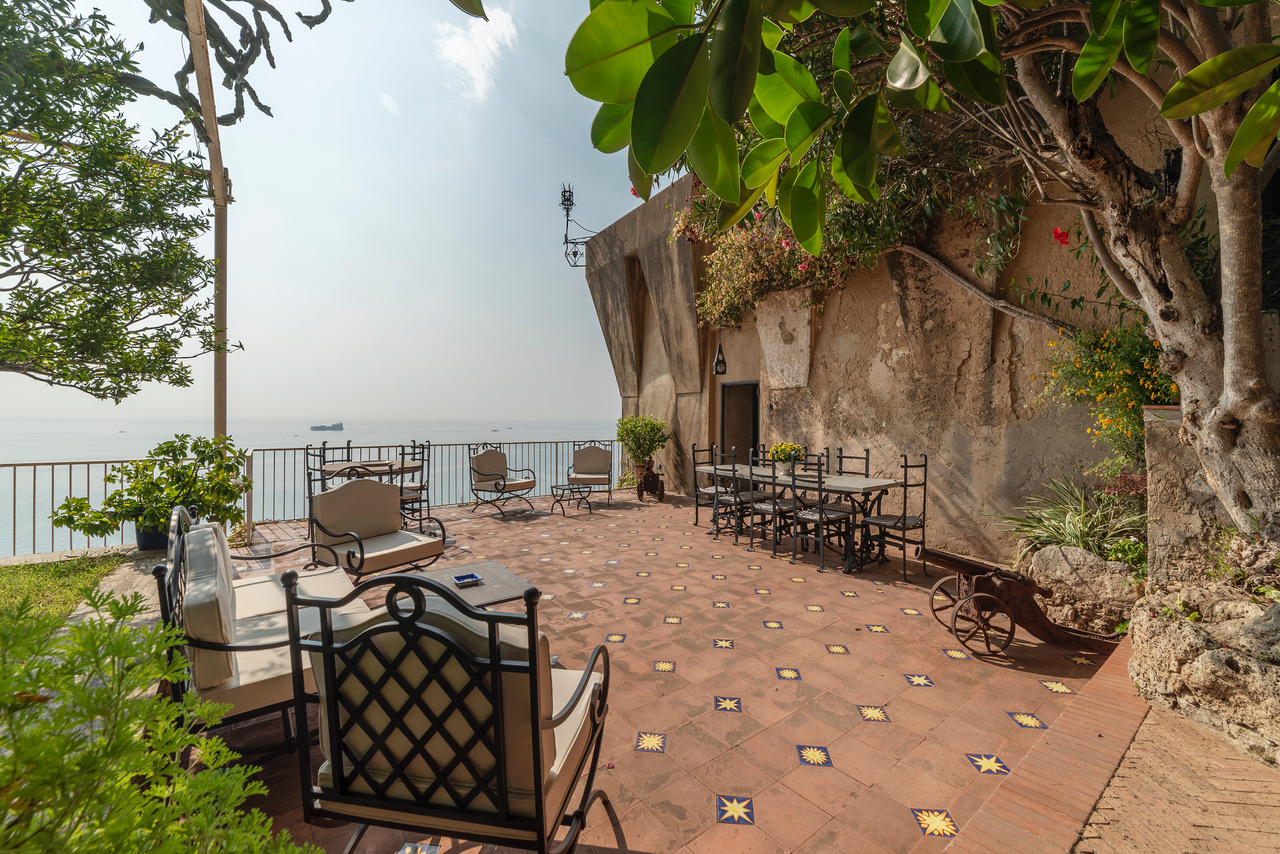 Let yourself be tempted by this splendid villa with private pool and view of the Mediterranean Sea. The property, perched on a hill on the Amalfi Coast, is an ancient Saracen tower with a majestic garden and multiple terraces. You can enjoy the breathtaking view while sunbathing or enjoying a lemonade with your feet in the water. This charming house combines the ancient and the modern to offer you elegant and bright rooms. You will be able to appreciate the beauty of the changing landscape throughout the day thanks to the large bay windows that surround the villa. Its spacious living spaces will allow you to enjoy warm moments in the company of your loved ones. If you like solitude, do not hesitate to relax on one of the many sofas available in this superb villa.