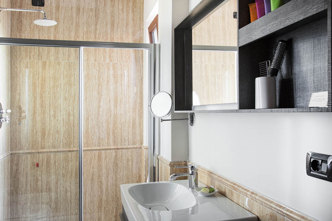 Double bedroom with satellite, internet access, air conditioning, television, cable, safe and Ensuite bathroom with shower, hair dryer