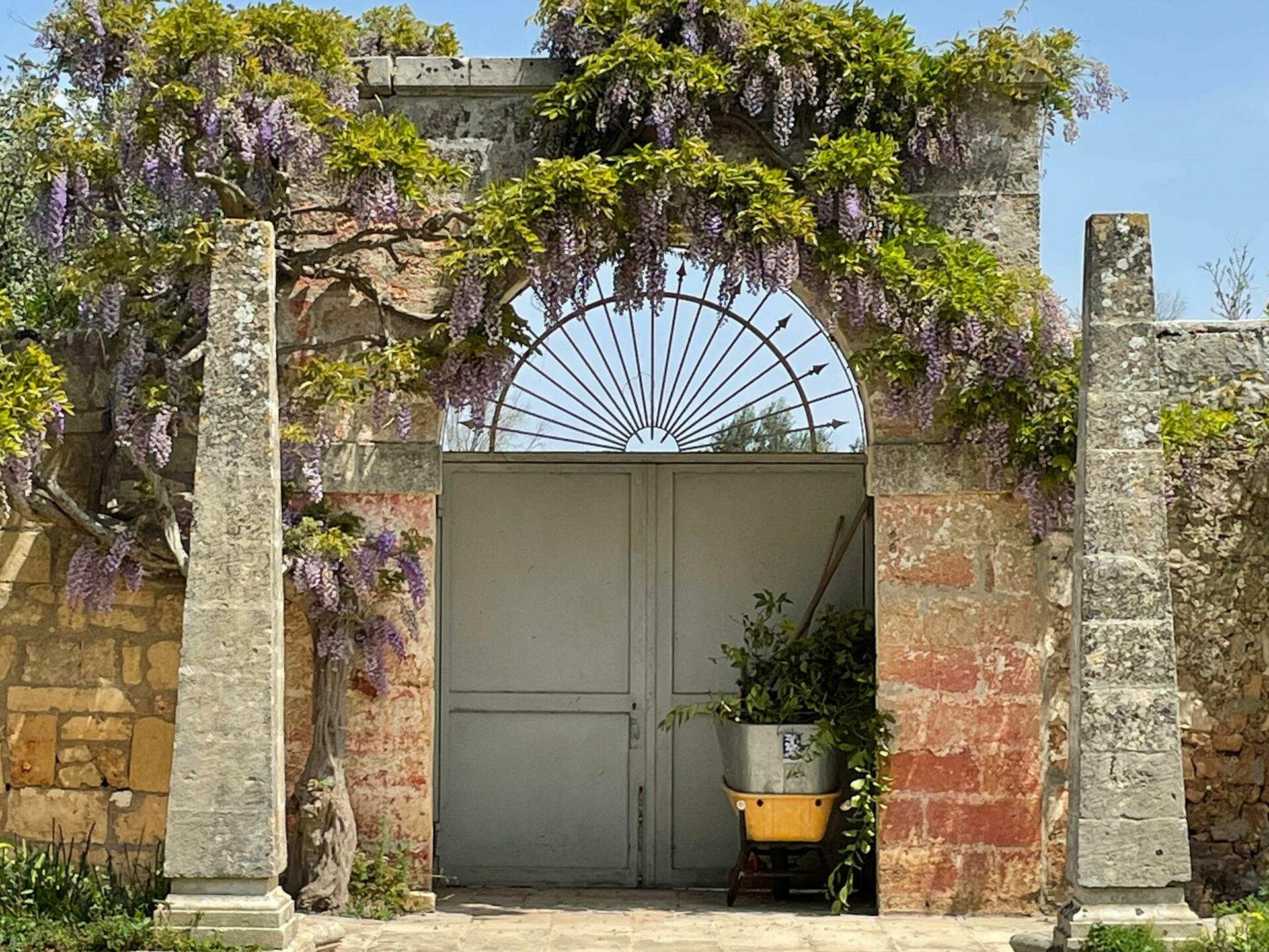 Nestled in the unspoilt countryside of Salento, this Masseria offers an exceptional setting where authenticity and elegance meet. A former stately home that has been carefully restored, it combines rural charm with modern comfort. With accommodation for sixteen people in eight bedrooms, it is ideal for stays with family or groups of friends, in a warm and refined atmosphere. Its star-shaped vaults, contemporary frescoes and vast garden give this place a unique identity, where privacy and serenity reign supreme. Outside, the villa opens onto a spacious park, dotted with paths lined with vegetation and flower-covered colonnades. The garden, adorned with a majestic magnolia tree, invites you to stroll or relax in the shade of the wisteria. The 23-metre swimming pool, in the heart of the lawn, offers a privileged relaxation area, ideal for cooling off under the Salento sun. Upstairs, a panoramic terrace accessible by a stone staircase offers a soothing view of the estate, perfect for enjoying an aperitif at sunset. The interior of the Masseria reflects both the charm of its history and the comfort of a contemporary residence.