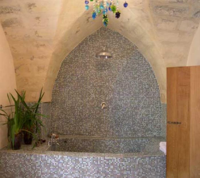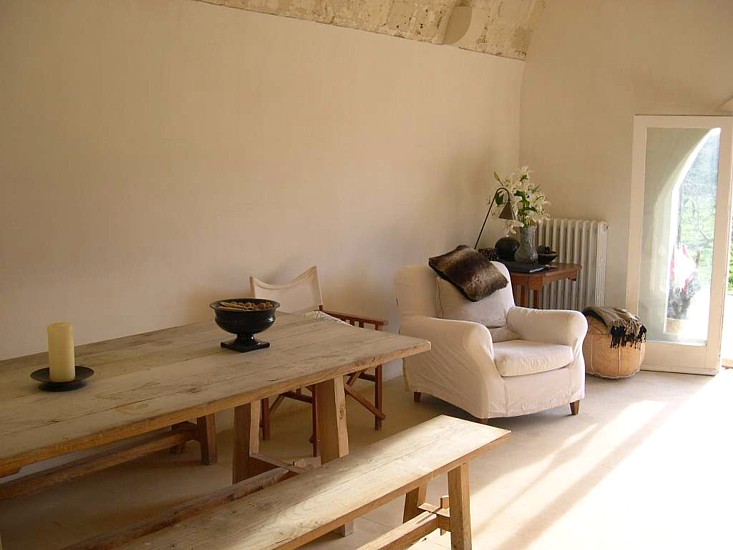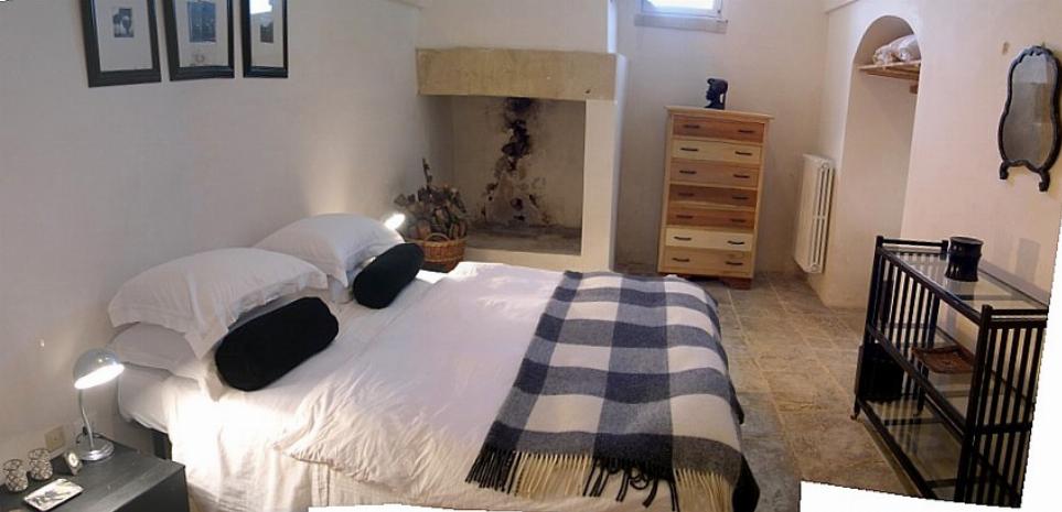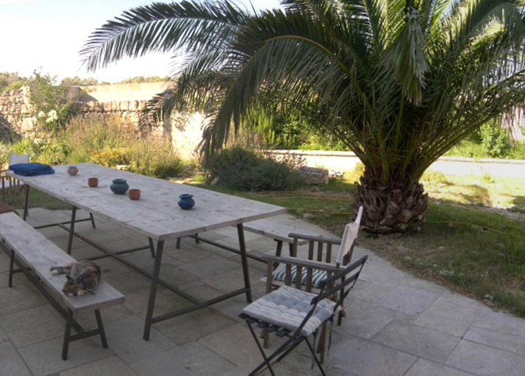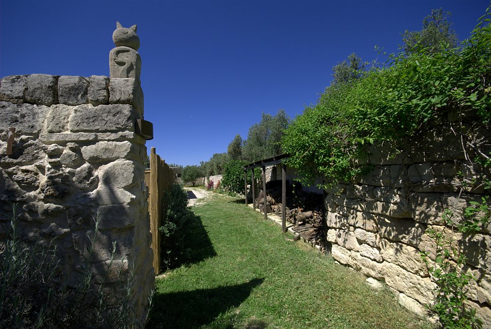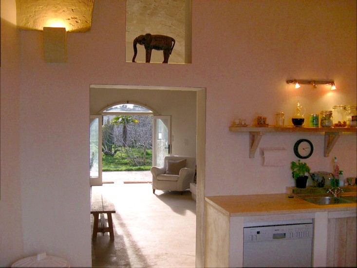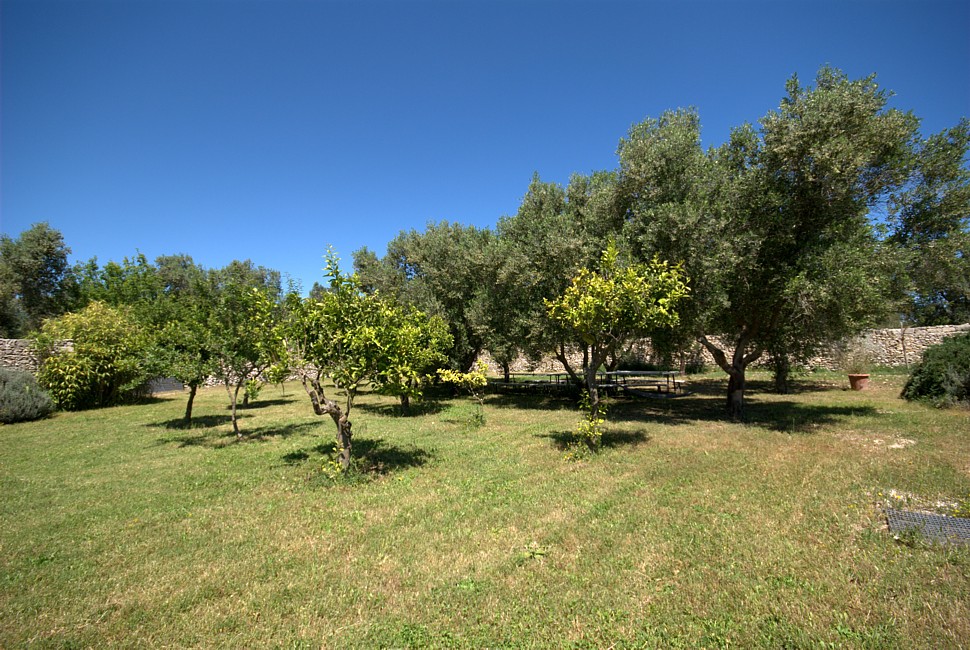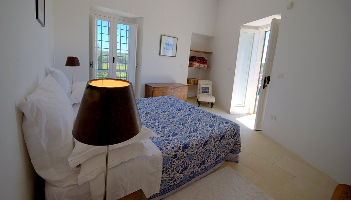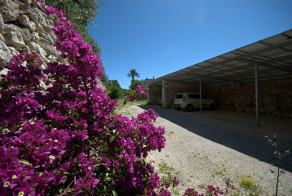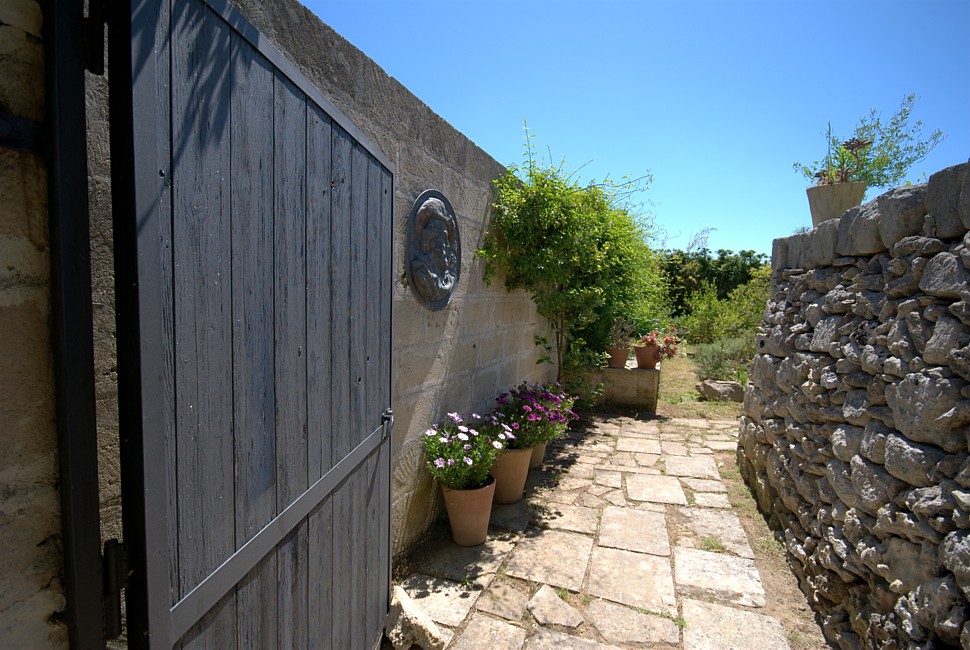 Typical “masseria” of the Salento area, in the surroundings of Otranto, and only 2 km from the sea. The house is set in a 20 000 sqm land with white dry-stone walls that are peculiar to the area. The outside is composed with a big garden and fruit trees, garden furniture and lounge chairs, a heated pool with showers, and a sheltered patio with wooden table and chairs, a barbeque and a summer kitchen. The villa has been restored with lots of elegance and soberness, using the local Lecce stone, the “pietra Leccese”, but also antics and artifacts.