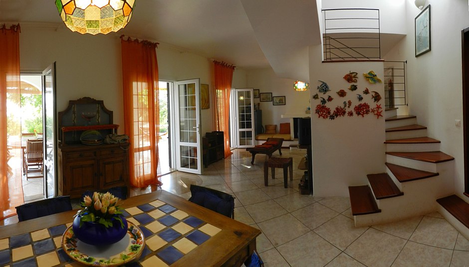 A charming villa located on an elevated position with one hectare of grounds with olive trees, maritime pines and fruit trees.The property enjoys a superb view of the sea and of the sorrounding countryside. You will certainly enjoy the various outdoor areas where you can spend long sunny days, in the garden or at the swimming pool. During the eveniing, rendez-vous at the terrace for an al fresco dining all together.
