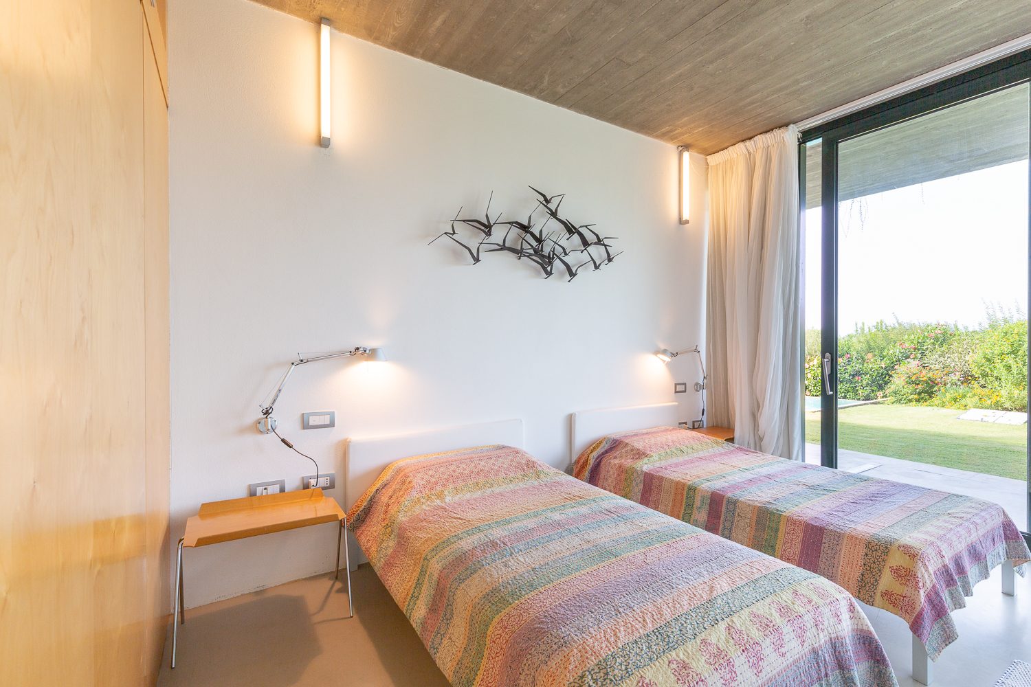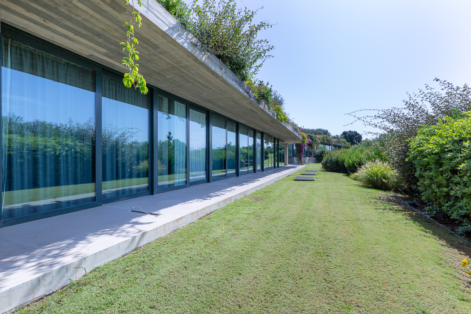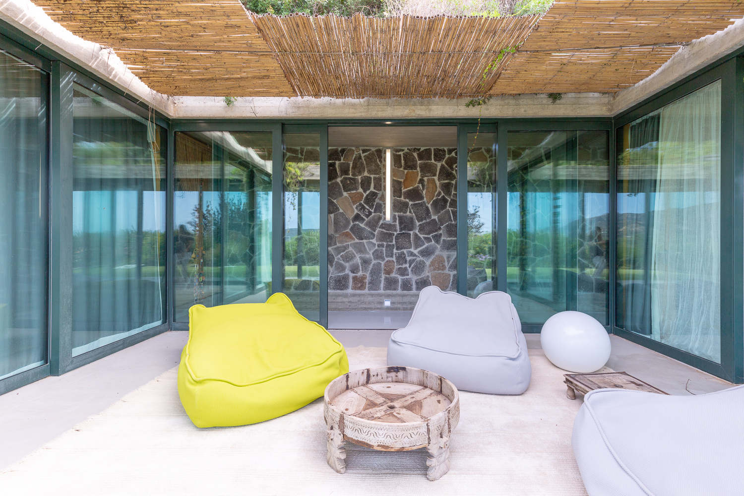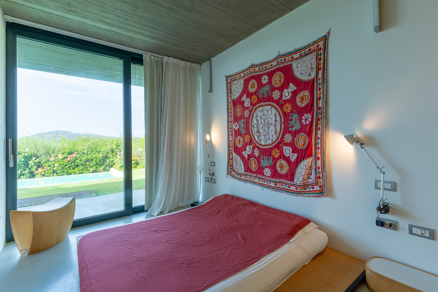 In part A you will find the kitchen and the living room, as well as 4 double bedrooms with bathrooms. In part B, 1 double bedroom, a kitchen and a living room with sea view. For part C, there are 4 other double bedrooms with a kitchen. All bedrooms have en-suite bathrooms and 8 of 9 bedrooms have direct terrace access. Perfect to accommodate up to 18 people, all its spaces are air-conditioned and offer maximum comfort for your holidays. Very modern and design, the stone of the walls contrasts with the interior and brings character to the rooms of the house. Very bright with its large openings, it has a very pleasant interior-exterior continuity. In the garden, the 14m x 4m swimming pool is arranged along the house and is decorated with a lounge area to enjoy the sun or share a moment of conviviality in the evening. The superb view of the mountain is appreciable on the entire terrace which runs along the house. Very close to the sea, you can reach the beach on foot since it is only 400 m from the villa. You will find all the shops you need for your stay nearby. This beautiful luxury villa is also very close to golf courses. At 3 min by car, you will find the Chia golf sporting club. Immersed in a splendid setting, this site is a paradise for golfers. The Is Molas golf club is 20 minutes away by car, and has a total of 27 holes. If you rather want to bask on the sand, Capana Dune Beach is quickly reachable (4 min by car). You can choose between rest or Wind Surf. Boat trips are also possible and offer a unique panorama of Sardinia.