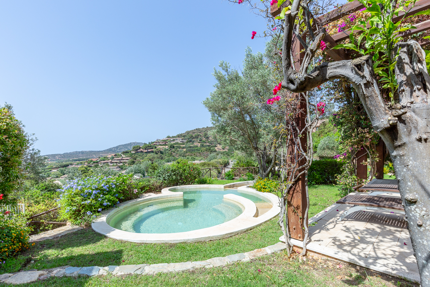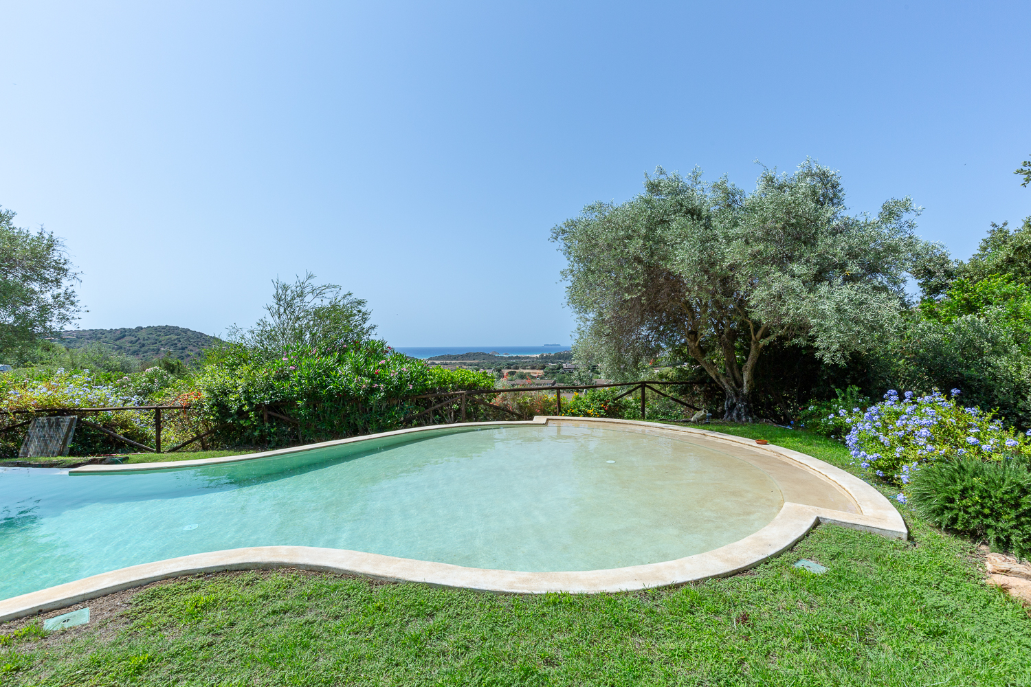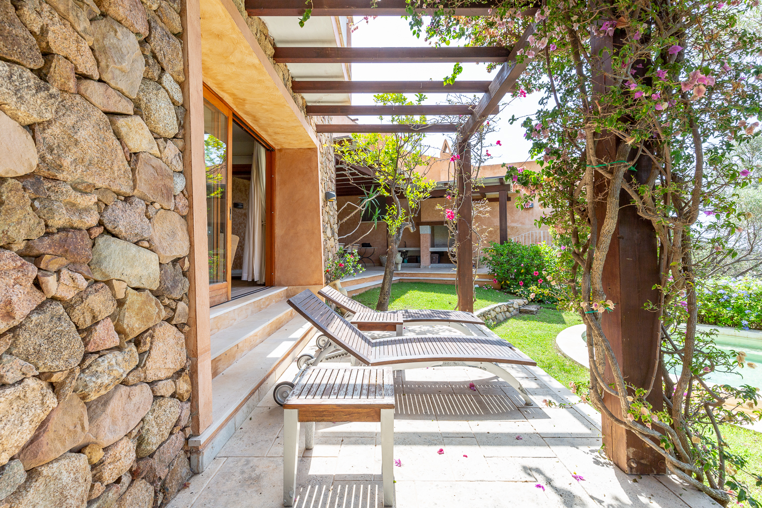 Discover this wonderful property located in Chia, in the south of Sardinia. Ideal for a holiday in the sunny south of Italy, this elegant villa offers breathtaking sea views from every room and is close to some of the most beautiful sandy beaches with crystal-clear waters. The large garden, with its lush green lawn embellished with Mediterranean plants, surrounds the 17-metre swimming pool like a jewel case. The various terraces and shaded areas allow you to enjoy meals al fresco or simply admire the panoramic view of the big blue. With its vast outdoor spaces, you can take full advantage of the sea air and the Italian sunshine, and to the sound of the water flowing from the waterfall, let yourself be tempted by a far niente holiday. The layout of the villa is ideal for two families or several generations who wish to stay together while retaining a degree of privacy. The villa is divided into two wings connected by an internal corridor, with a total of five sea-view double bedrooms, each with its own private bathroom. The living areas are tastefully decorated, combining elegance and modernity, and benefit from natural light thanks to the large picture windows offering splendid views.