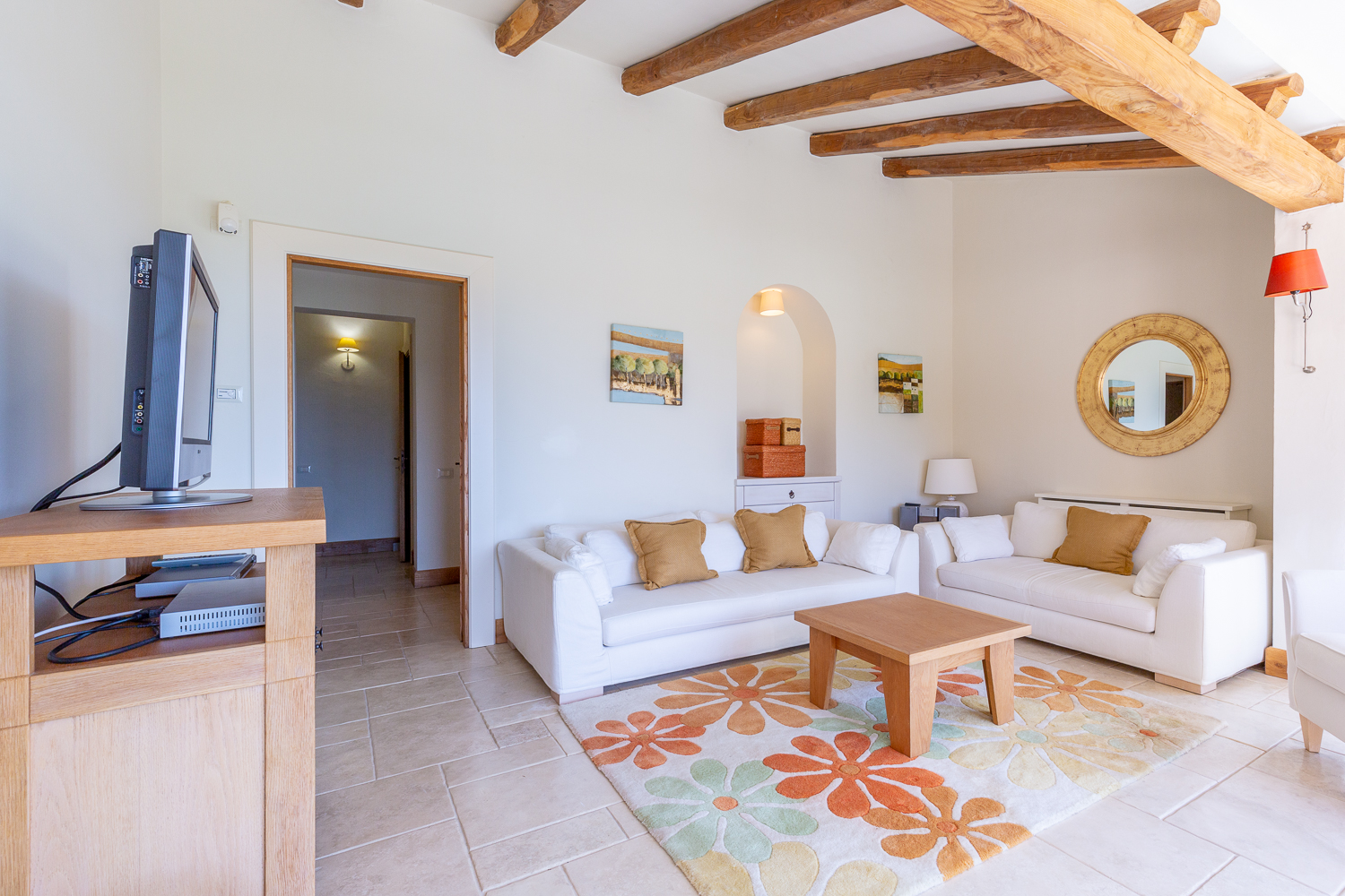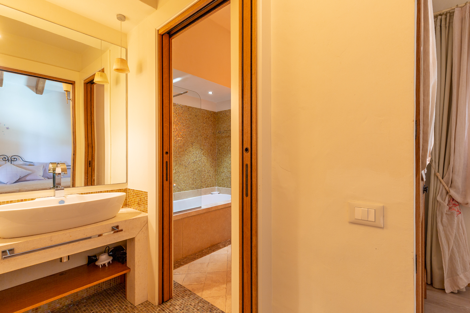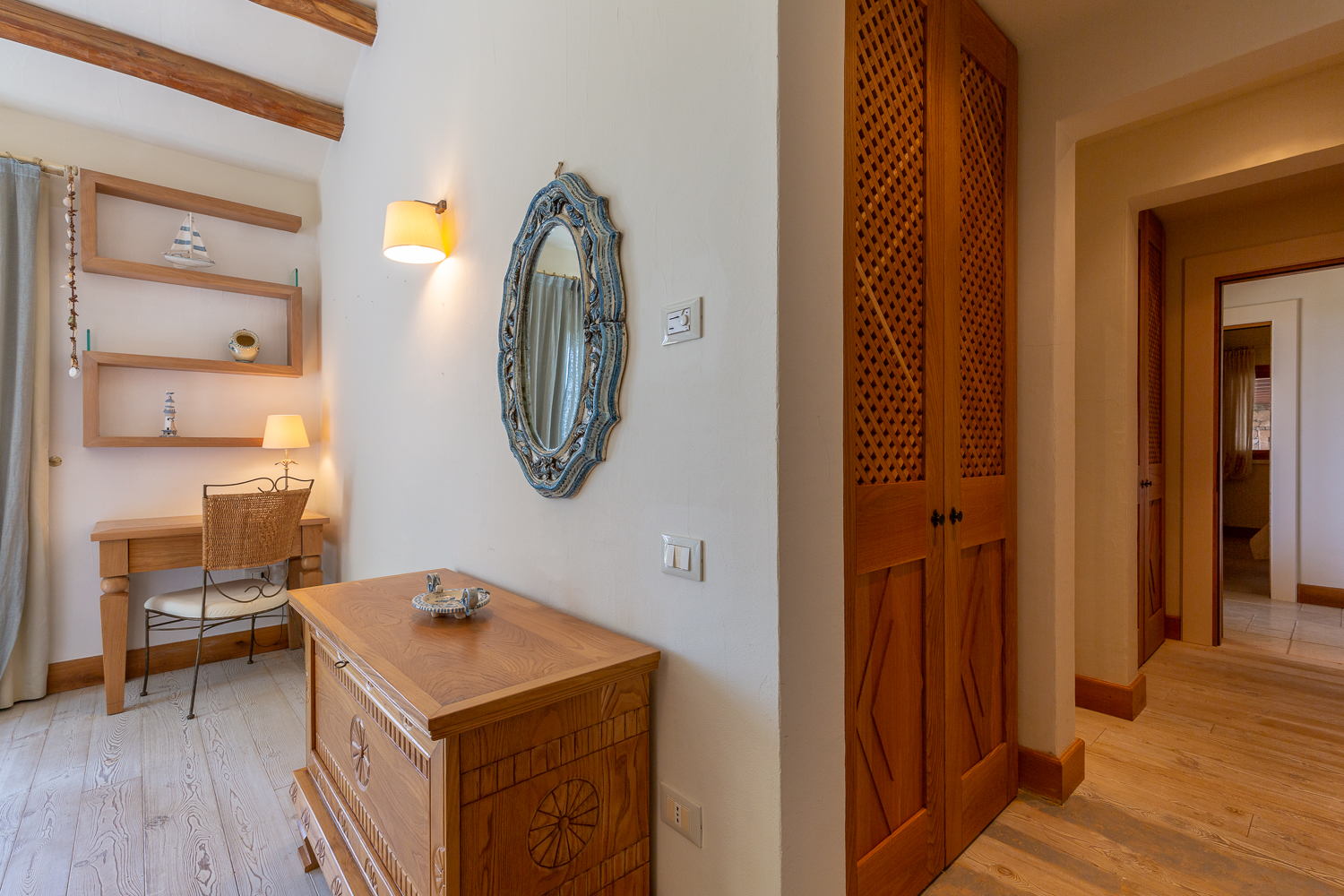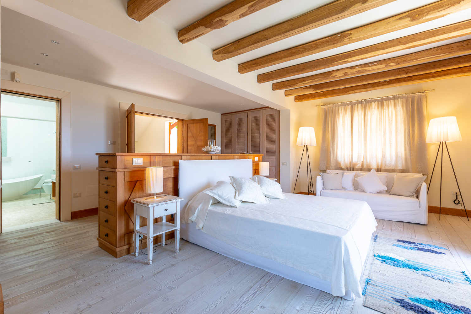 The southern region of Sardinia is rich in a variety of tourist activities. As well as the heavenly beaches of Chia, renowned for their golden sand and turquoise waters, nature lovers can explore the hiking trails of the Monte Arcosu nature park, home to the Sardinian deer. History buffs will love a visit to the archaeological site of Nora, an ancient Phoenician and Roman city, with its mosaics and seaside amphitheatre. The picturesque villages of Pula and Domus de Maria offer a chance to immerse yourself in the local culture, with their craft markets, traditional festivals and delicious Sardinian cuisine. For golf lovers, the 27-hole Is Molas course, one of the most prestigious in Italy, is nearby. Finally, the islands of Sant'Antioco and San Pietro, accessible by ferry, reveal wild and authentic landscapes, ideal for a day trip.By staying in this villa, you will enjoy a luxurious and comfortable setting to discover the treasures of southern Sardinia, between relaxation, nature and culture.