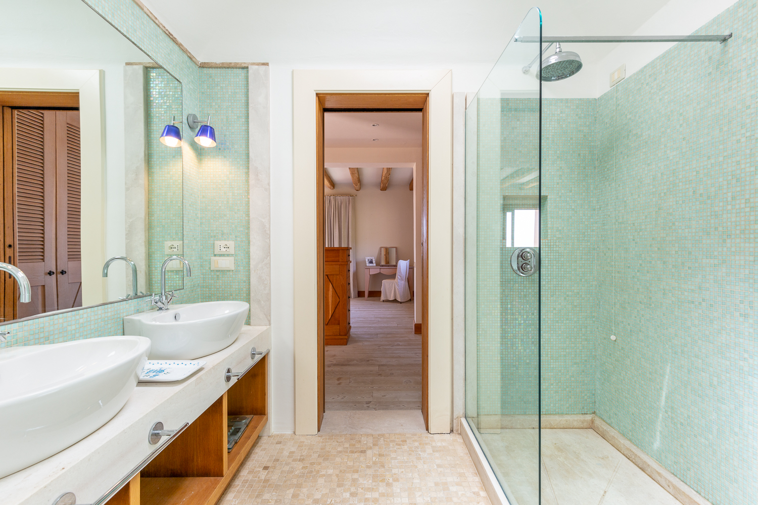 Twin bedroom with sea view and Ensuite bathroom with shower