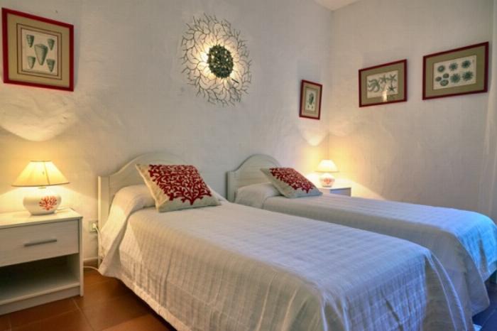 Twin bedroom convertible into a double bedroom with air conditioning, television, terrace access, sea view and Bathroom with shower