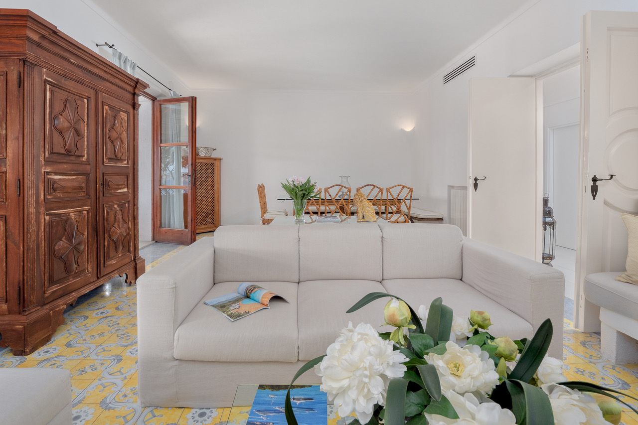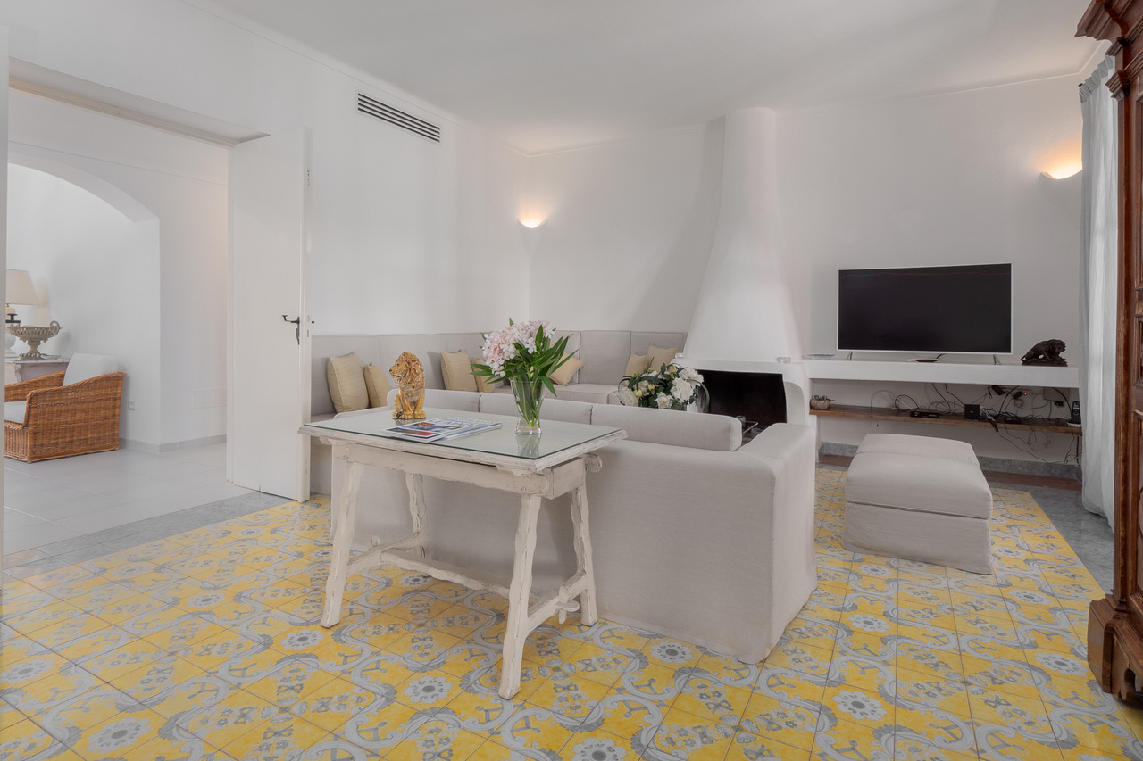 The interior is family-friendly and cozy. The decoration of the living room is sober but enhanced by touches of color thus recalling the contrast found around the house.