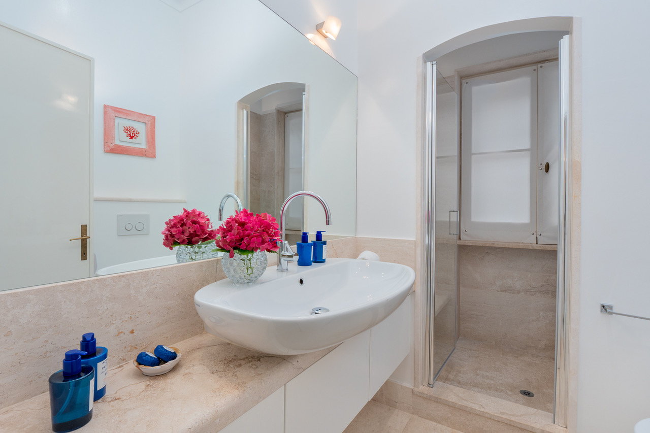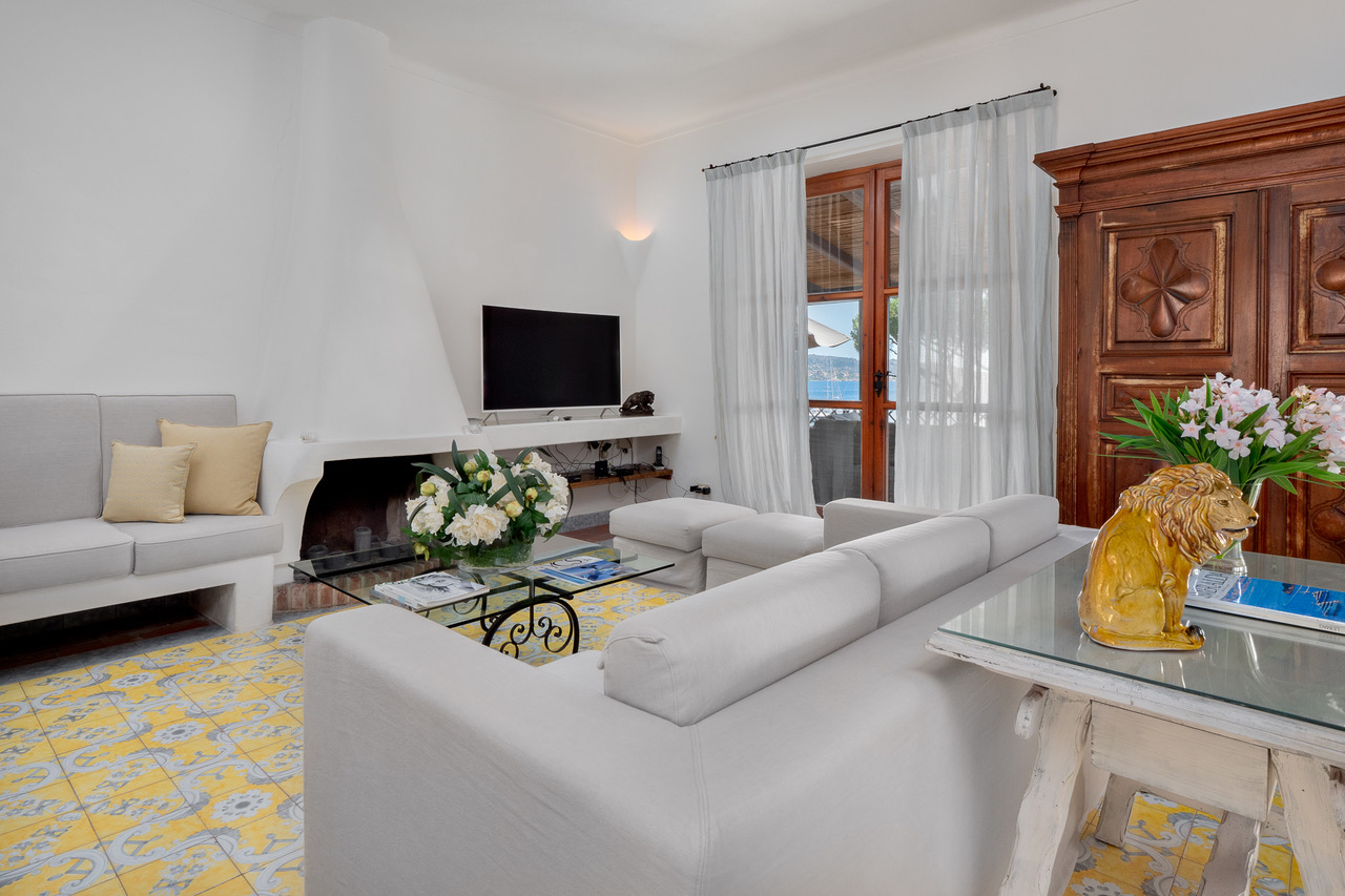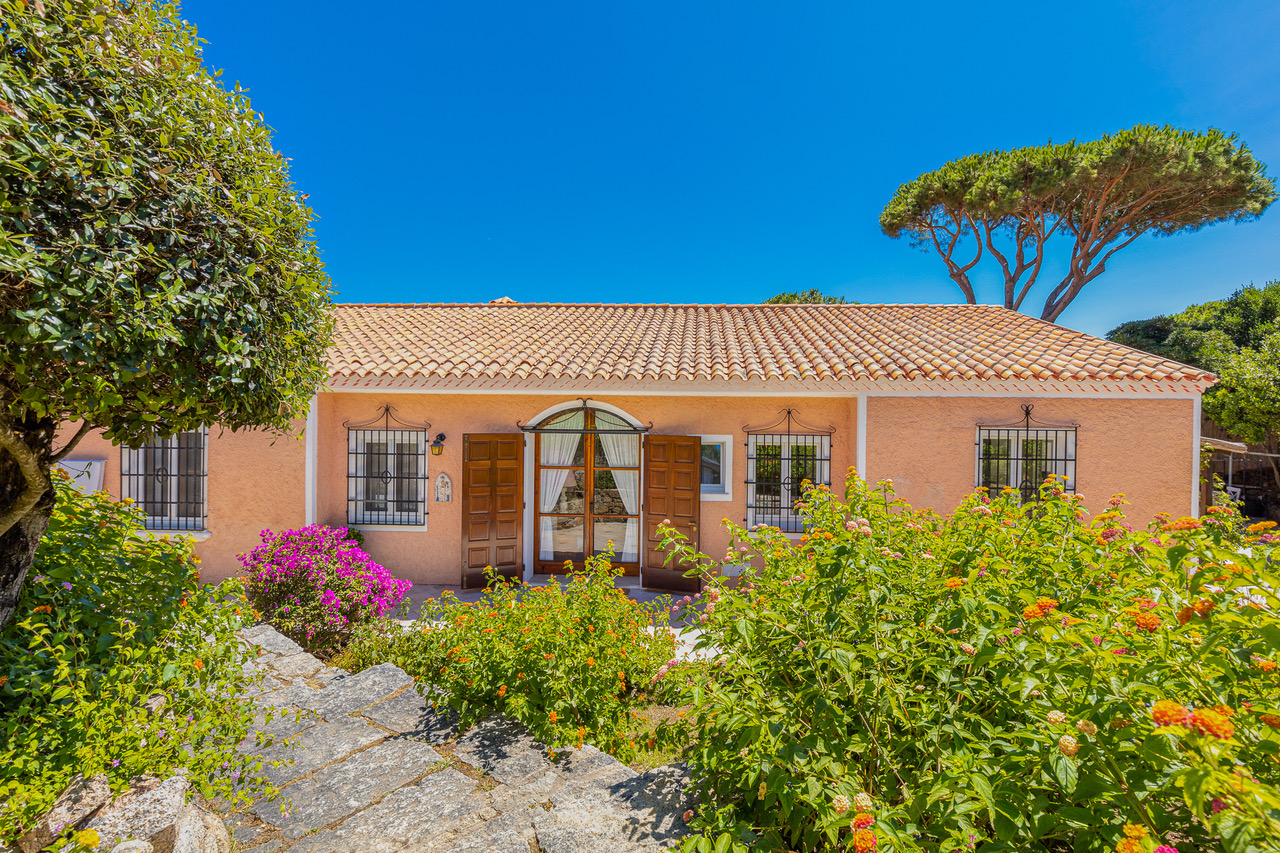 This ocher-coloured villa is THE best holiday house possible. Set on the rocks and facing the sea, it offers an exceptional setting to spend unforgettable holidays. The house is bordered by turquoise water which contrasts with the surrounding vegetation and flowers.