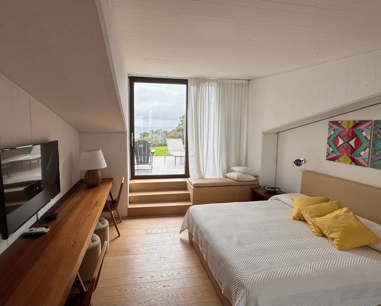 Double bedroom Junior Suite 50 m2 with living room area, sea view and Ensuite bathroom and Terrace with sea view