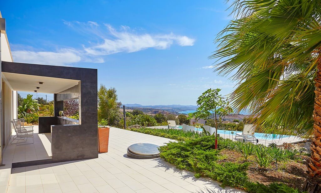 Located on a hill, this beautiful villa overlooks the sea offering magnificent views on the Mediterranean, which you can admire from the pool or even from some parts of the villa with its large windows. The house is surrounded by a rocky landscape with shrubs and cacti.The garden of the villa, meanwhile, is dotted with a Mediterranean vegetation between magnolia, rosemary and lavender diffusing in the air, the sweet scent of holidays.