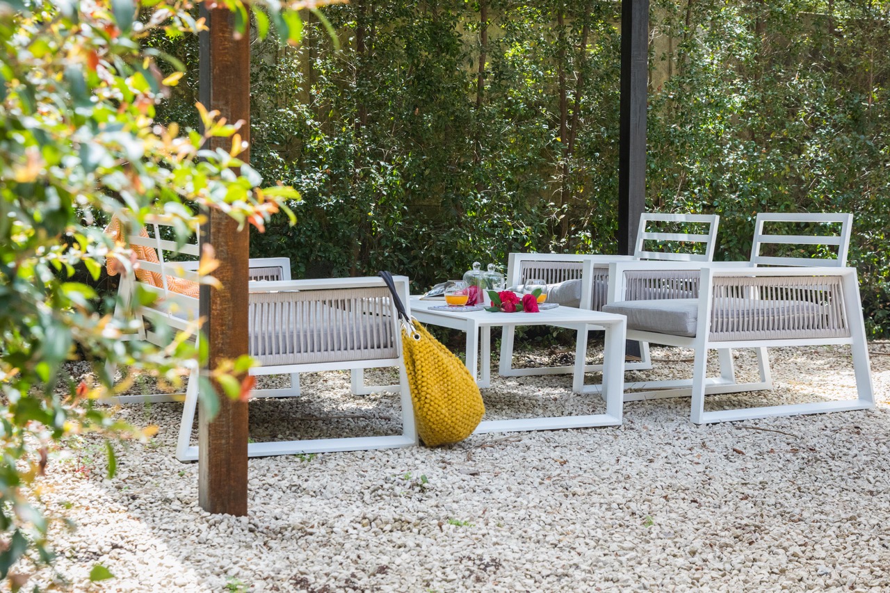 Equipped Terrace with outdoor shower, deckchairs, sun umbrella, living room area