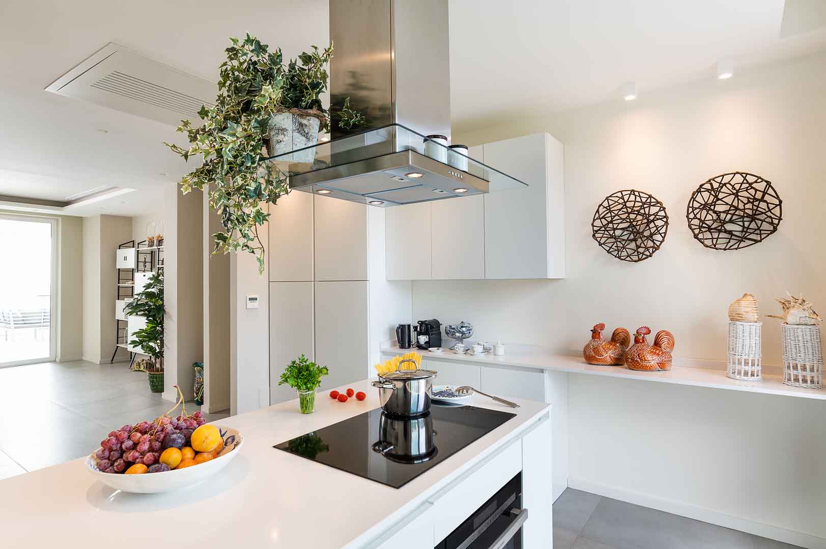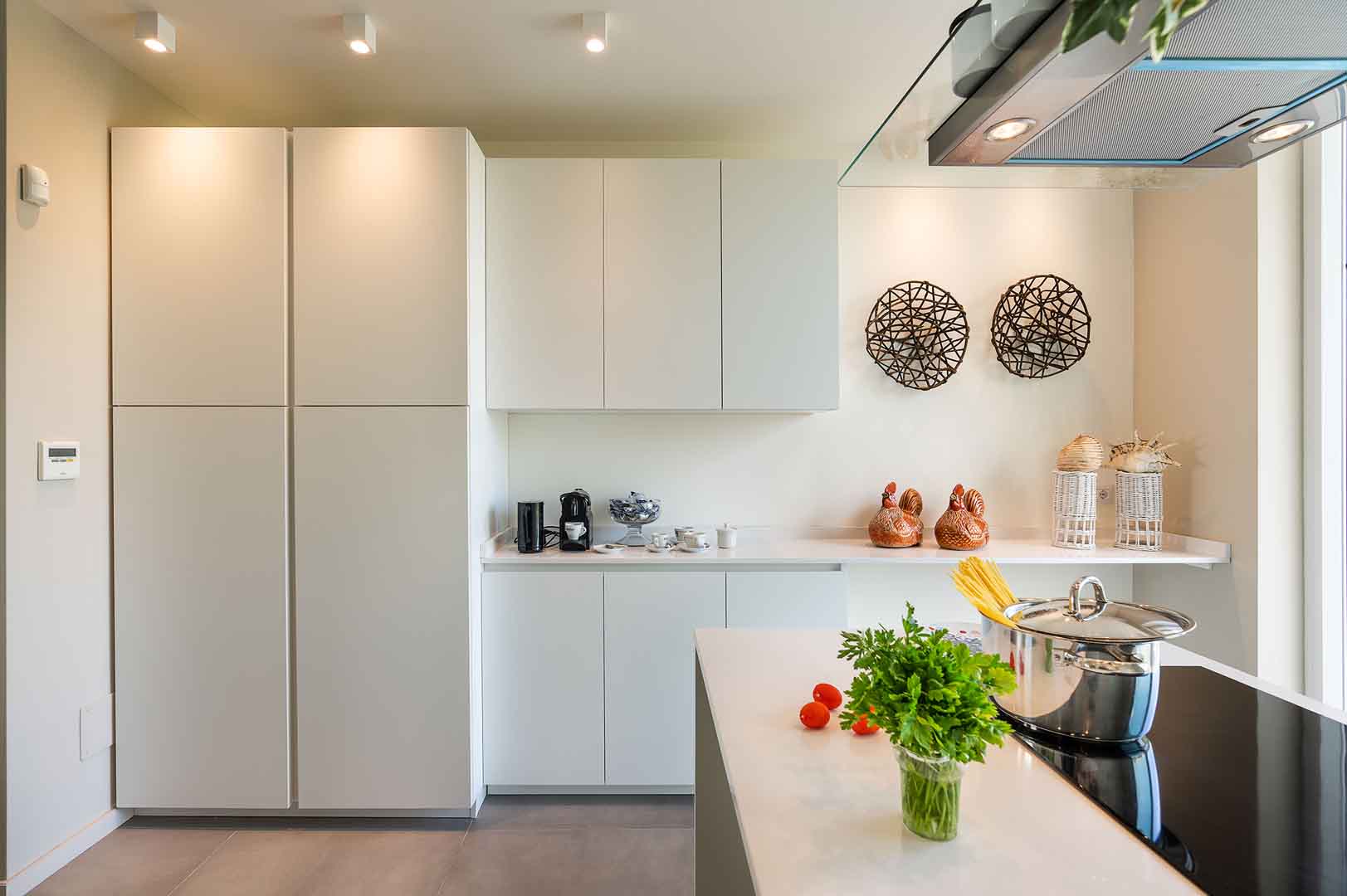 Kitchen with electric oven, fridge, toaster, dishwasher, kettle, coffee machine, nespresso machine, induction hob, microwave oven
